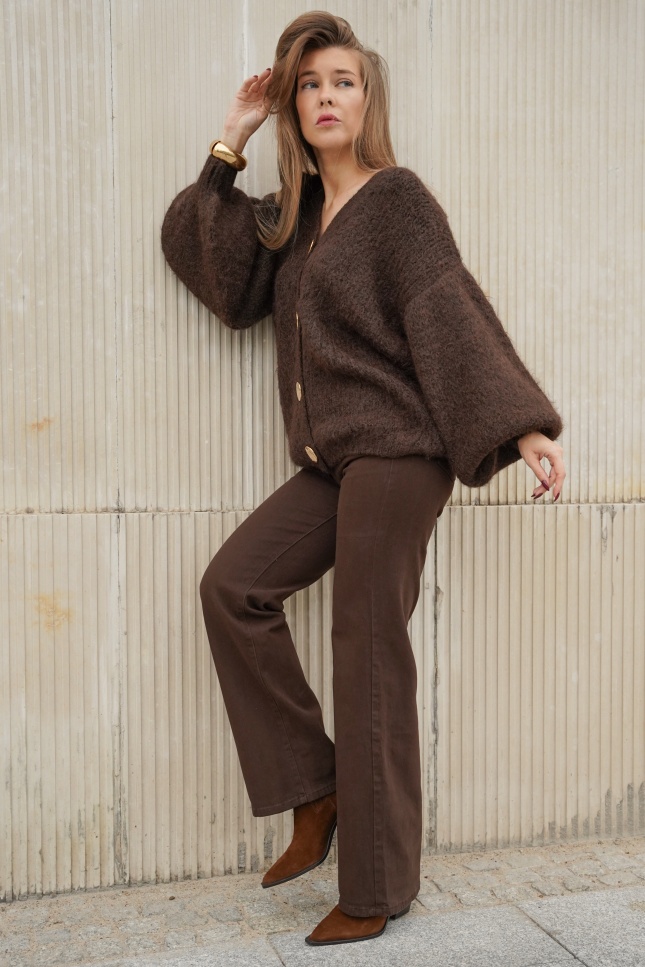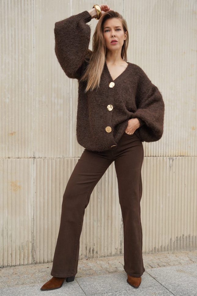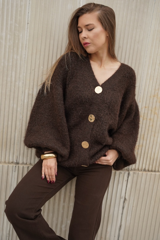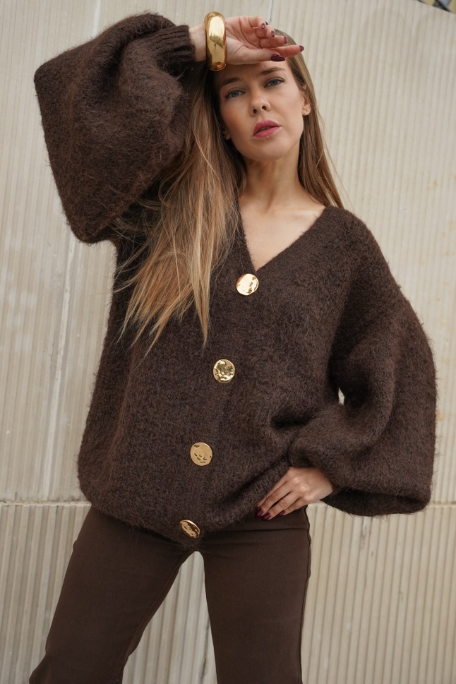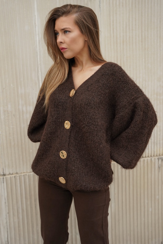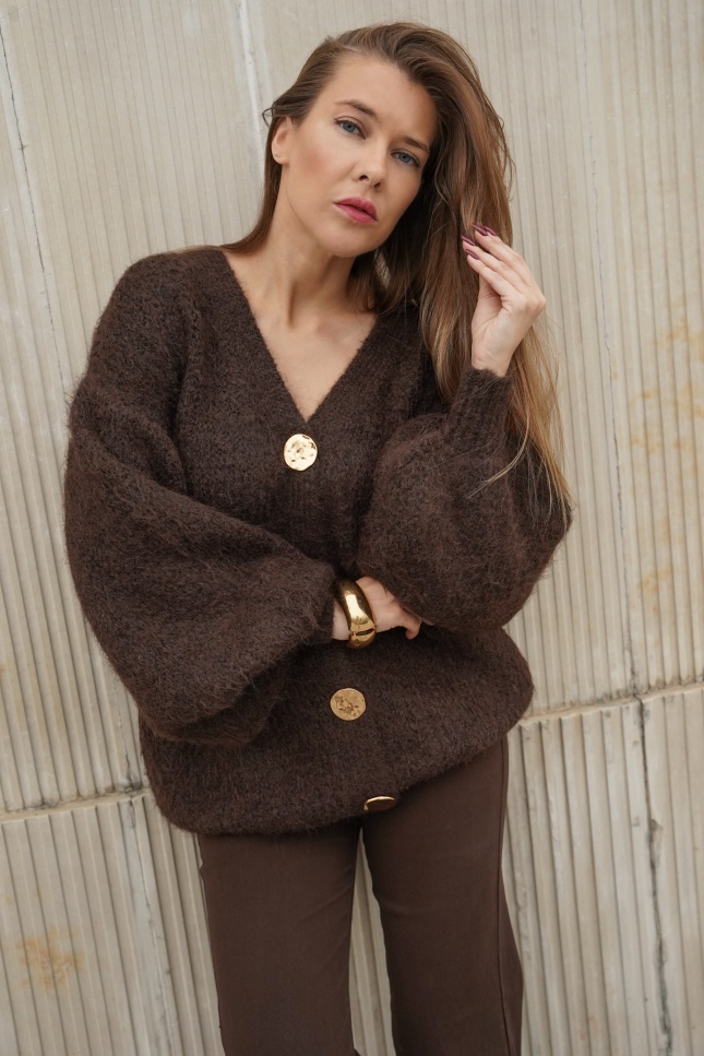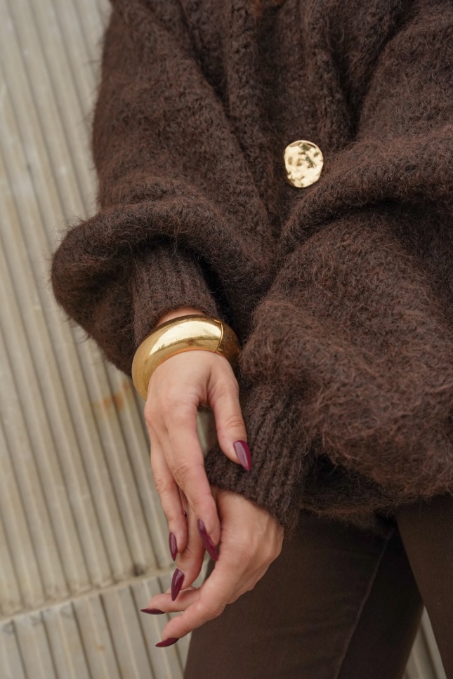 Uszyty z luksusowej mieszanki super kid moheru i baby alpaki, dziany w splot boucle, otula lekkością i strukturą premium. Luźny fason i krótsza forma nadają mu współczesnego charakteru, a złote, artystyczne guziki pełnią rolę biżuteryjnego detalu. Idealny zarówno do jeansów i T-shirtu, jak i satynowej sukienki – „Étoile” to must-have sezonu AW 2025/26.