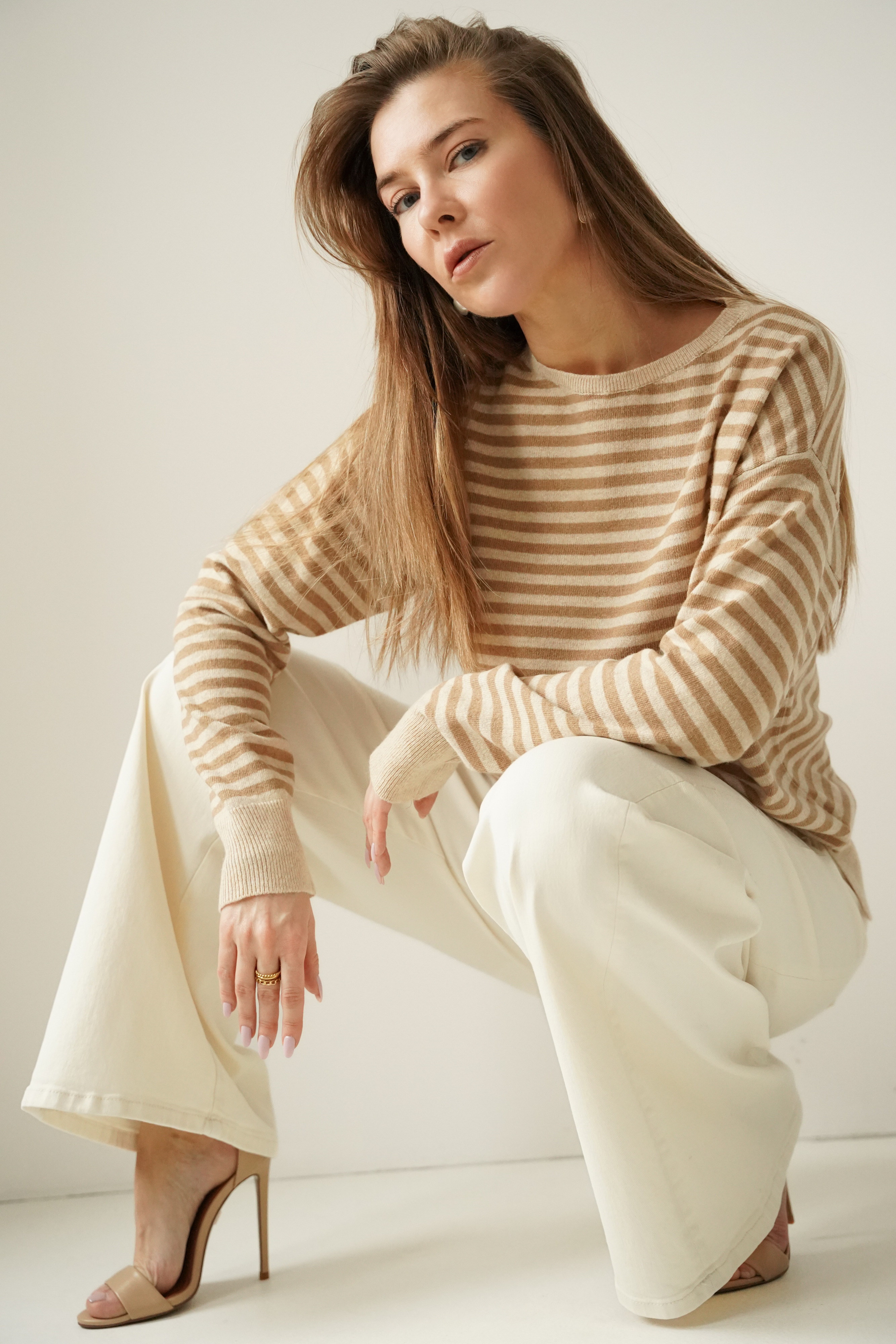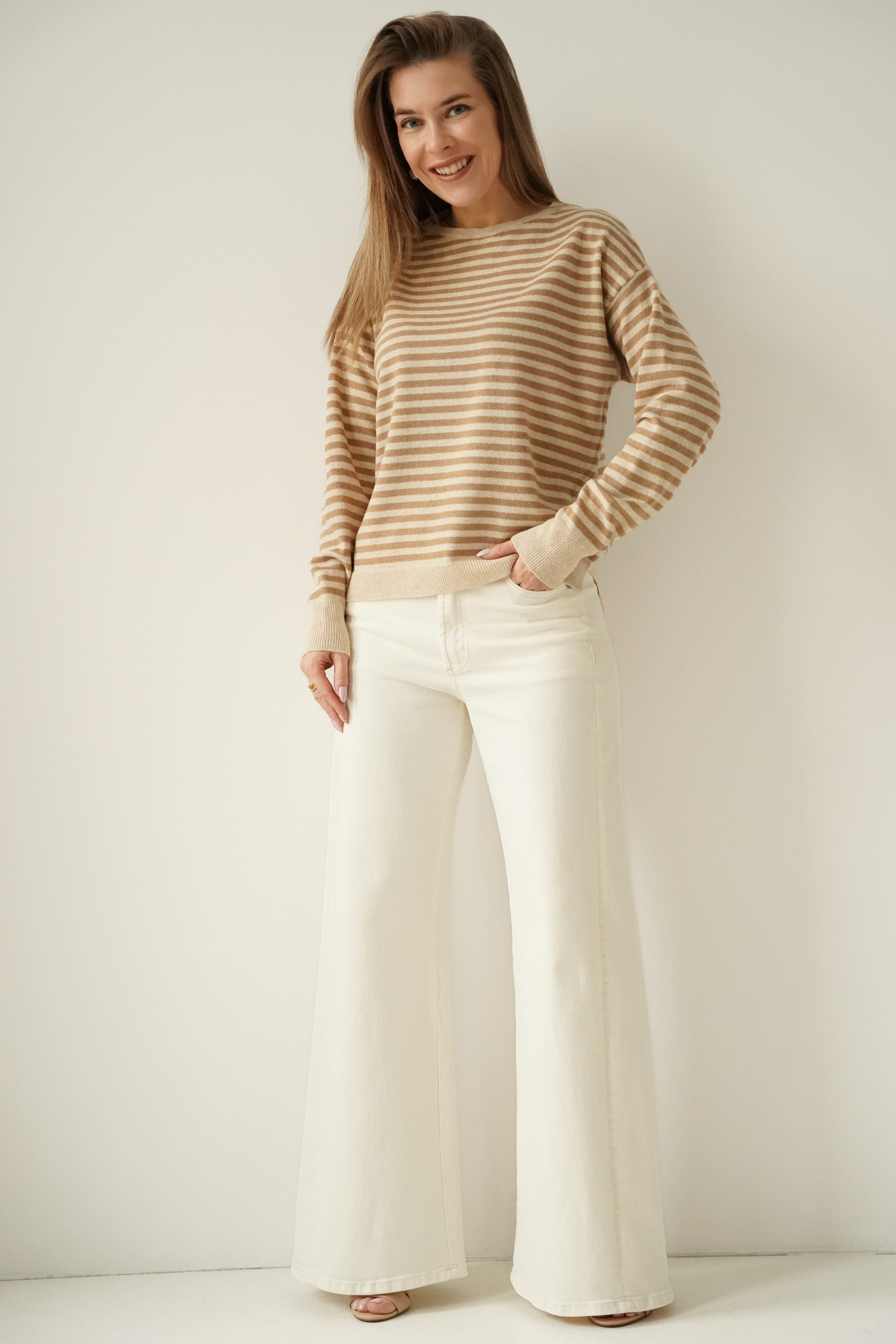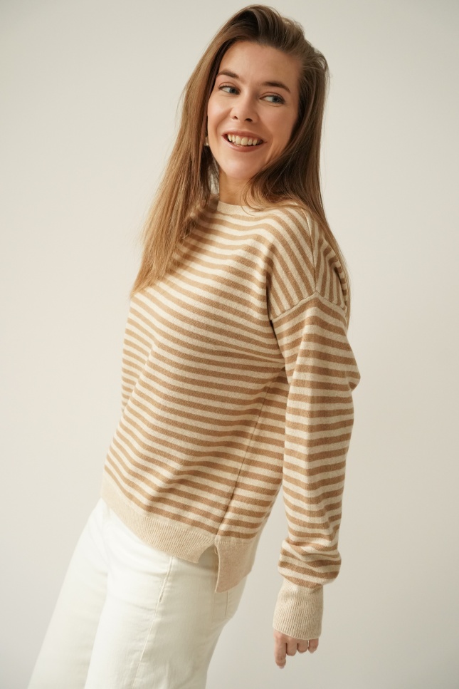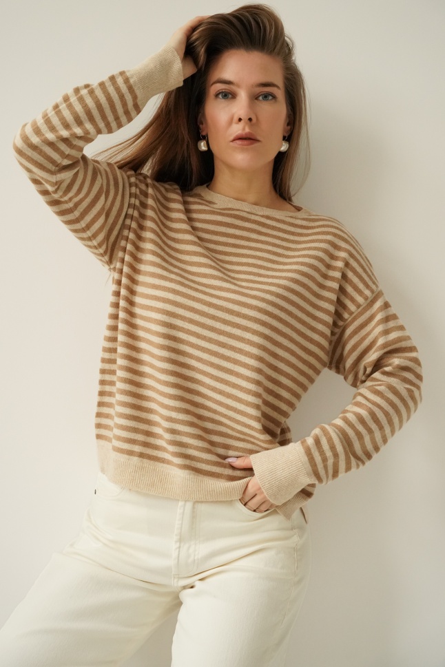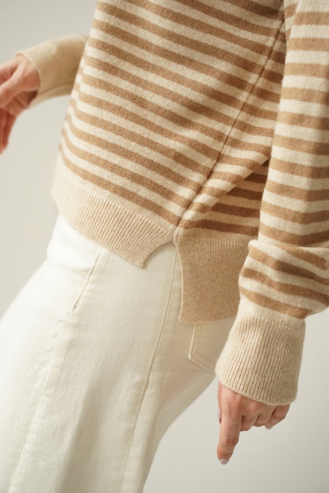 Kaszmirowy sweterek w drobne paski Maelle cappuccino