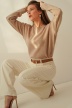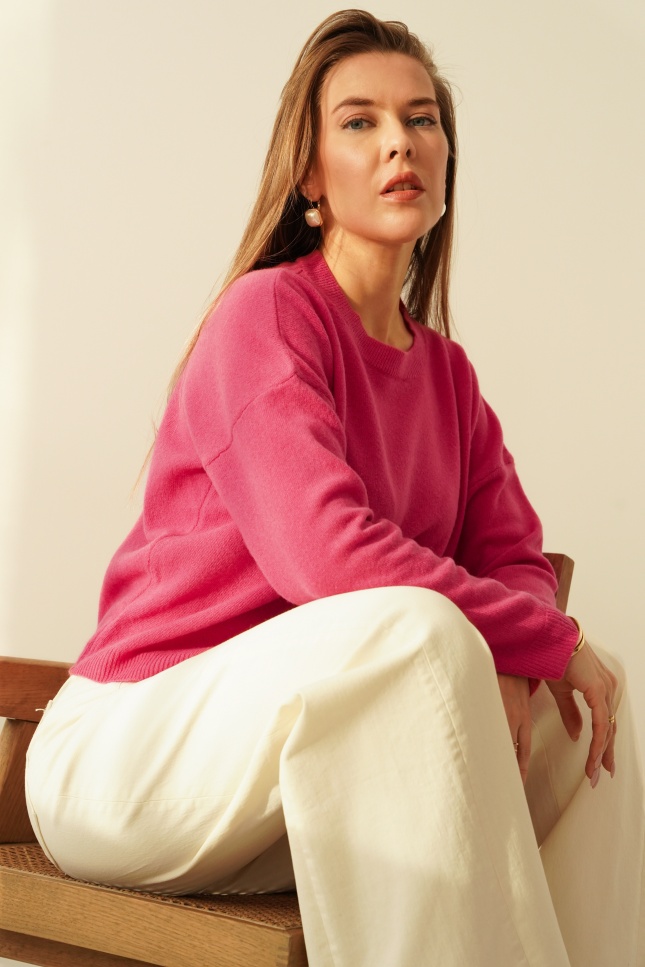 SOIE to klasyczny sweter o luźniejszym fasonie, wykonany z 100% wełny merino extra fine. Lekki, miękki i oddychający – idealny na sezon wiosna–lato. Pastelowe kolory nadają mu kobiecego, subtelnego charakteru i czynią go ponadczasowym elementem codziennej garderoby.