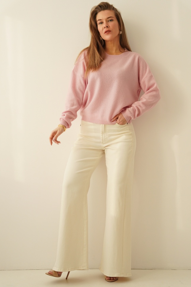 Klasyczny sweterek 100% wełna merino Soie pastelowy róż