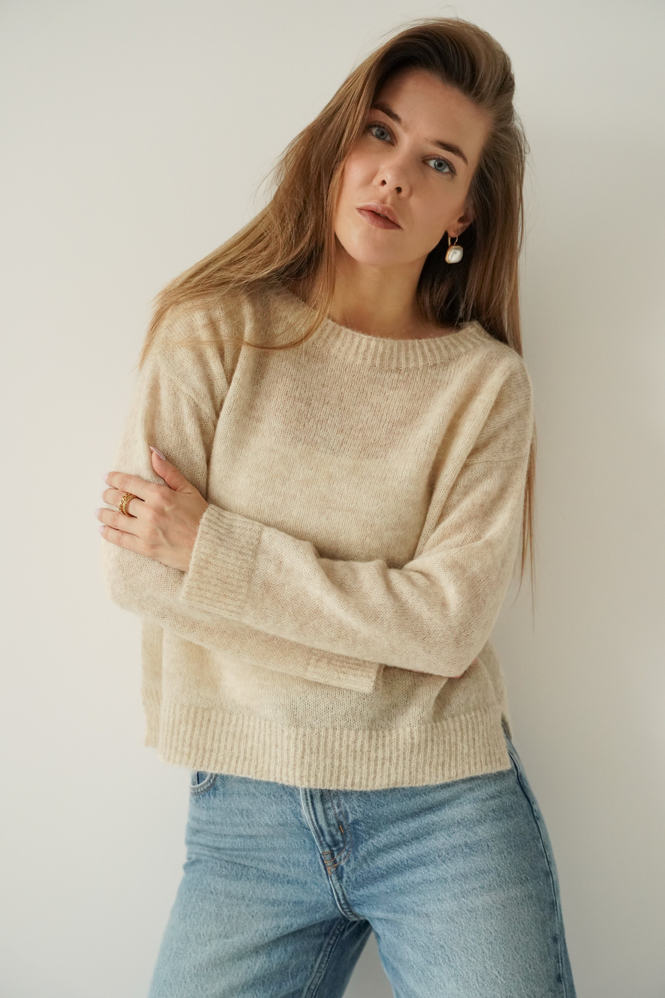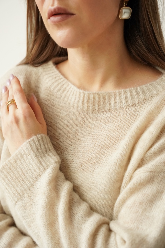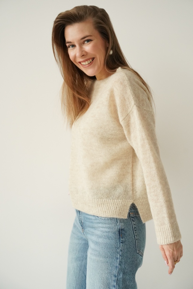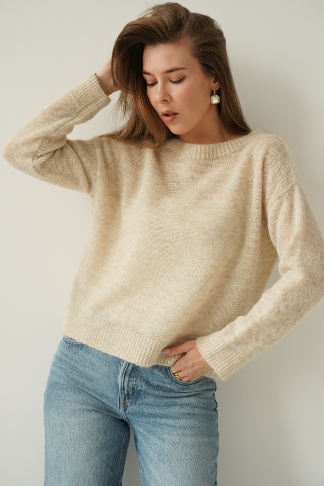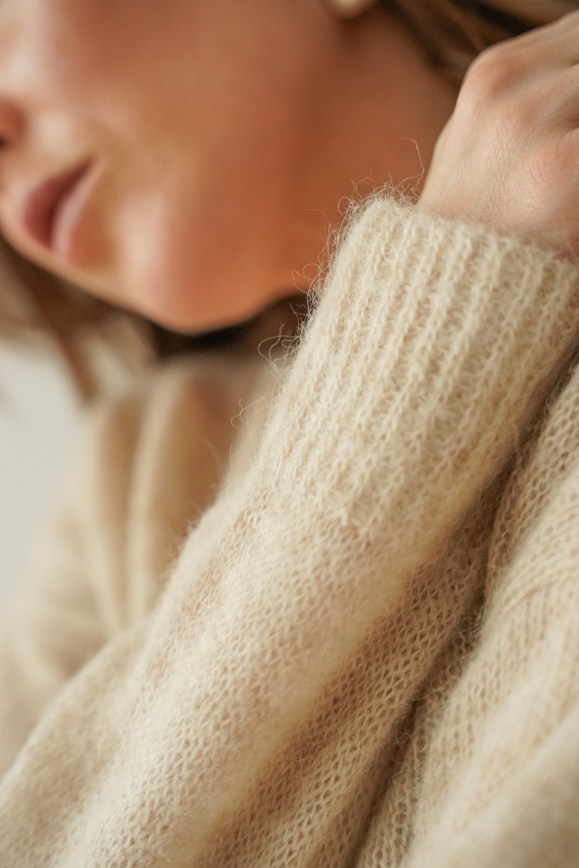 ELARA to elegancki, luźny sweter wykonany ze szlachetnej przędzy zawierającej 62% baby alpaki i 20% alpaki superfine. Lekki, puszysty i oddychający, idealny na sezon wiosna–lato. Pastelowe odcienie i ponadczasowy fason sprawiają, że doskonale wpisuje się w nowoczesną garderobę kapsułową.