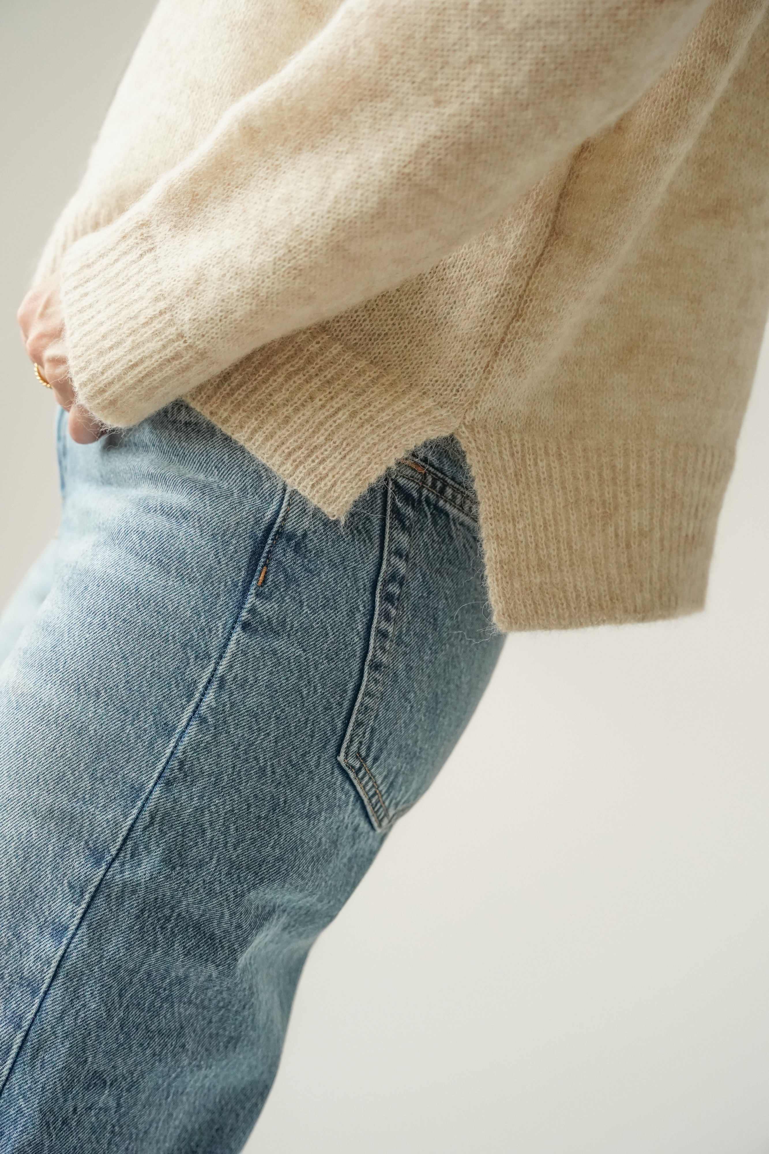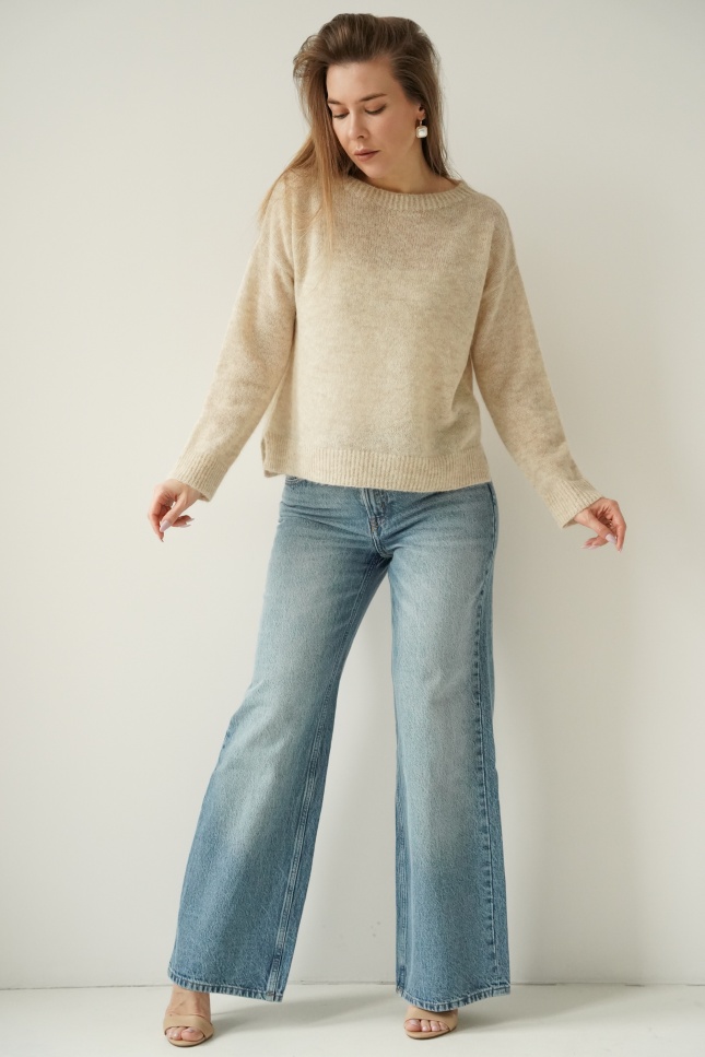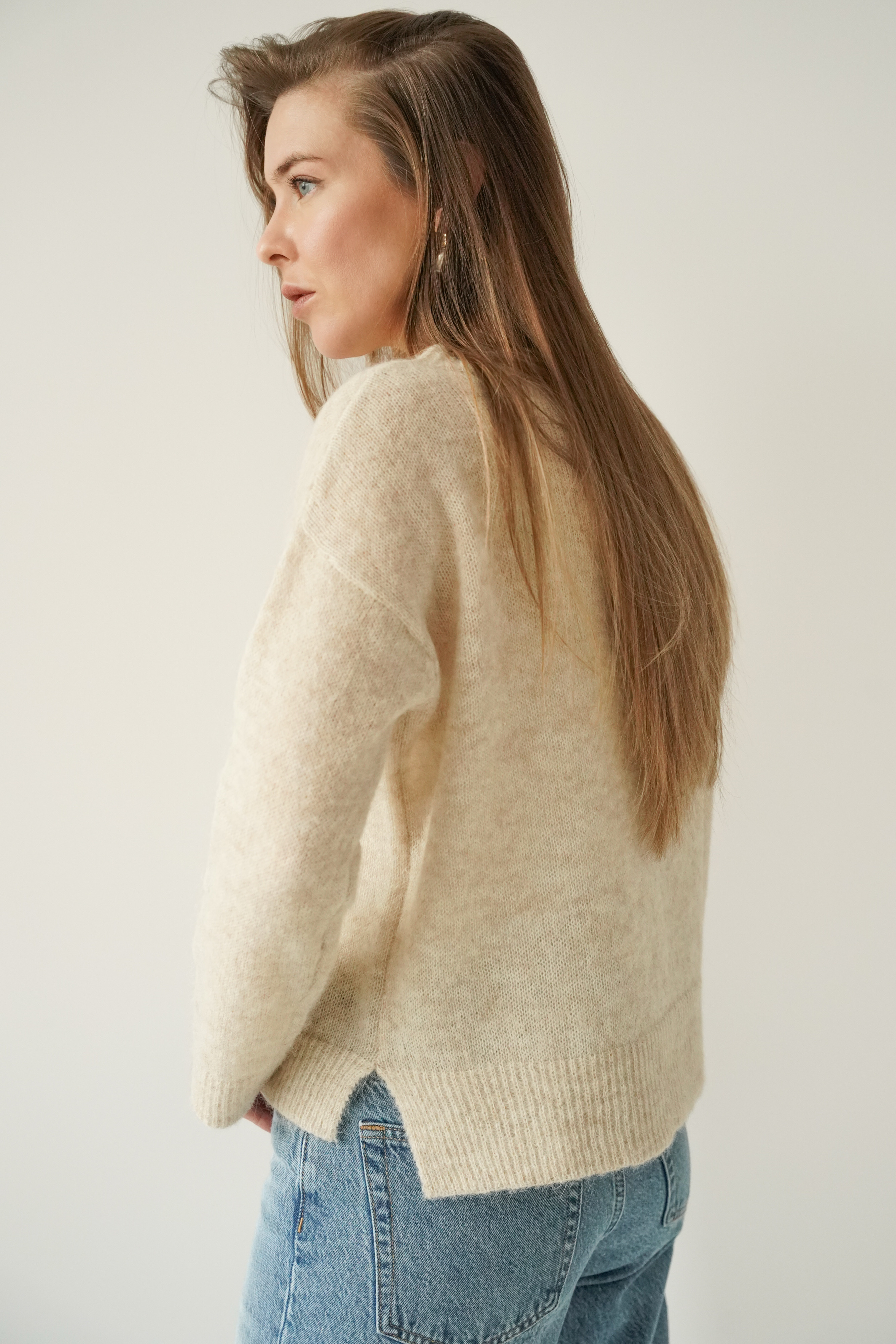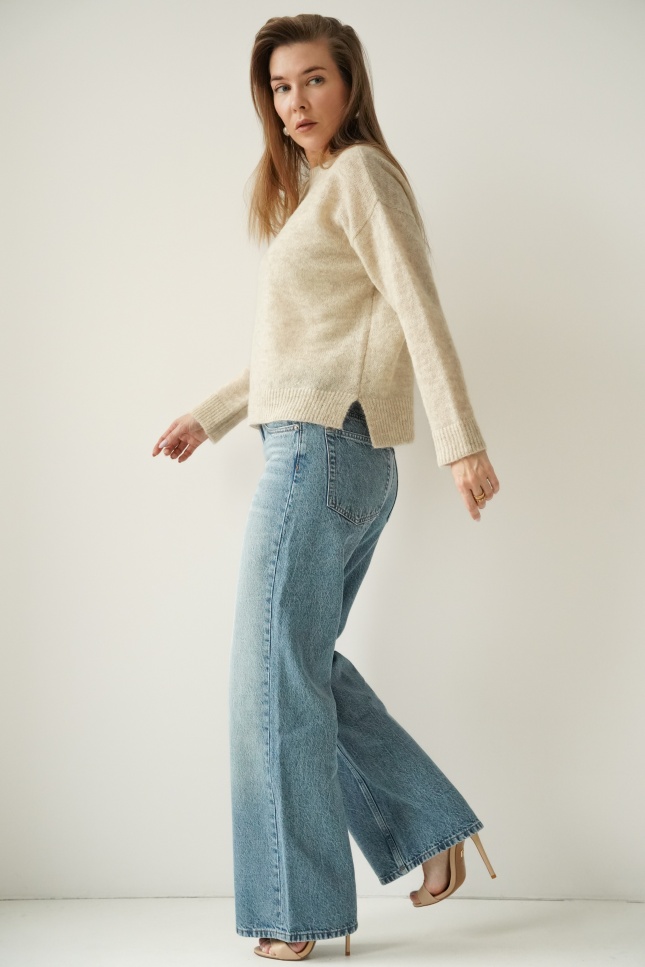 ELARA to elegancki, luźny sweter wykonany ze szlachetnej przędzy zawierającej 62% baby alpaki i 20% alpaki superfine. Lekki, puszysty i oddychający, idealny na sezon wiosna–lato. Pastelowe odcienie i ponadczasowy fason sprawiają, że doskonale wpisuje się w nowoczesną garderobę kapsułową.