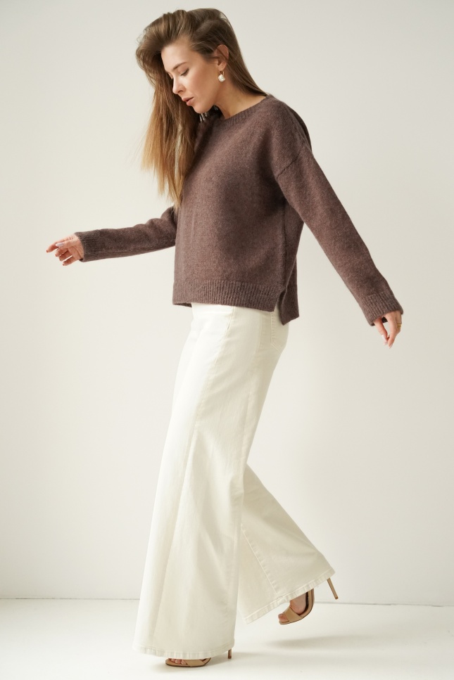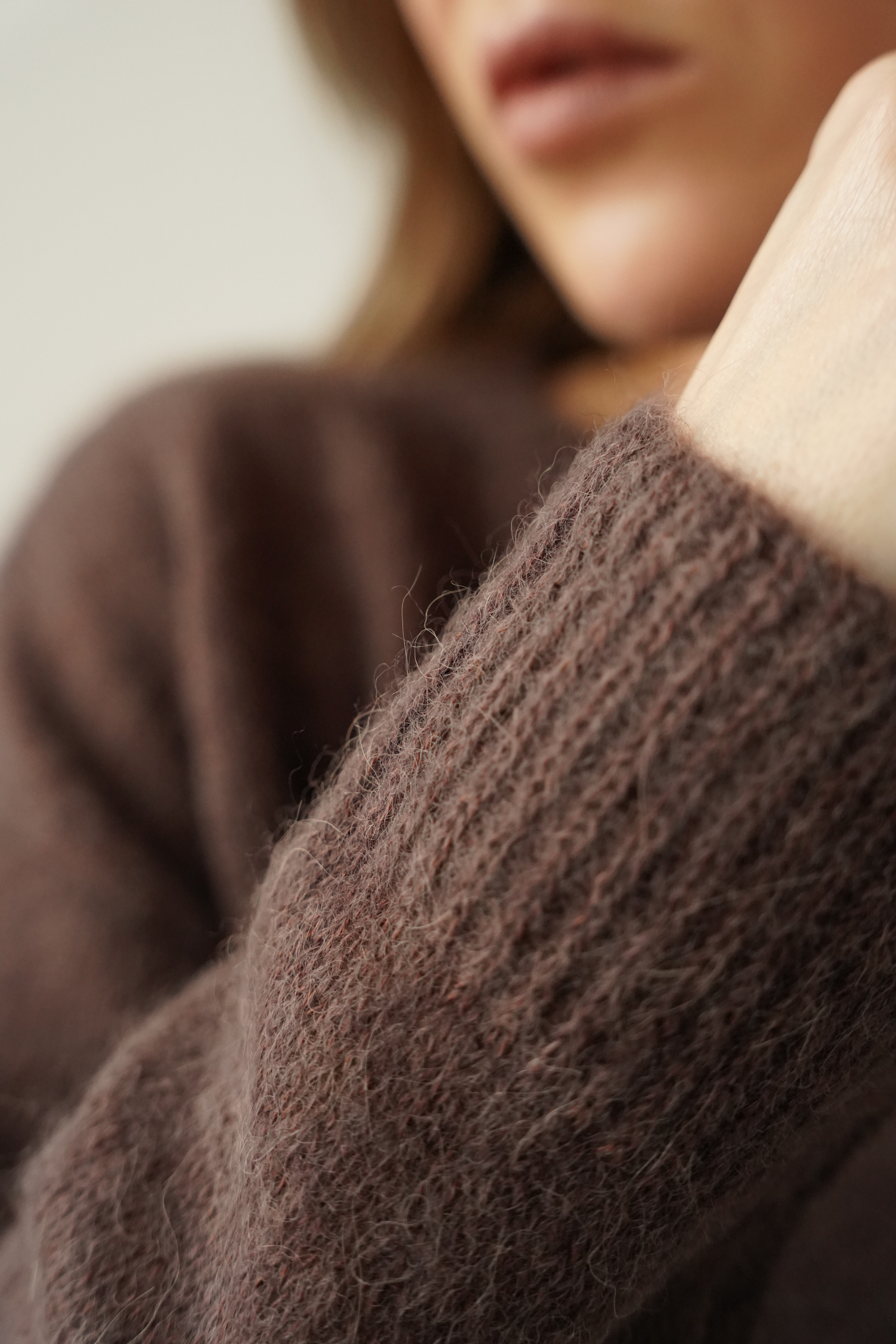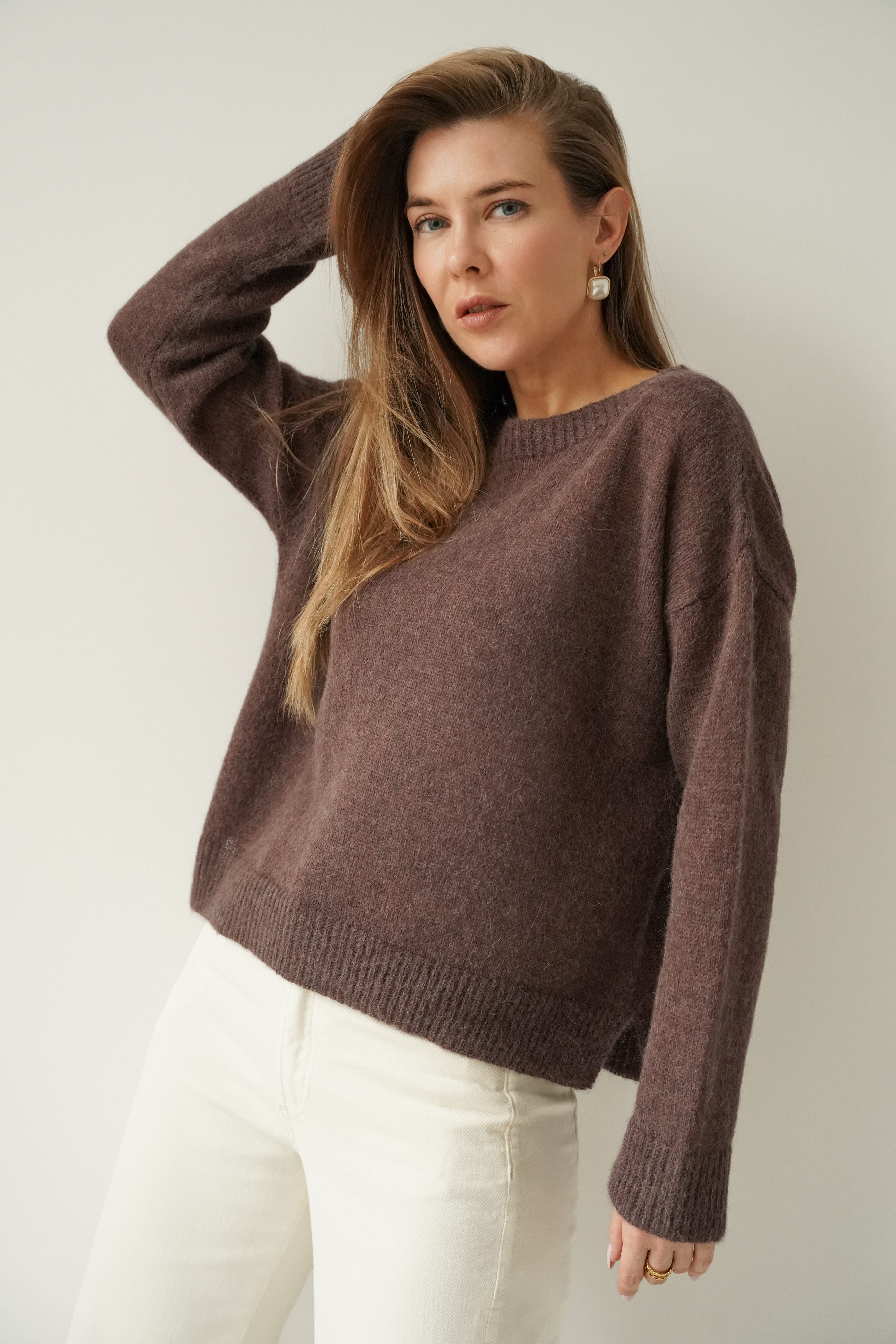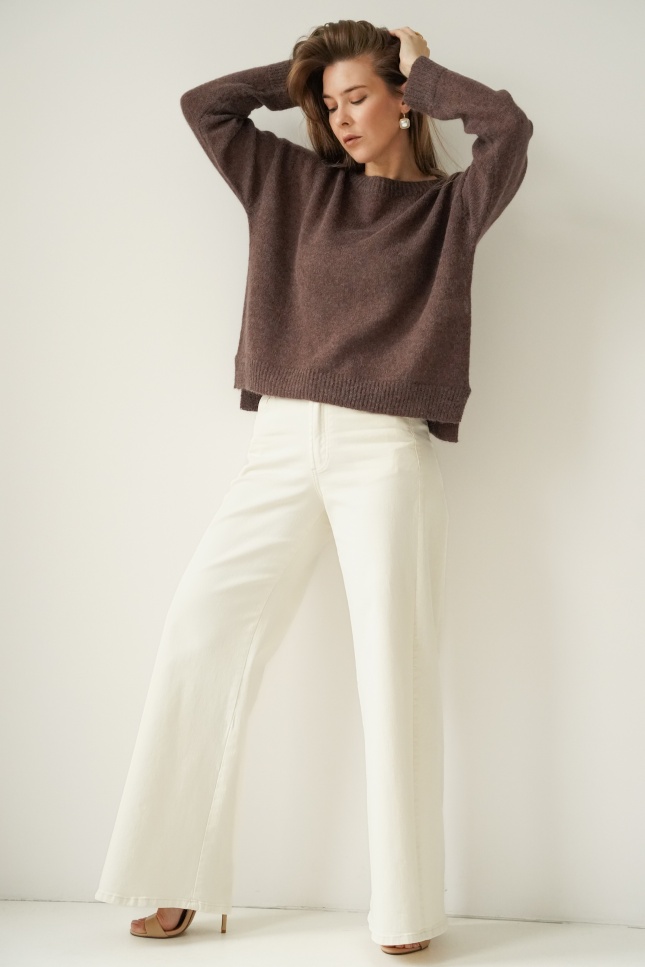 ELARA to elegancki, luźny sweter wykonany ze szlachetnej przędzy zawierającej 62% baby alpaki i 20% alpaki superfine. Lekki, puszysty i oddychający, idealny na sezon wiosna–lato. Pastelowe odcienie i ponadczasowy fason sprawiają, że doskonale wpisuje się w nowoczesną garderobę kapsułową.