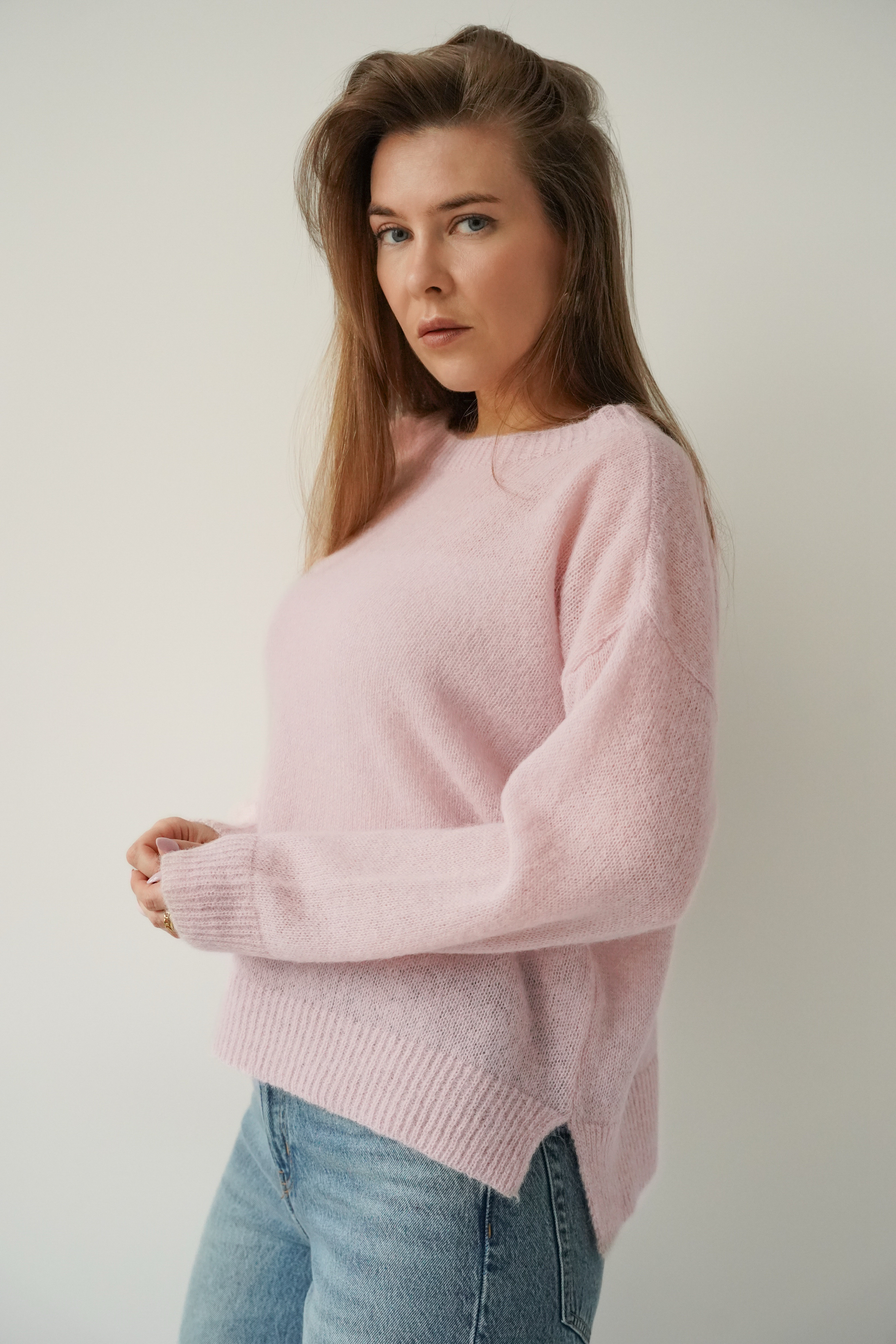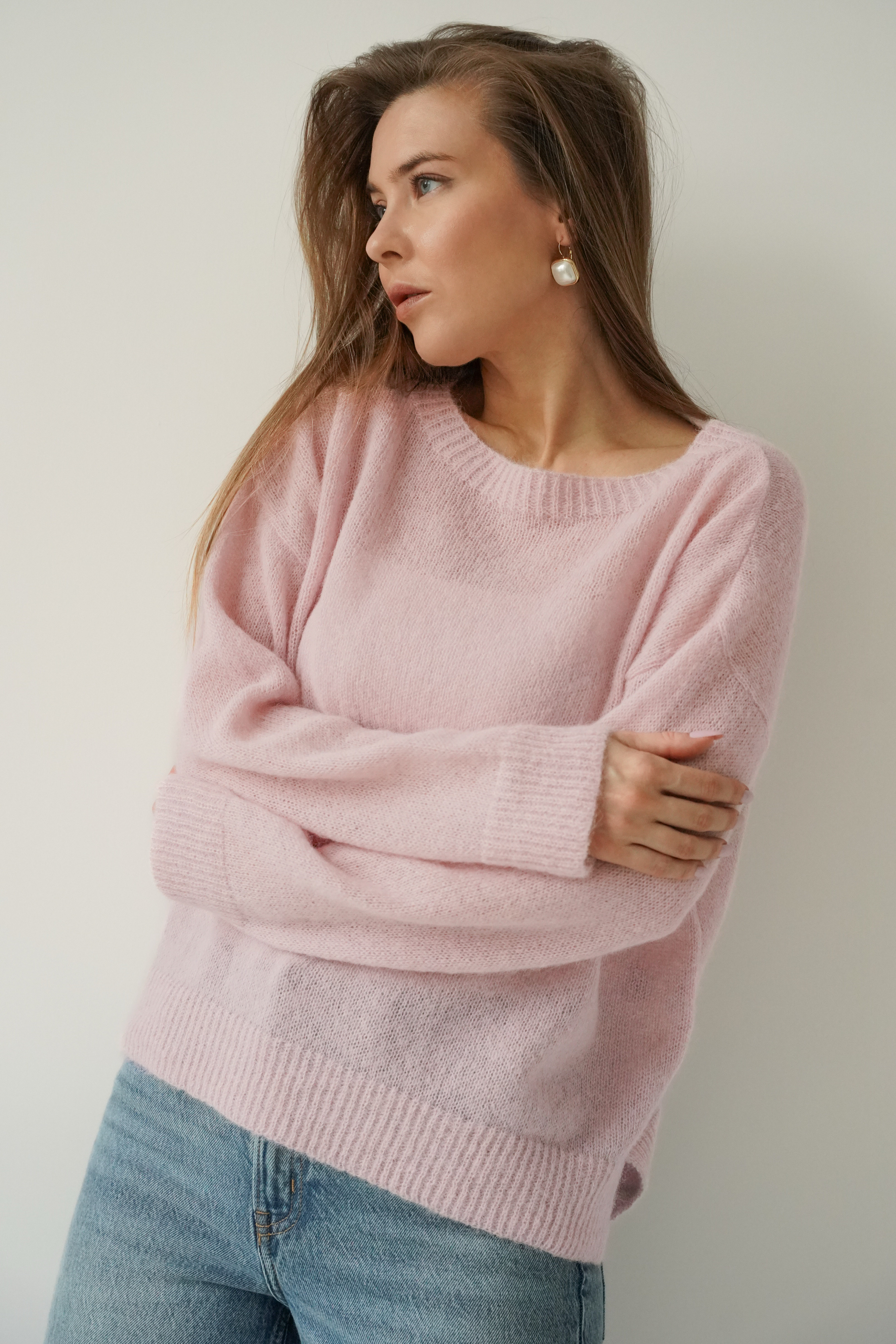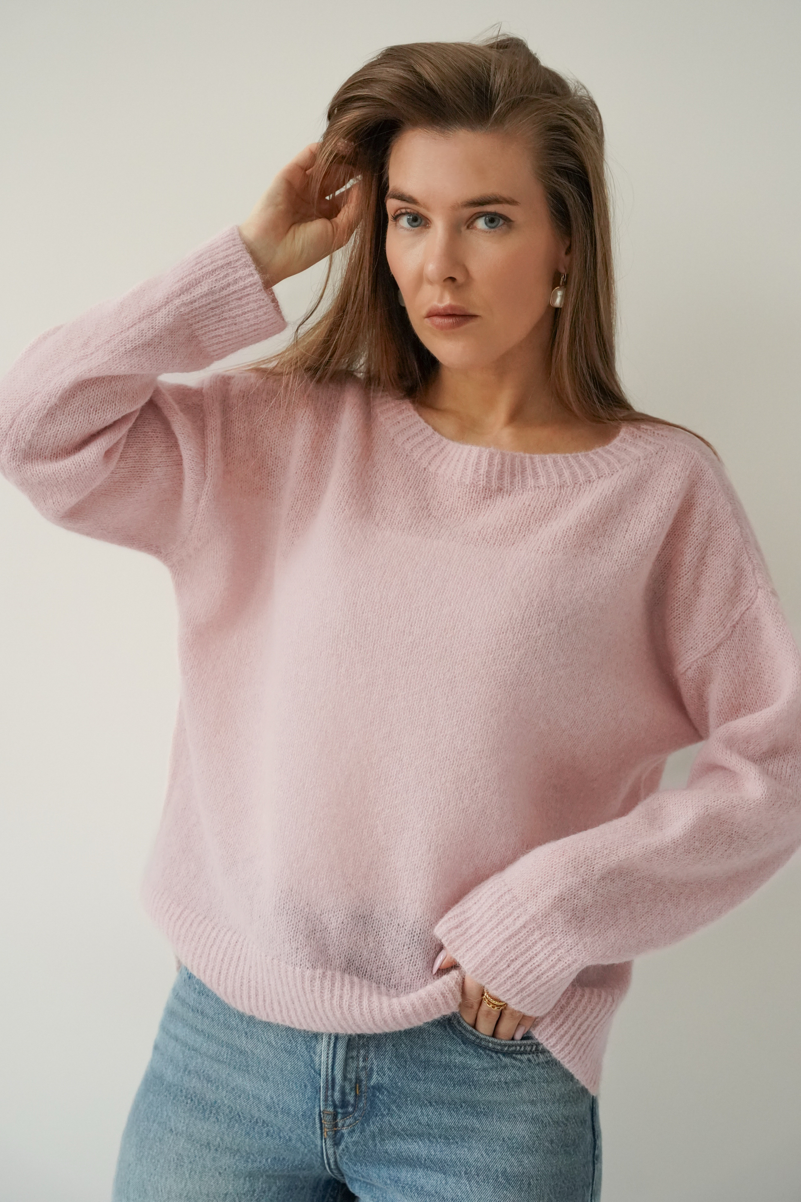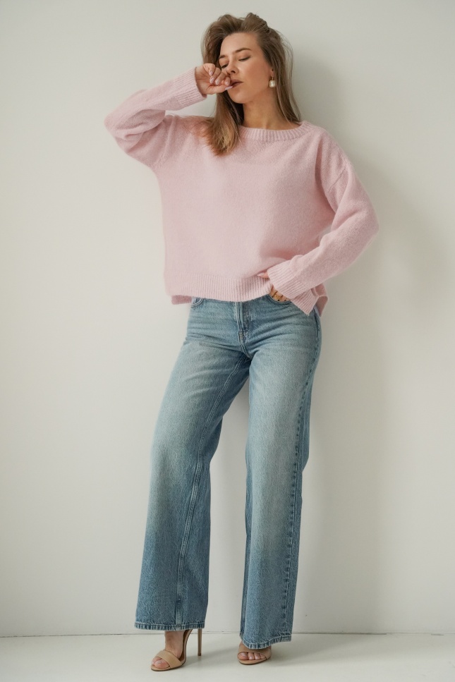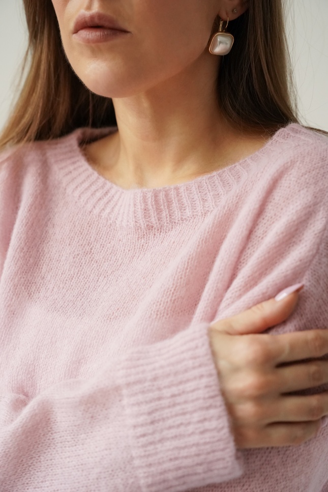 Delikatny sweterek z baby alpaką Elara pudrowy róż