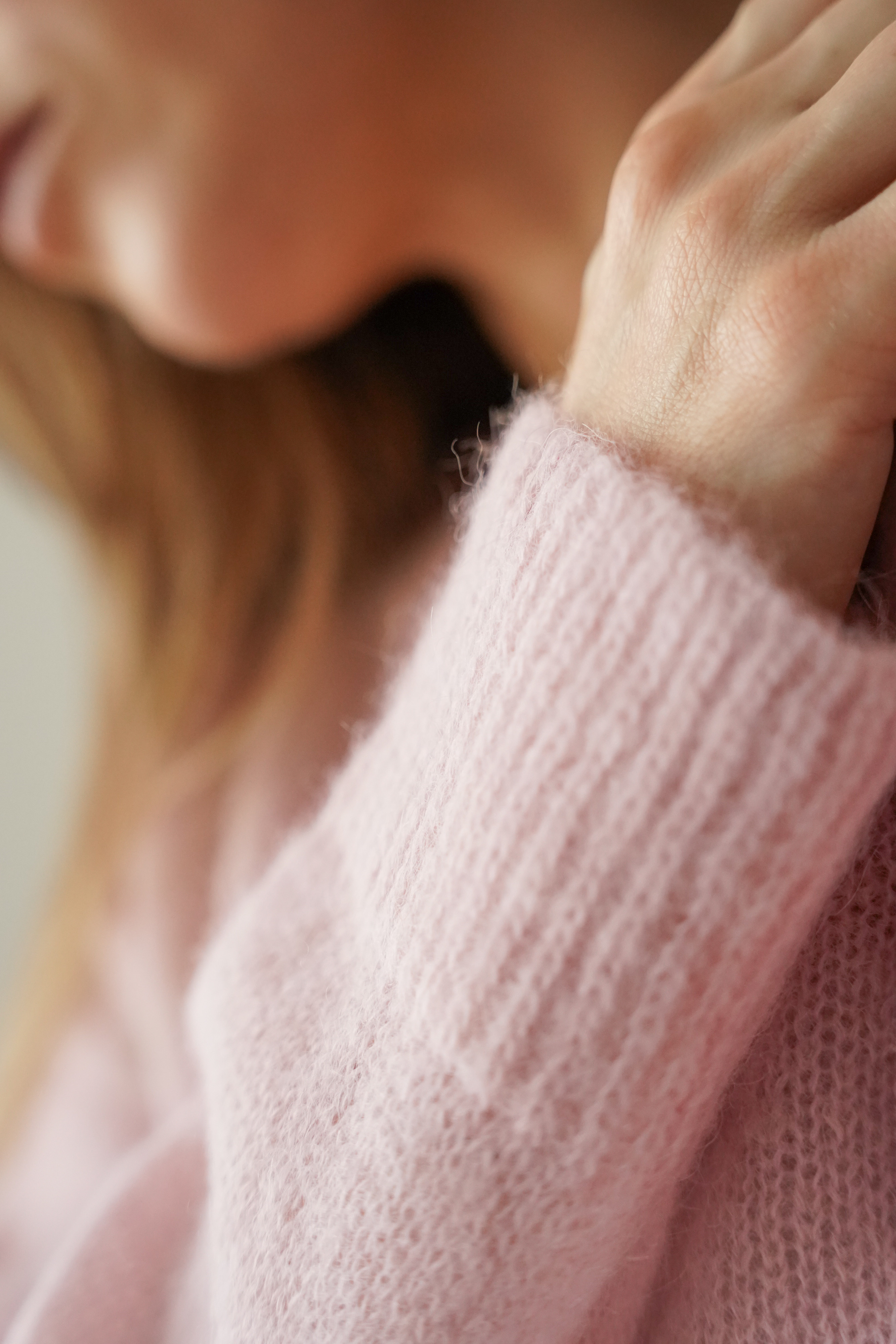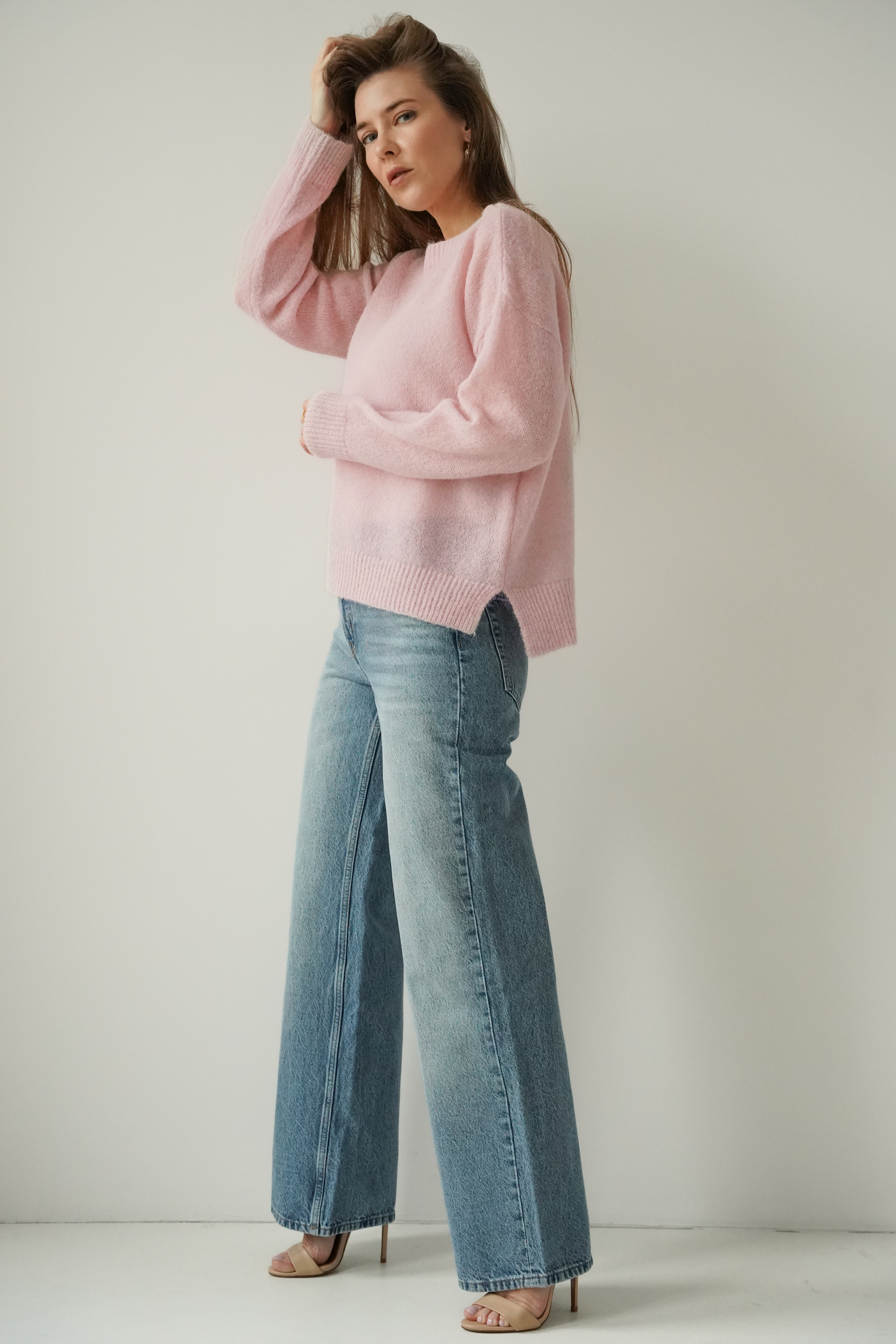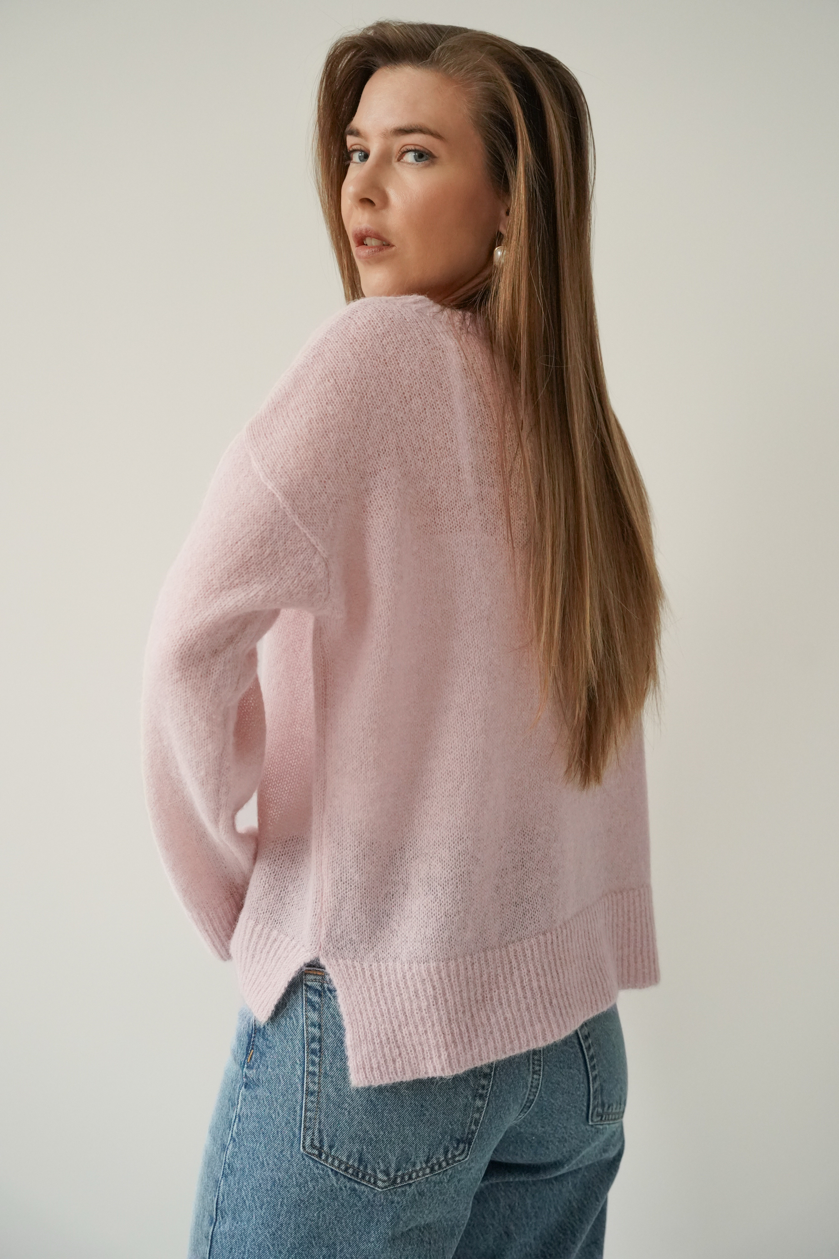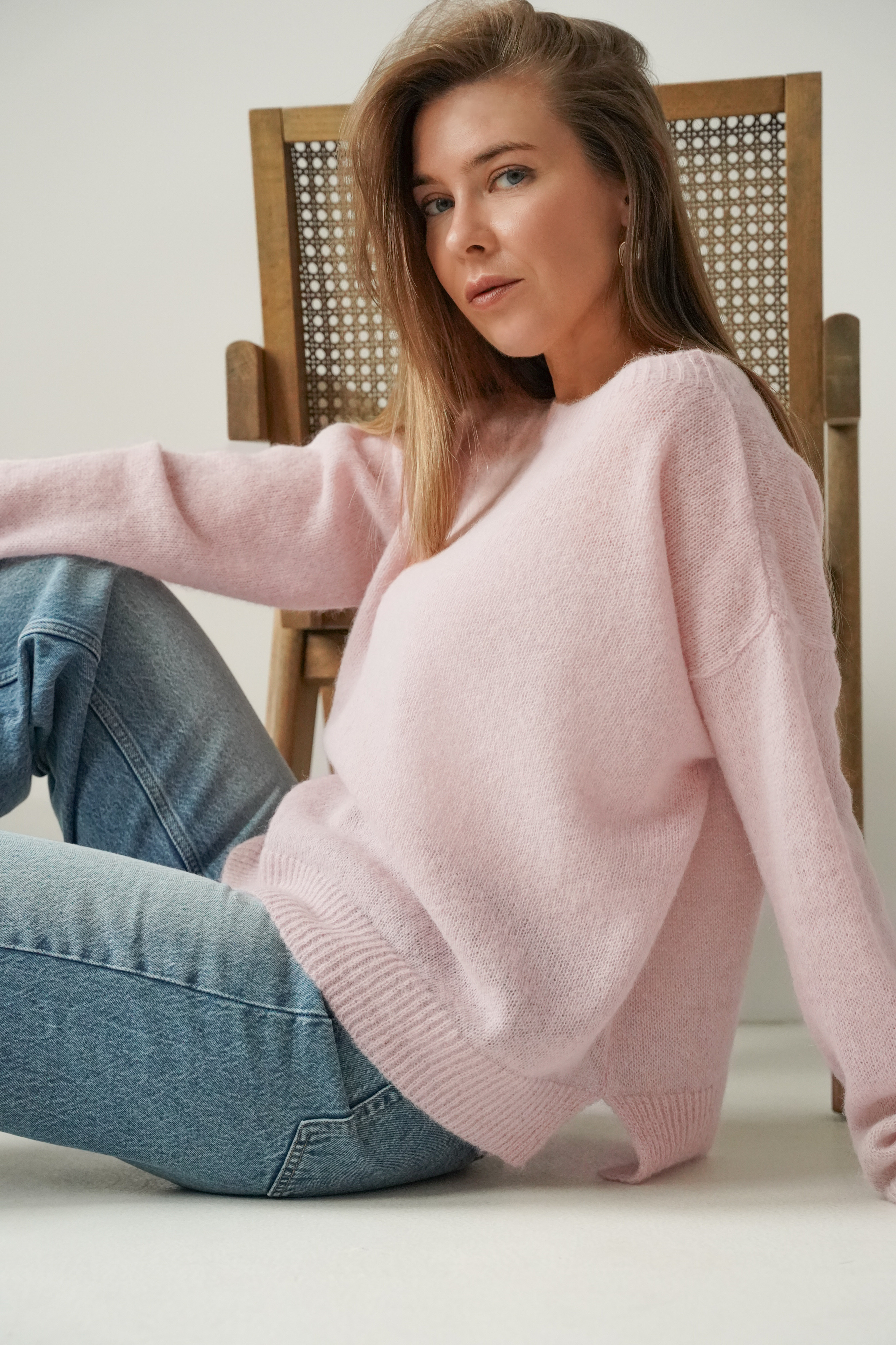 Delikatny sweterek z baby alpaką Elara pudrowy róż