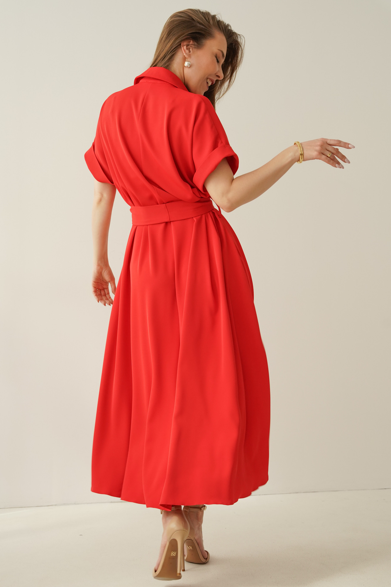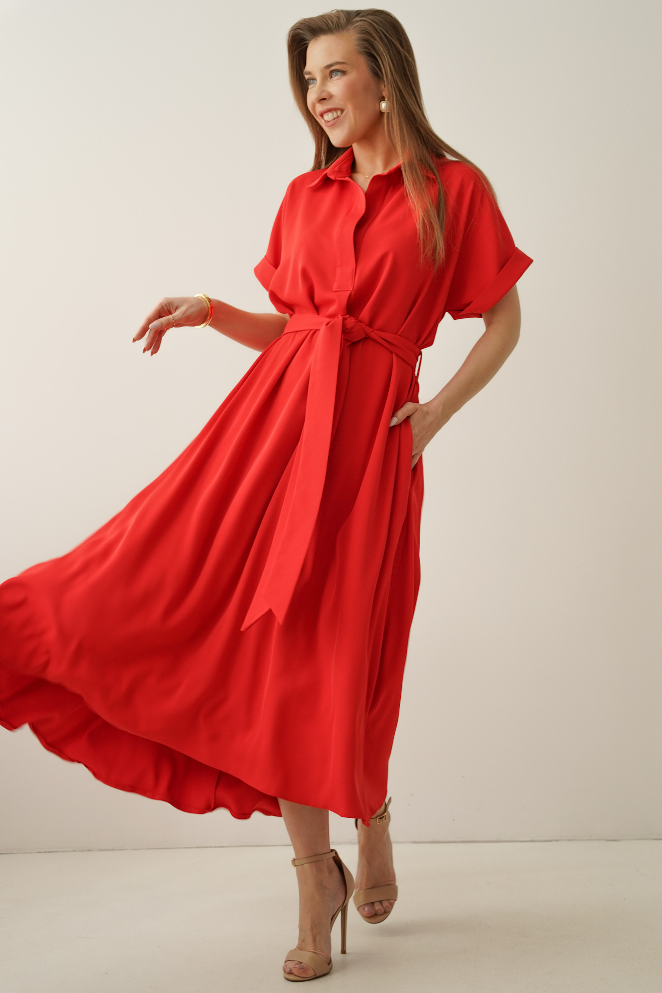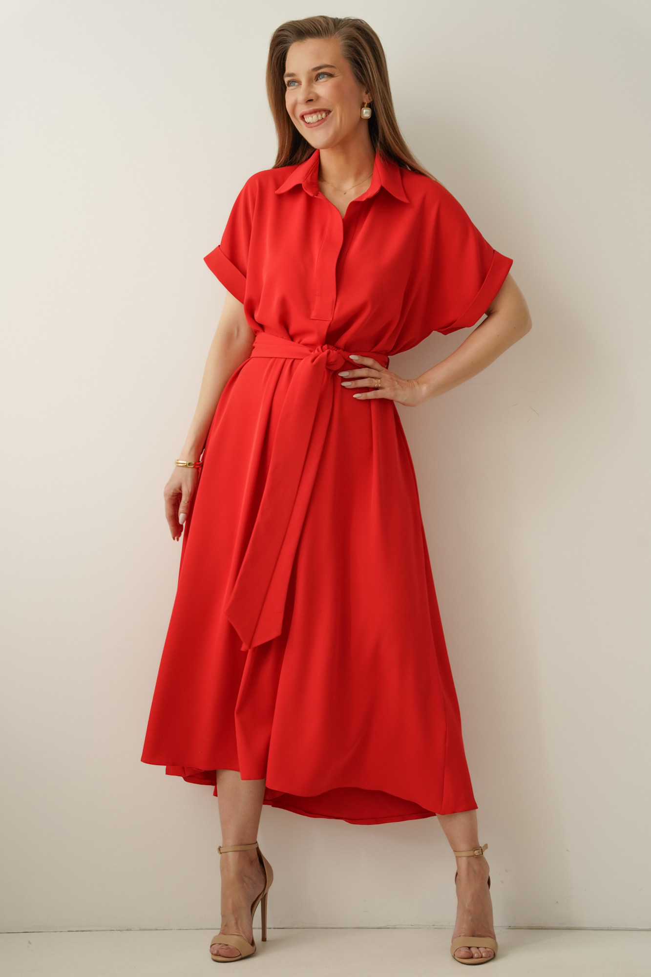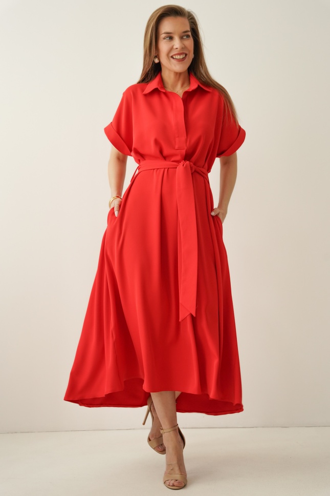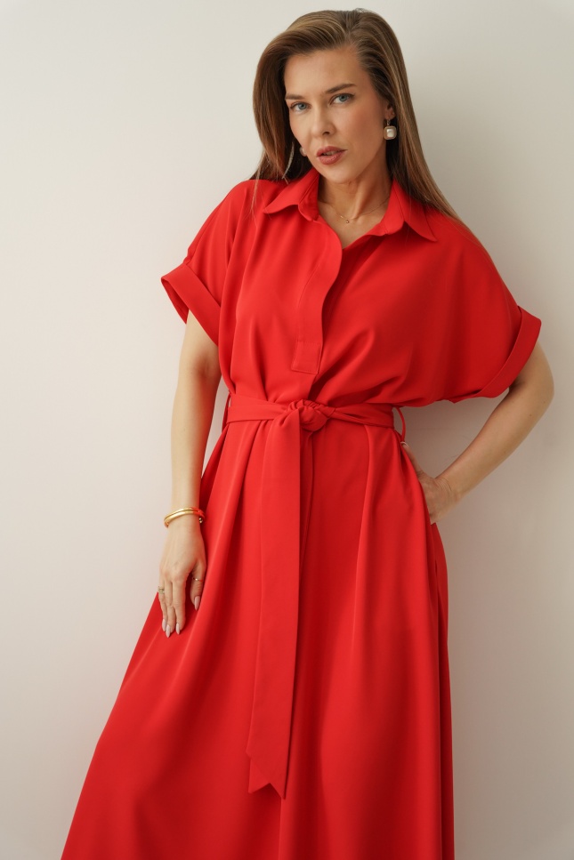 Luźna sukienka smart casual z kołnierzykiem Elan czerwona