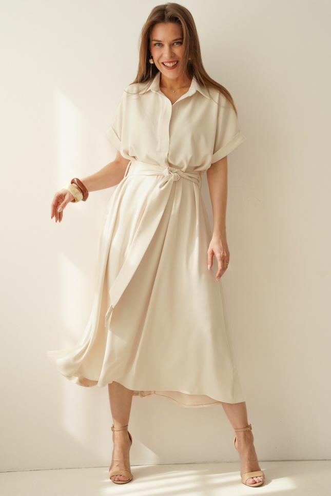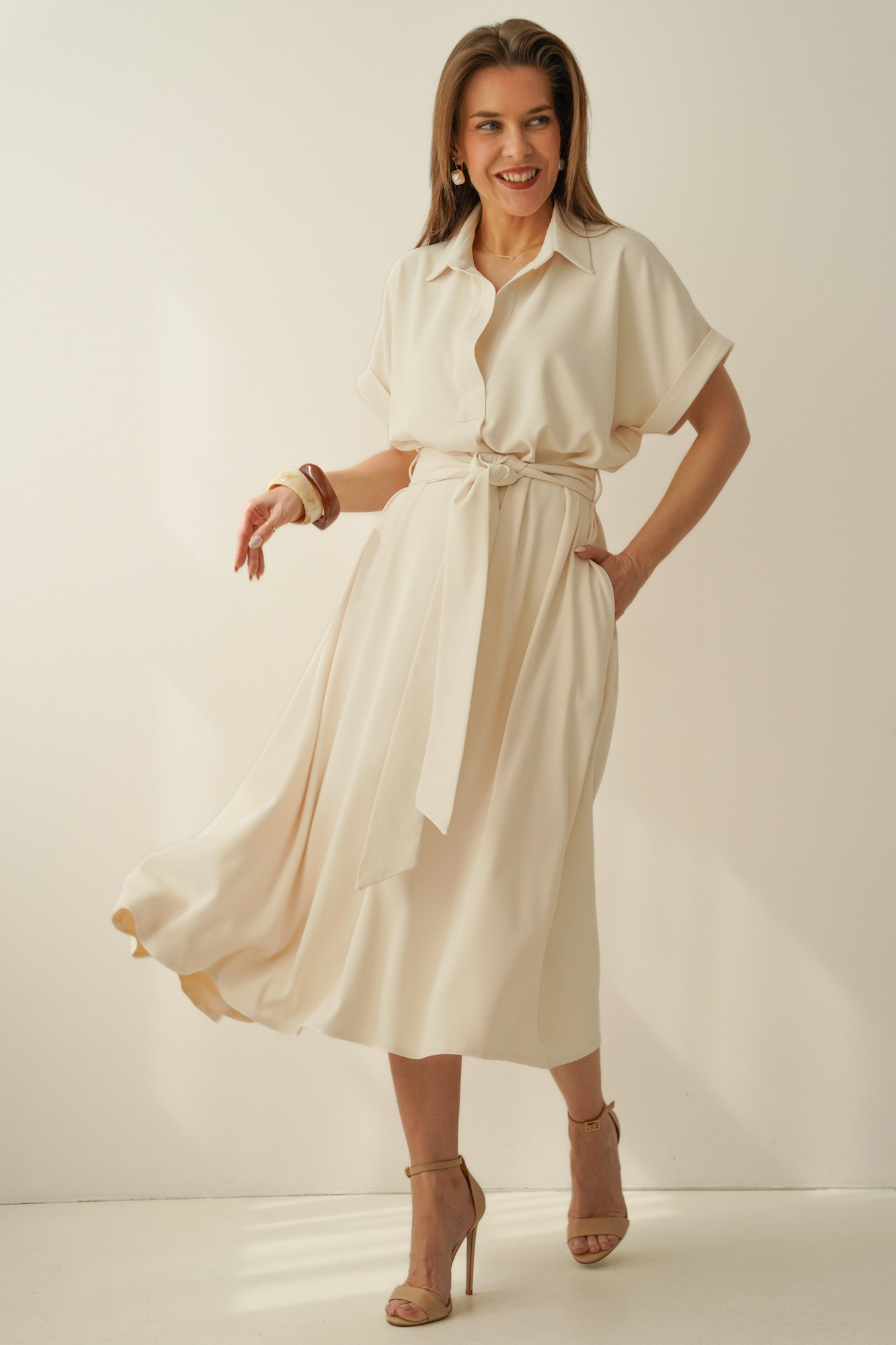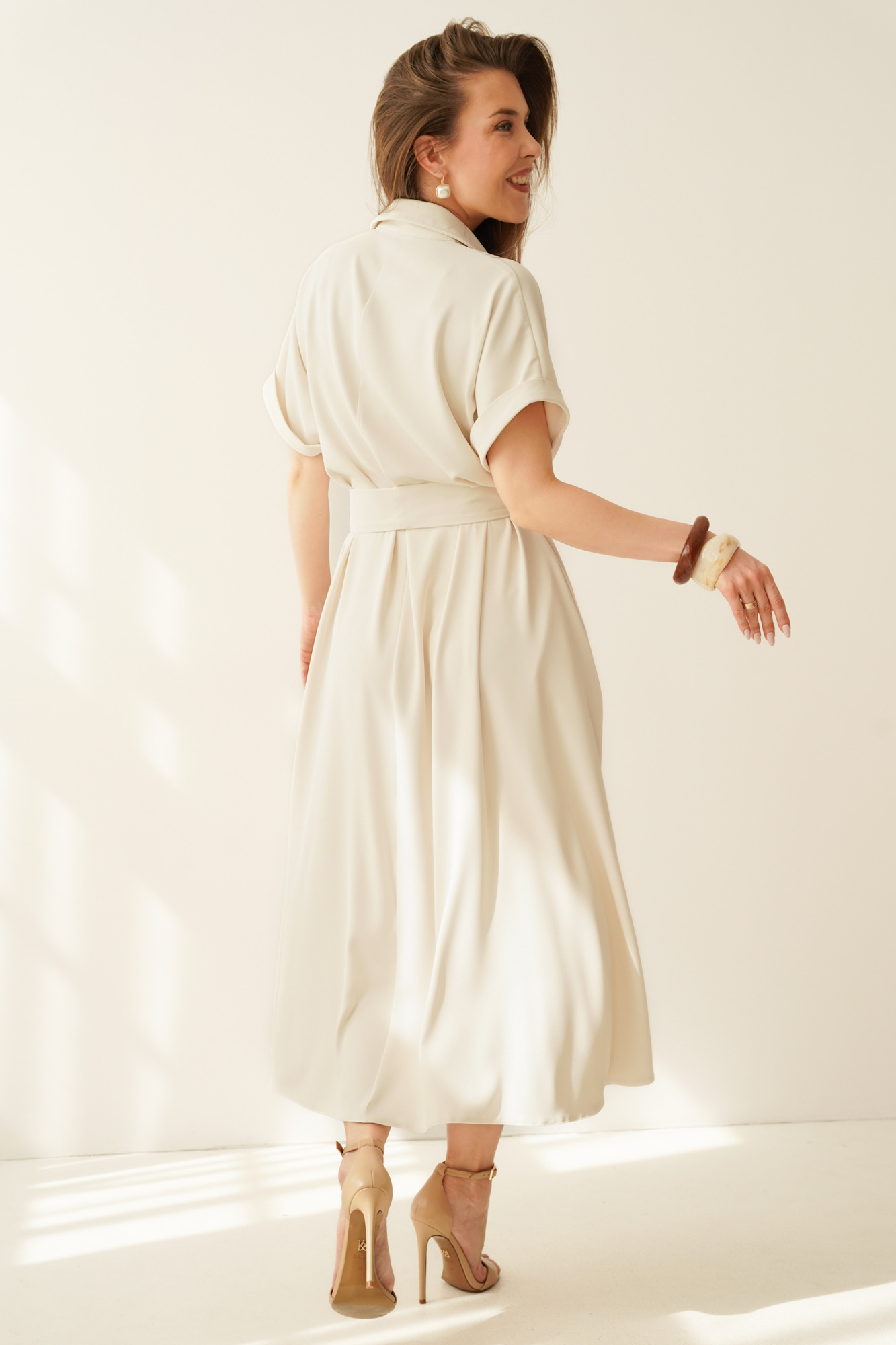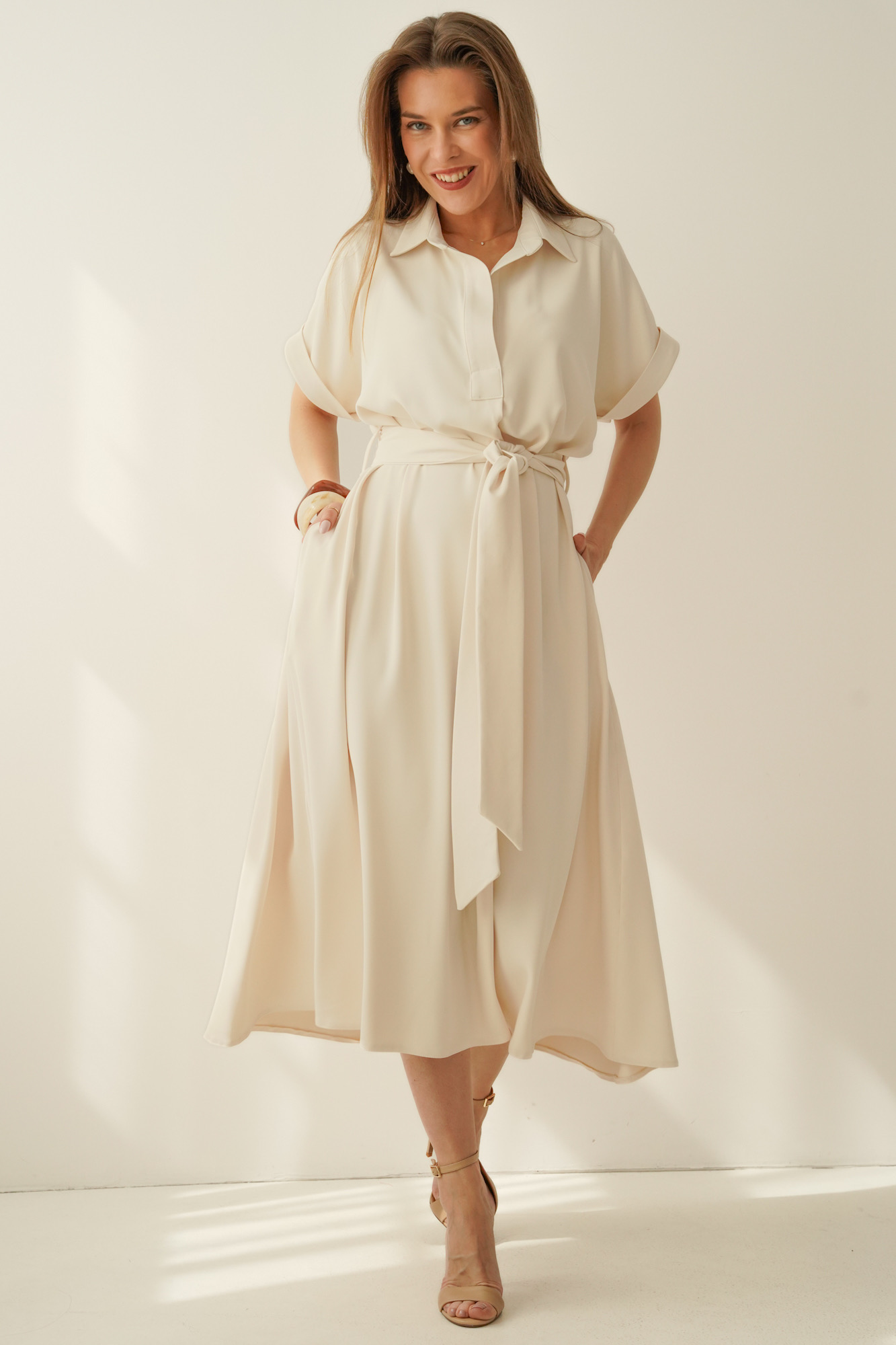 Luźna sukienka smart casual z kołnierzykiem Elan ecru