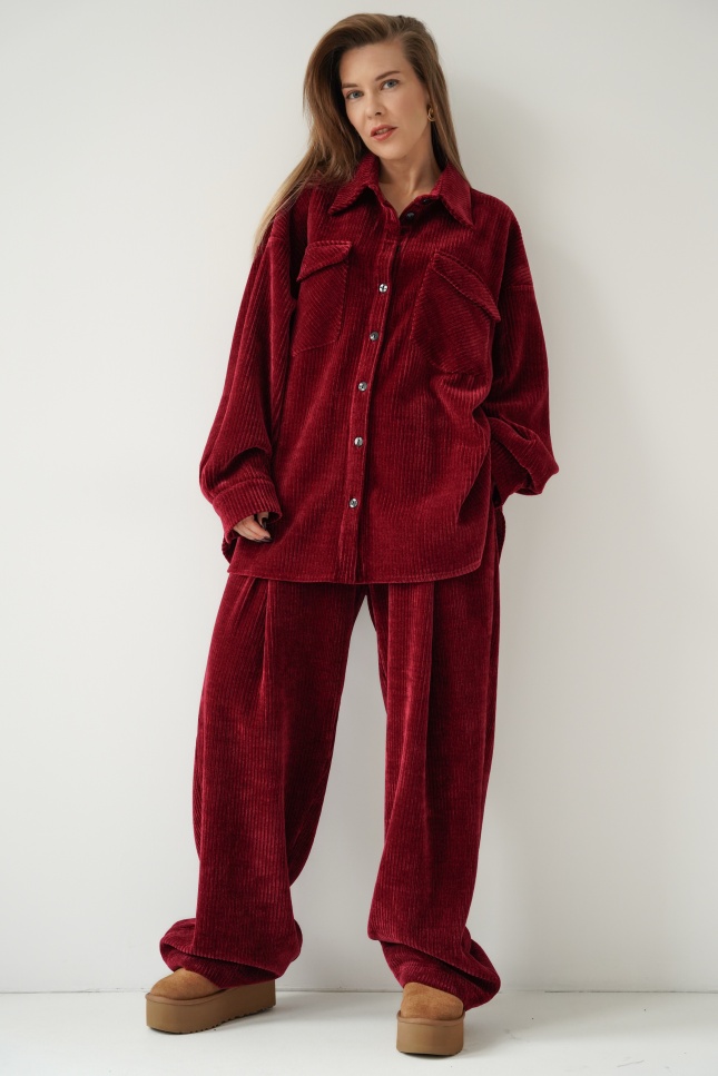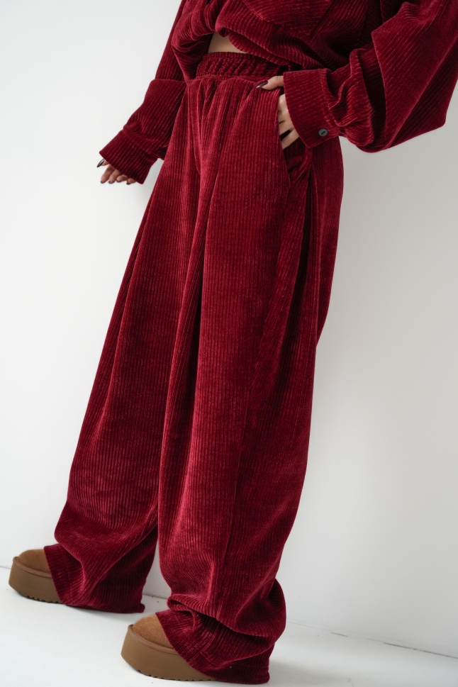 Luźne sztruksowe spodnie casual Urban Cord marsala