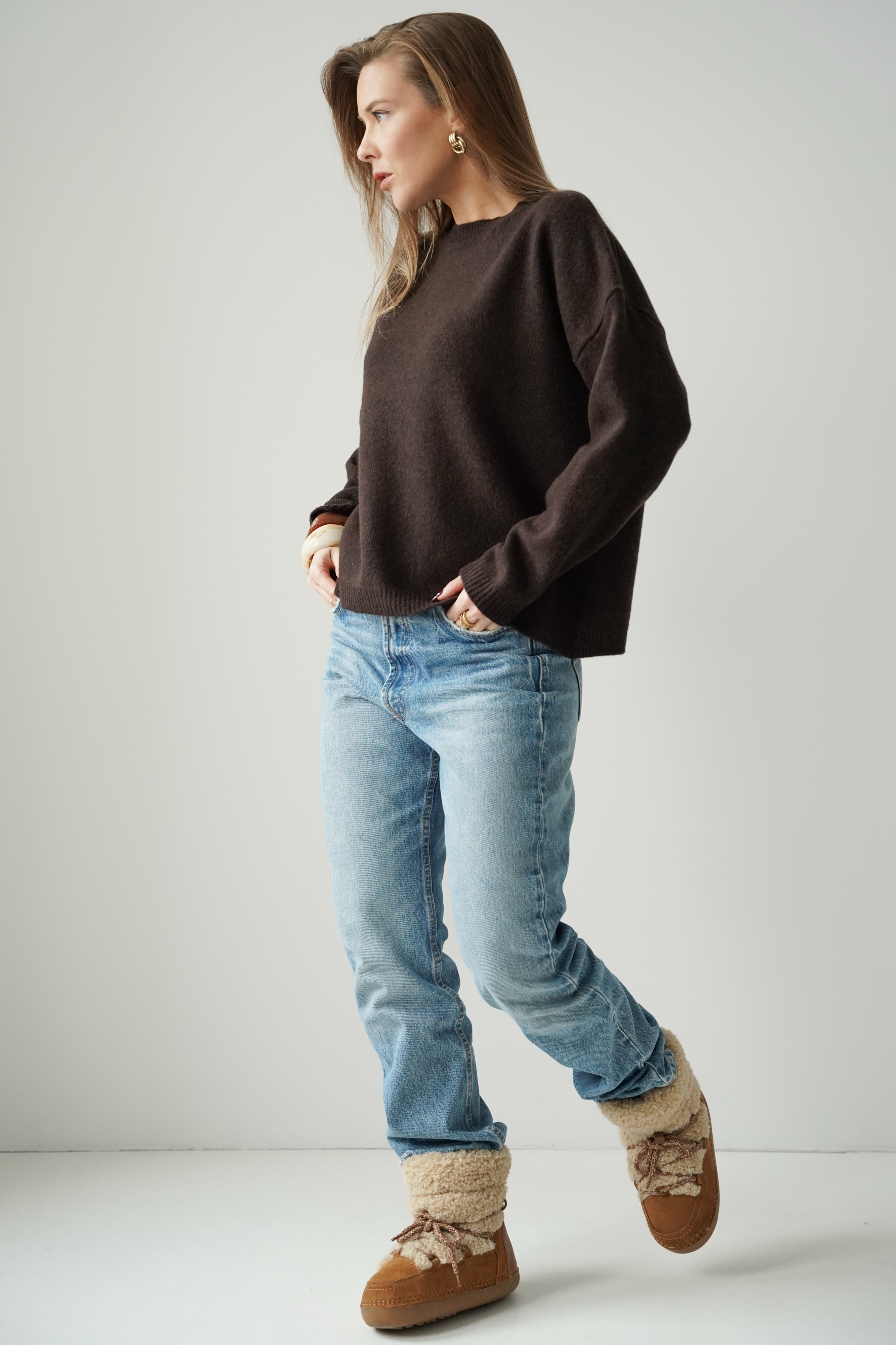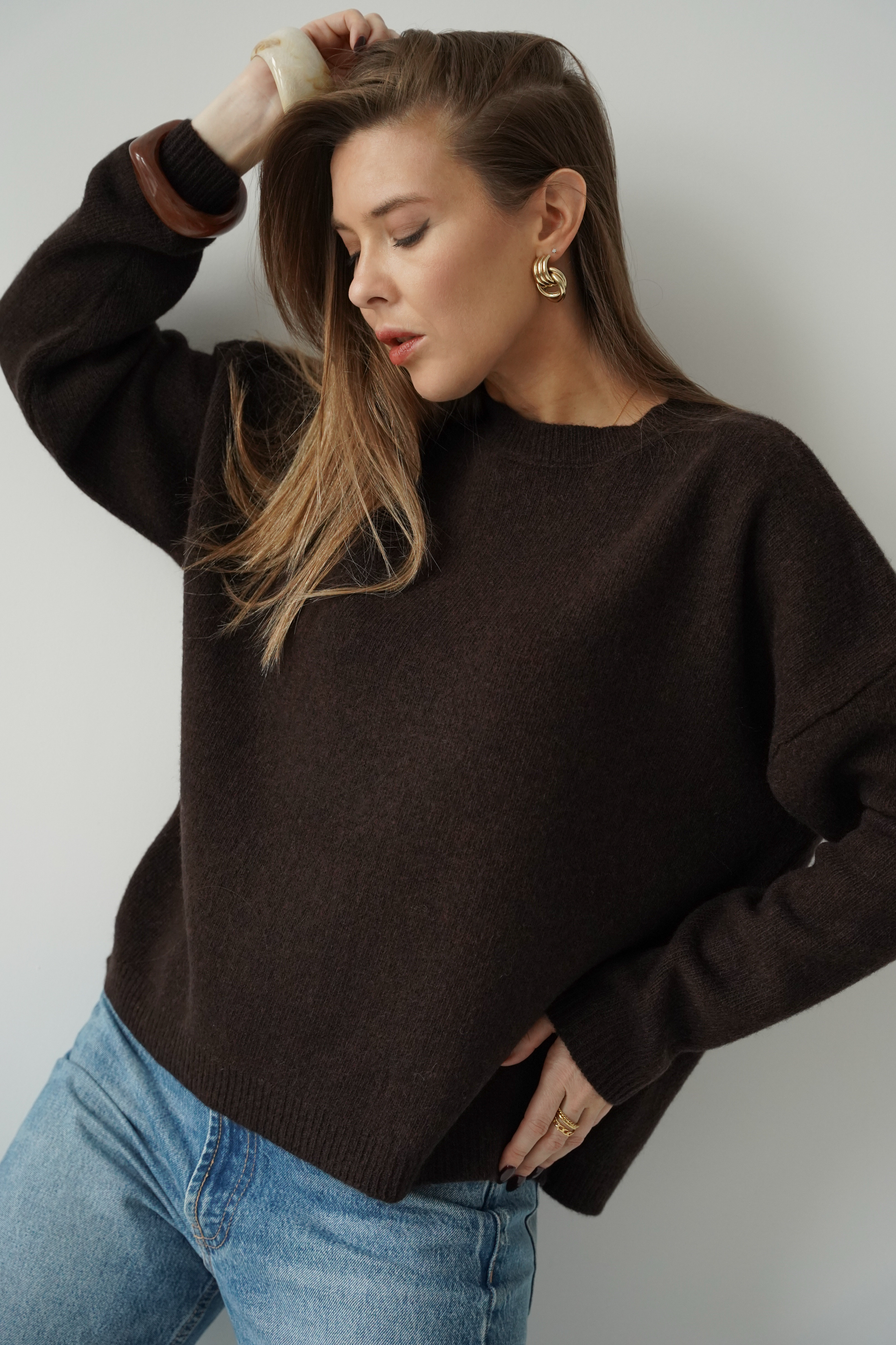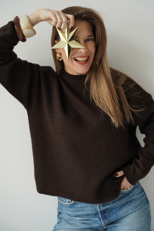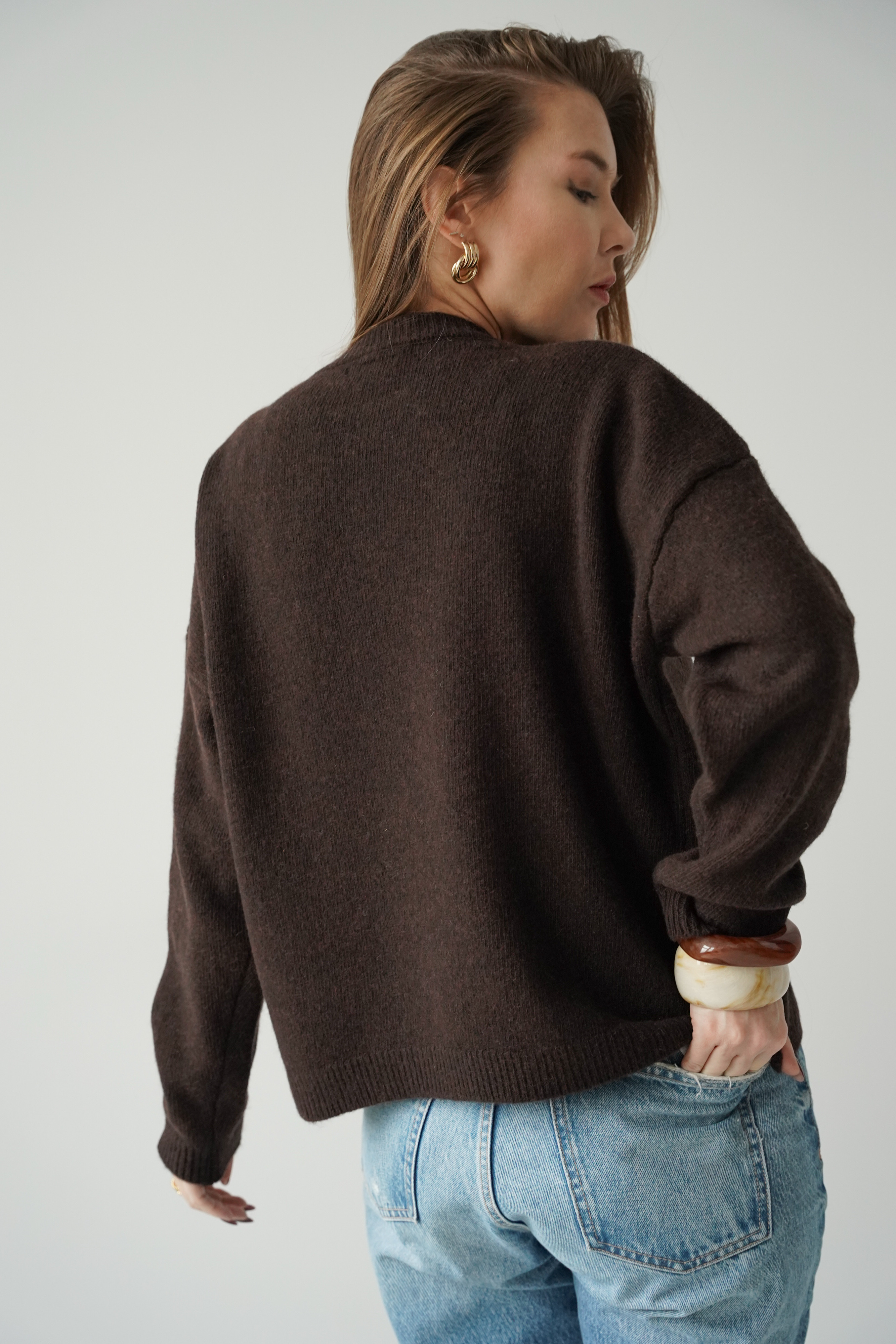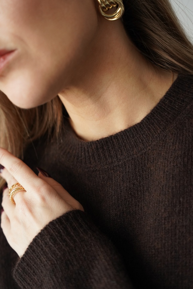 Luźny pudełkowy sweter 100% wełna merino Lea czekoladowy