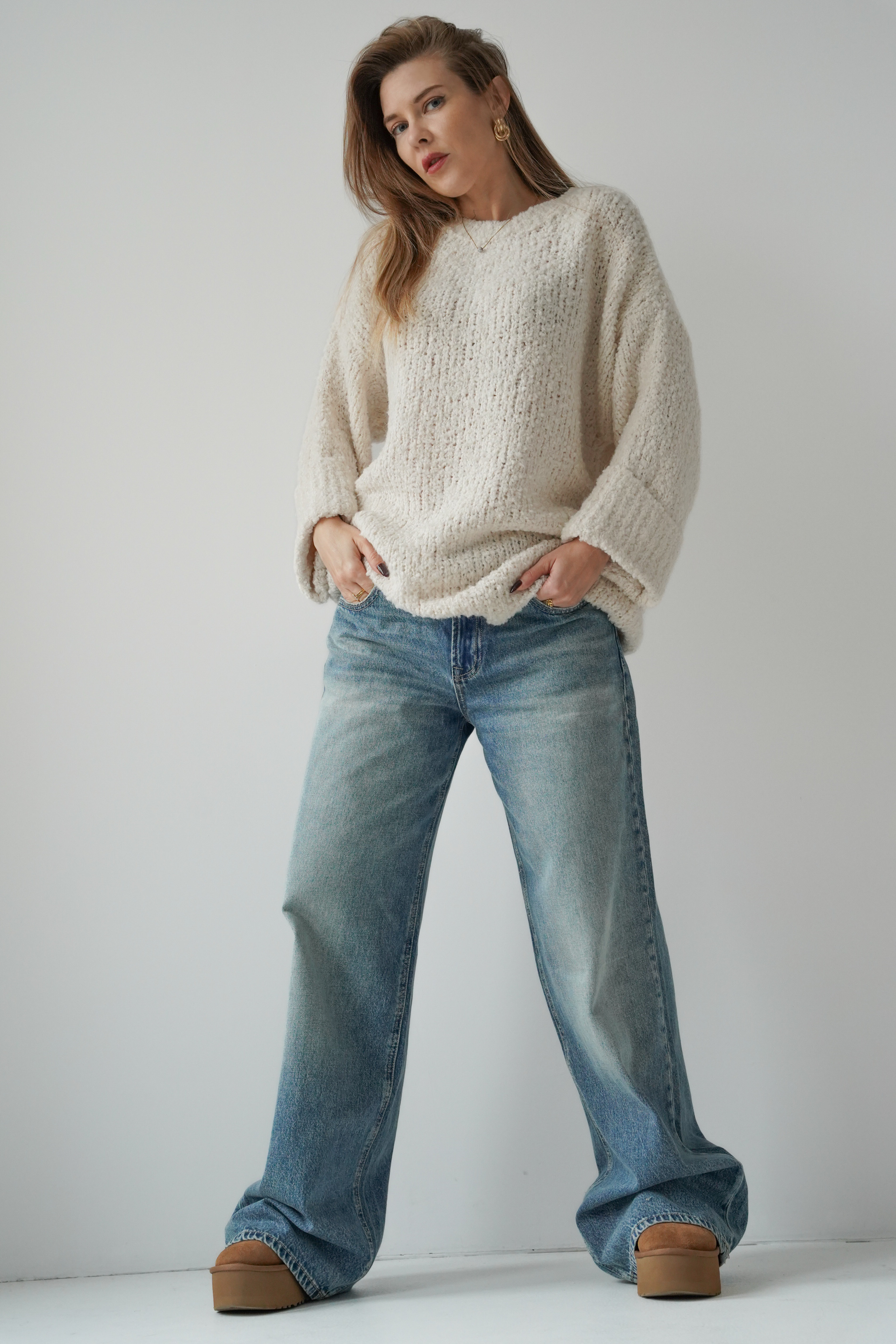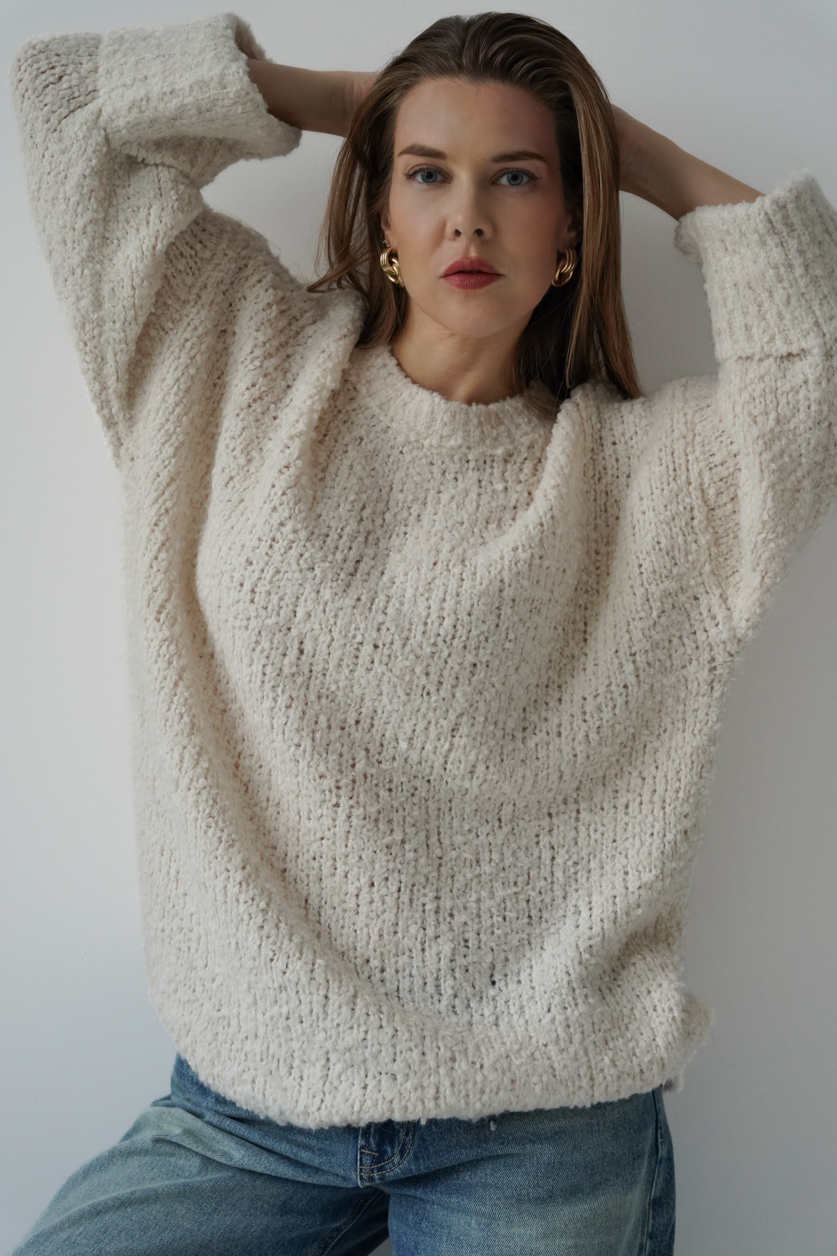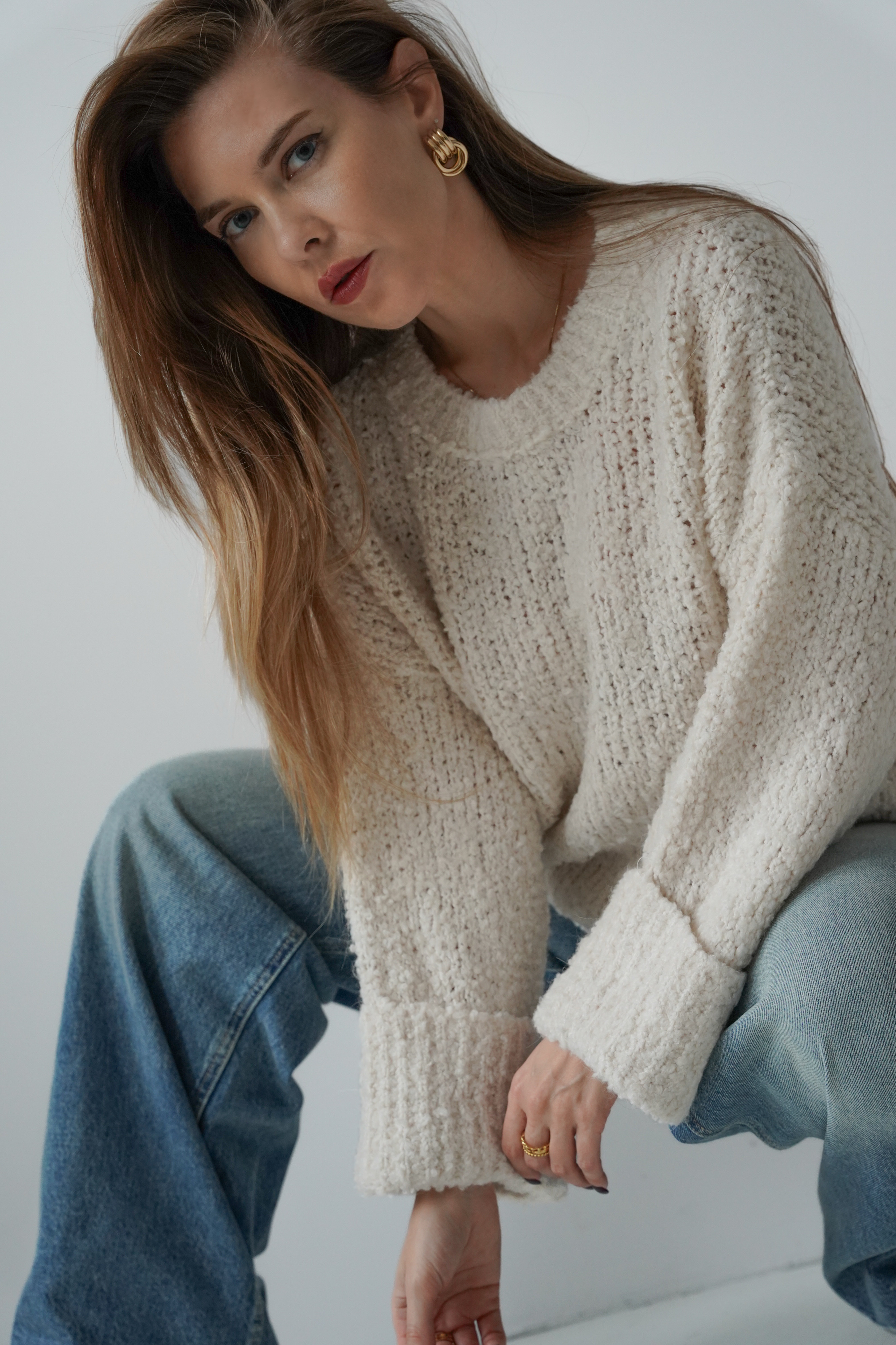 Luźny sweter oversize z przędzy boucle Norden beżowy