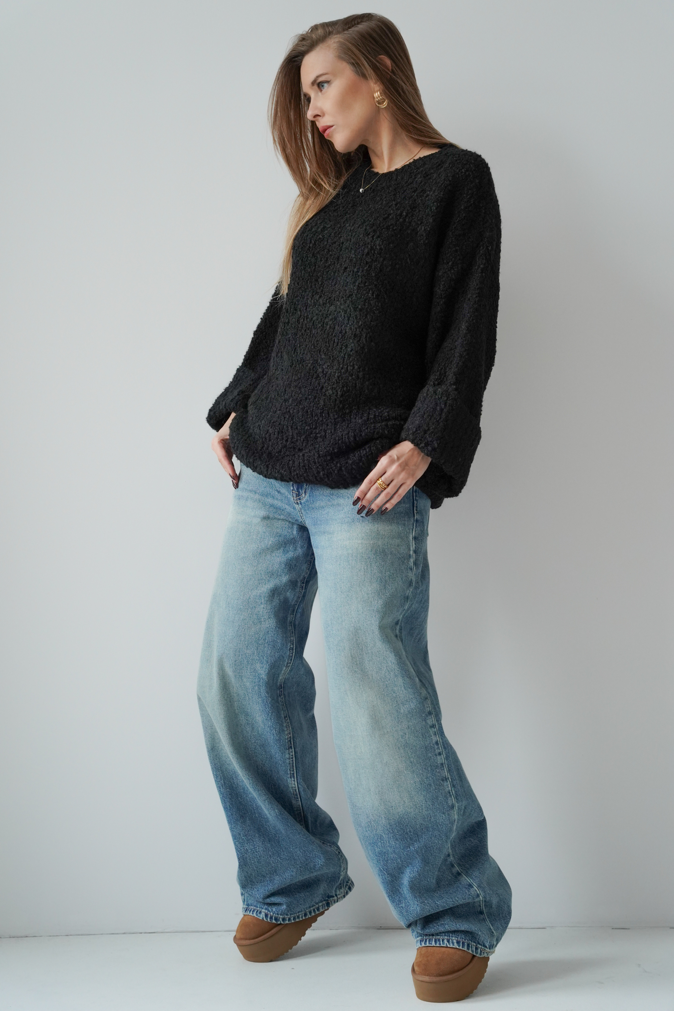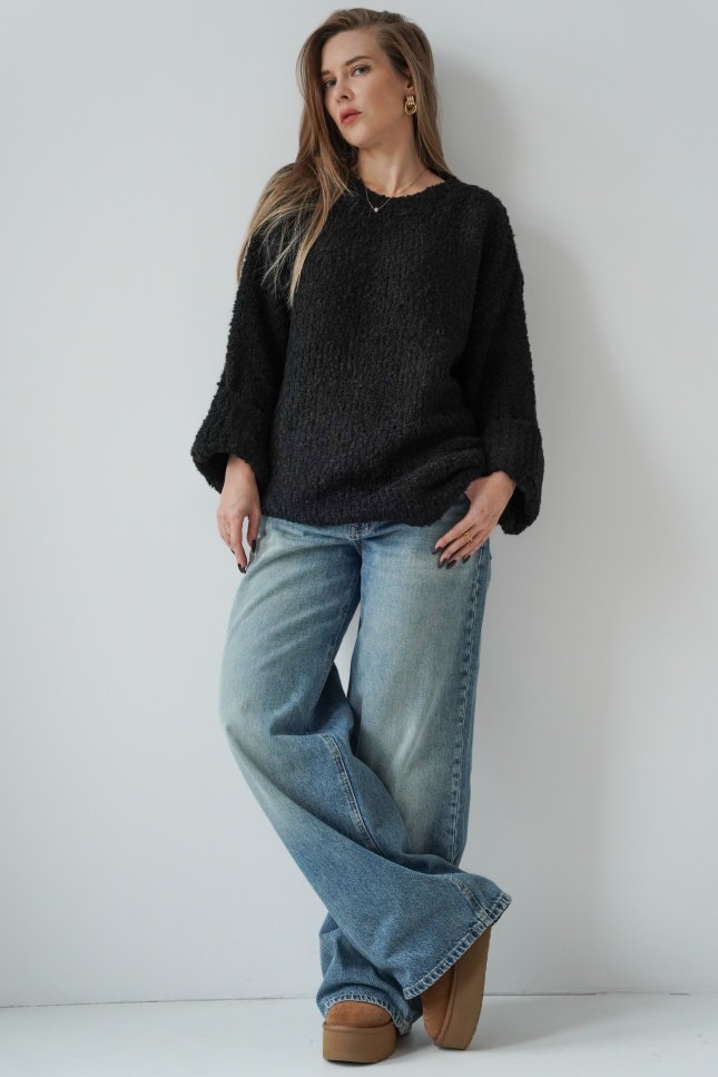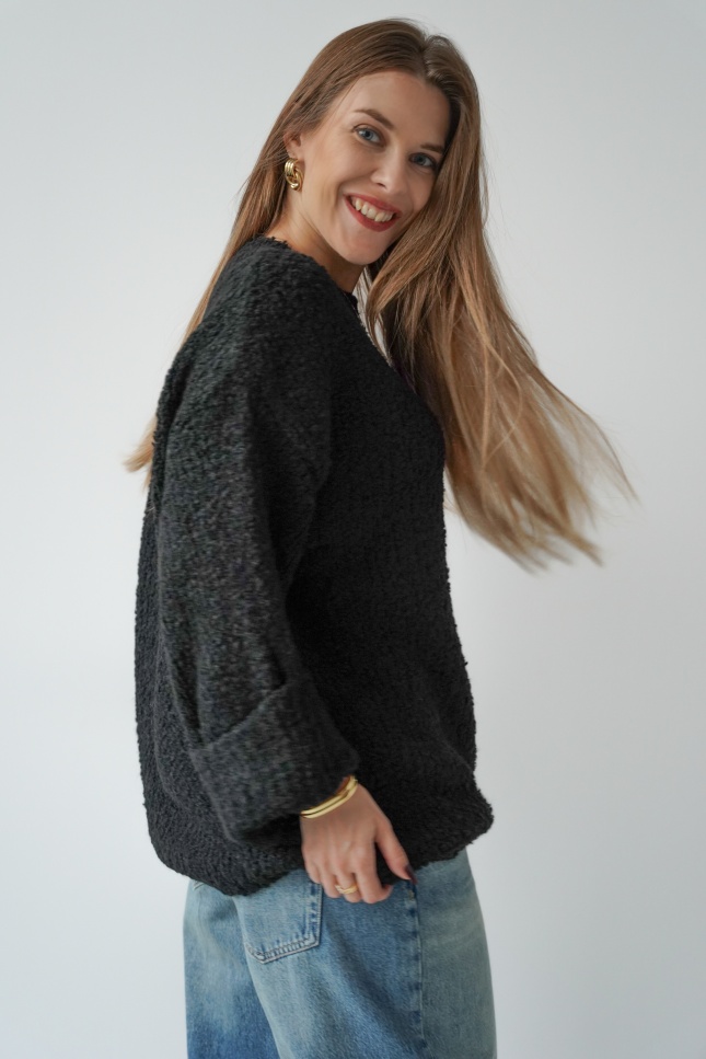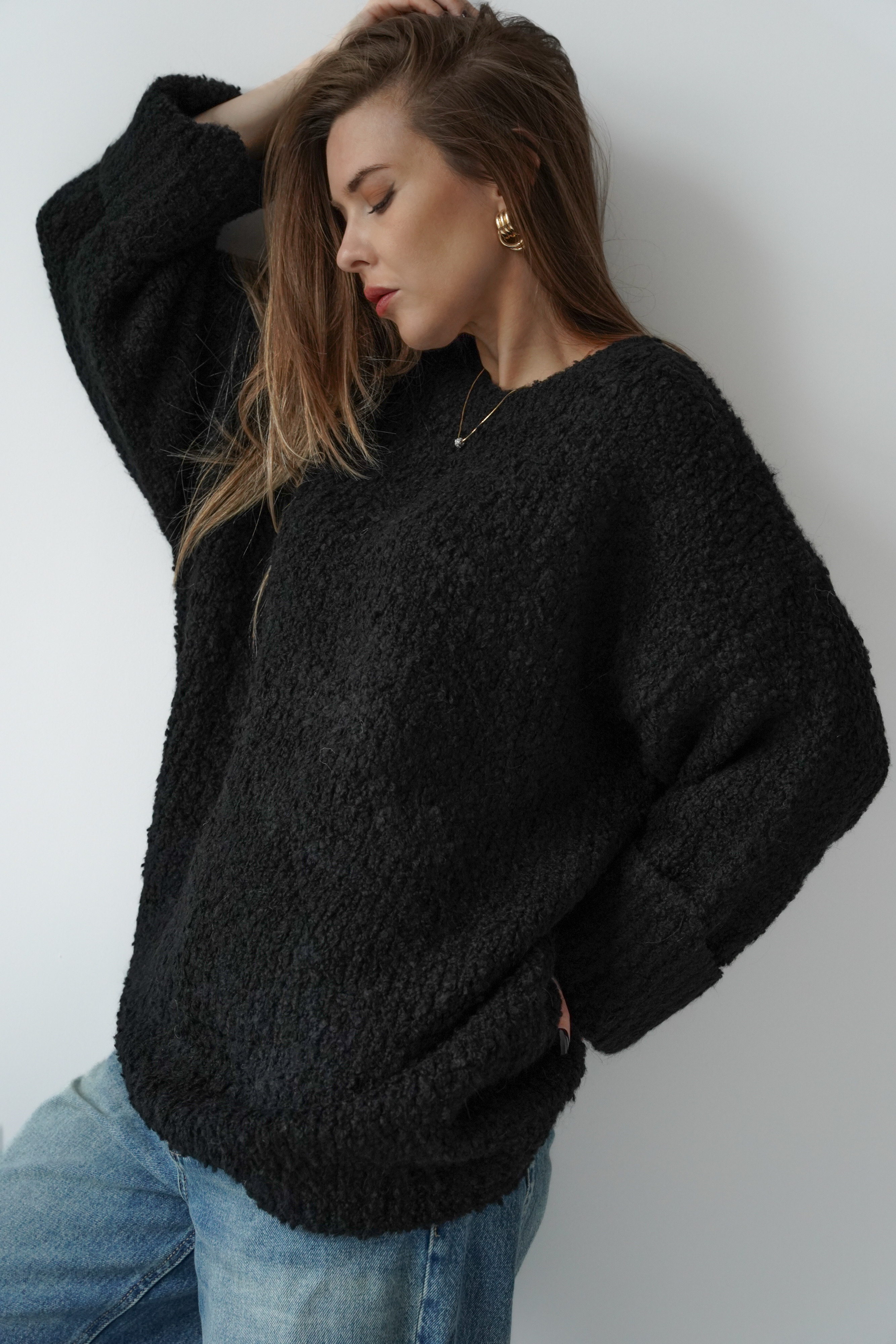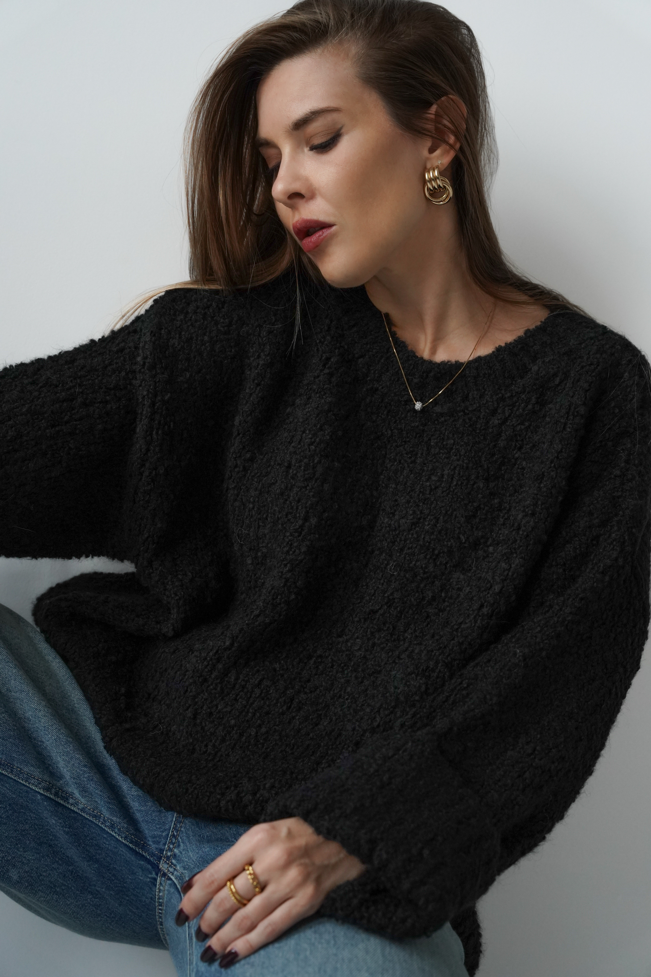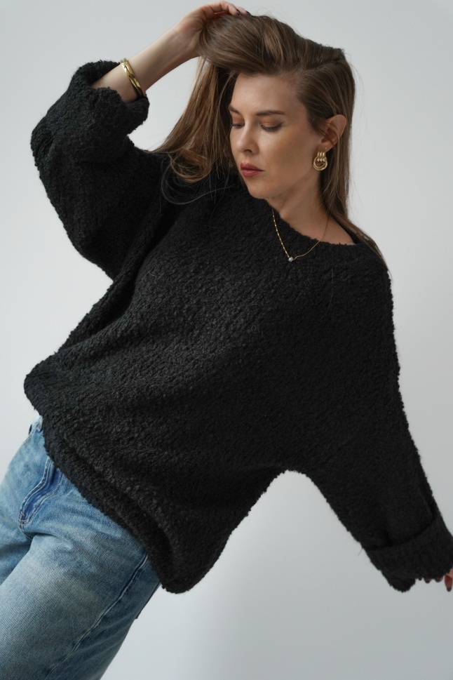 Luźny sweter oversize z przędzy boucle Norden czarny