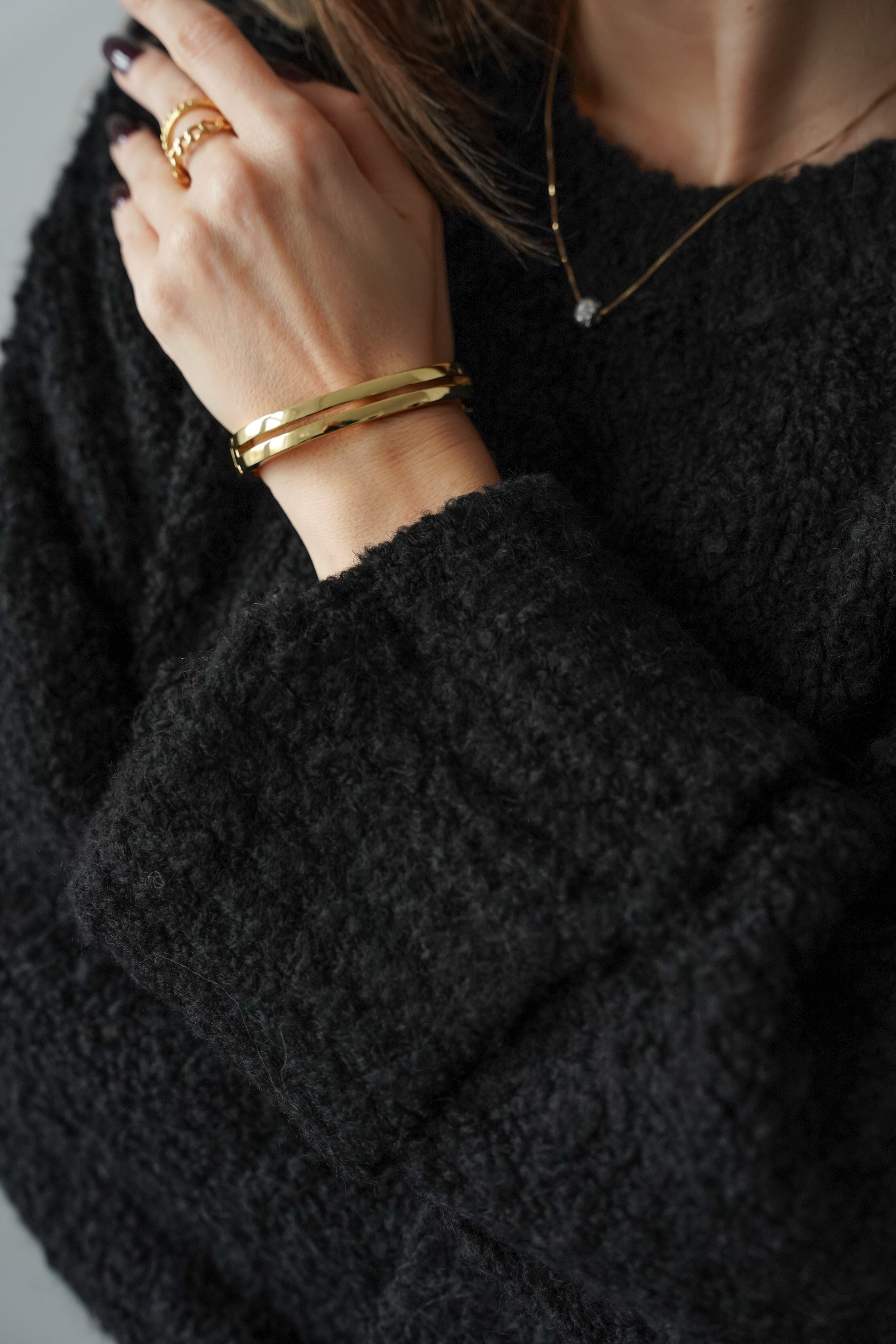 „NORDEN” to oversize’owy sweter o dłuższym kroju, wykonany z unikatowej przędzy typu bouclé, która nadaje mu puszystości i miękkości. Jego podwijane rękawy zakończone mankietem dodają nonszalancji i lekkości. To model inspirowany skandynawskim minimalizmem – ciepły, wygodny i pełen subtelnej elegancji. Idealny do noszenia na co dzień, w duchu quiet luxury.