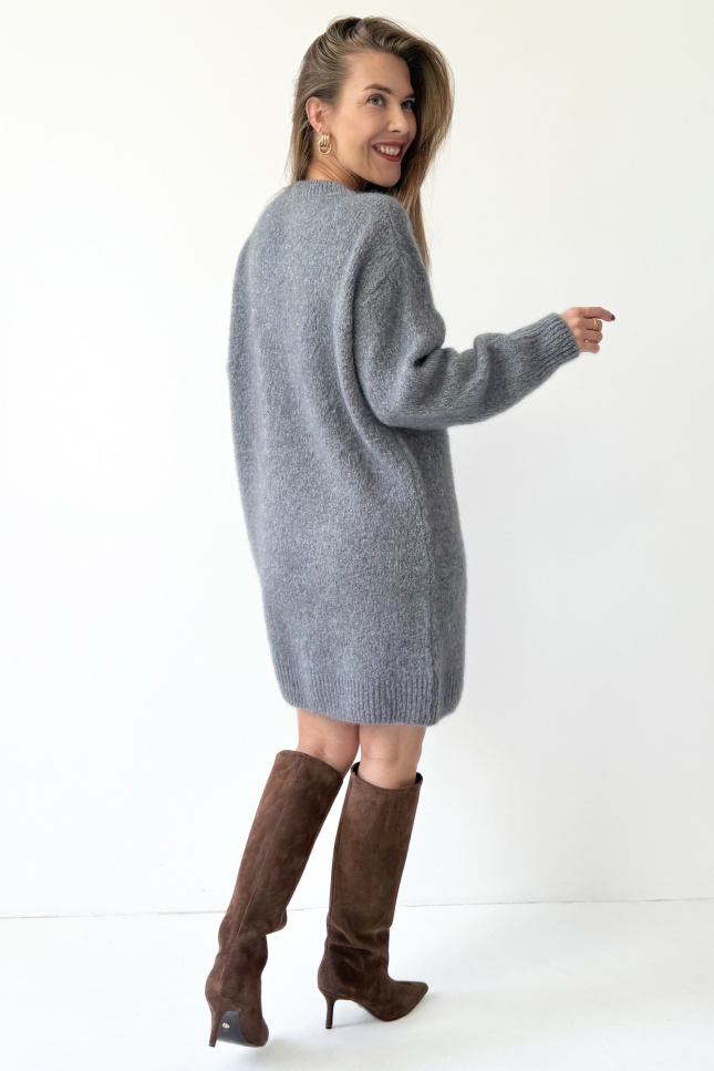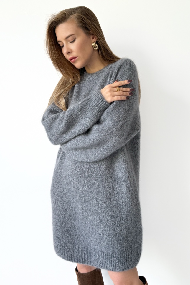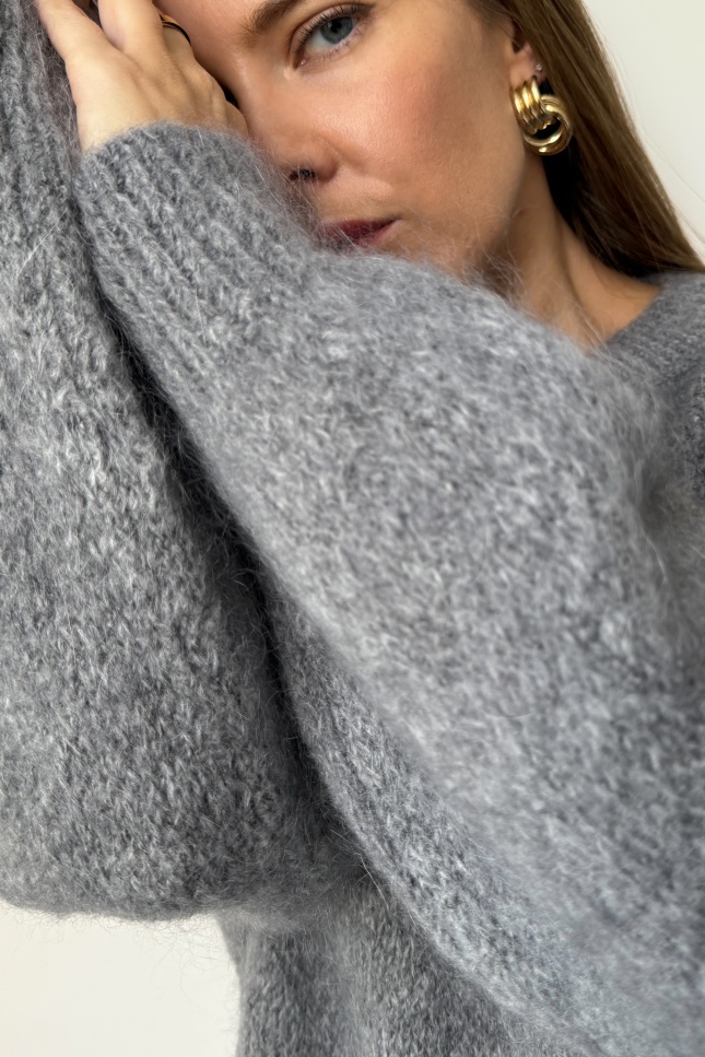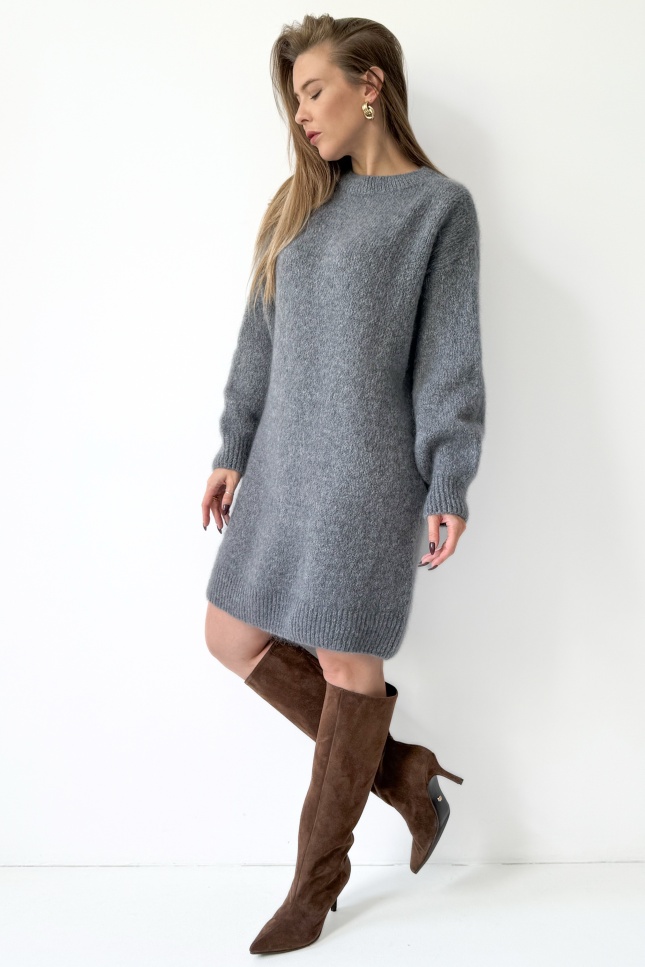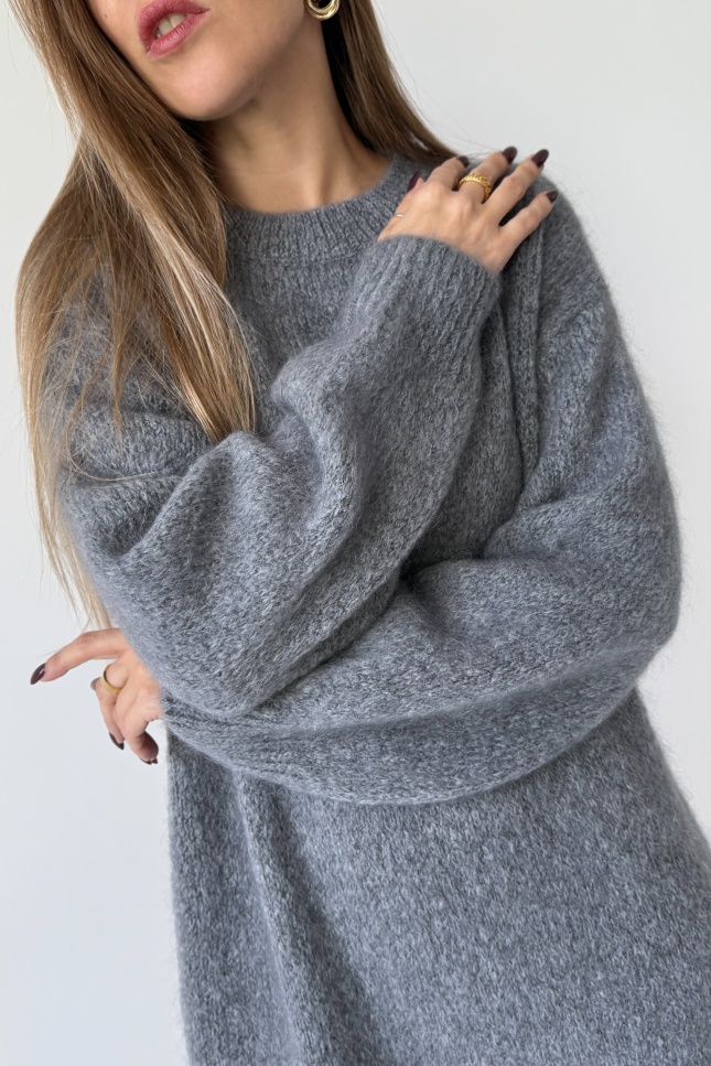 „Sophia” to puszysta, miękka sukienka z naturalnej przędzy z dodatkiem kid moheru i moheru, którą możesz nosić także jako tunikę. Luźny, kobiecy krój zapewnia swobodę i komfort, a subtelna faktura włókien dodaje jej wyjątkowej lekkości. Idealna na chłodniejsze dni – otula, nie tracąc elegancji.