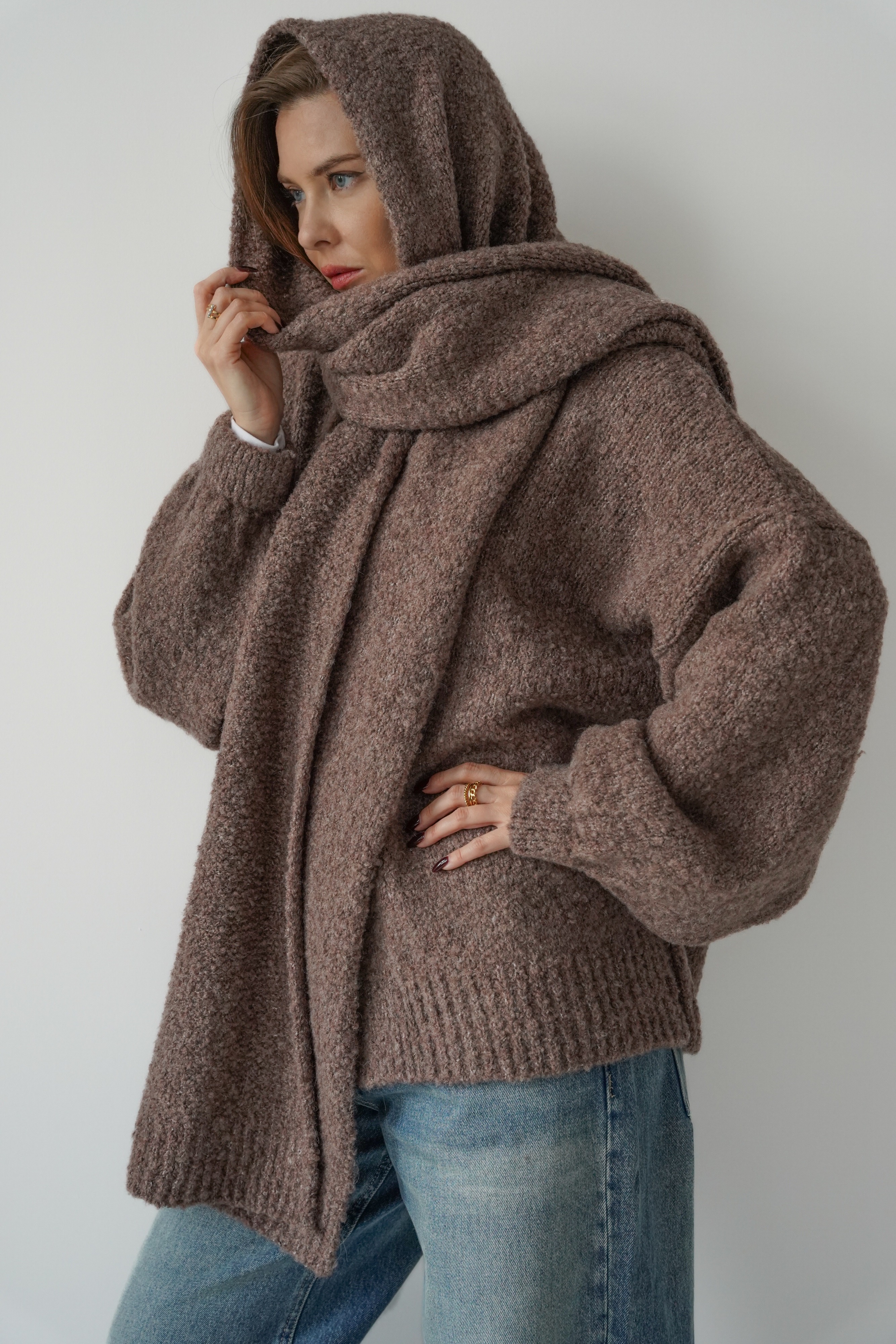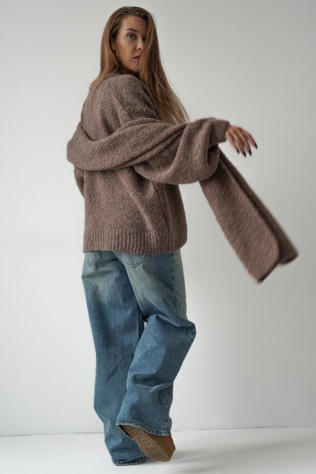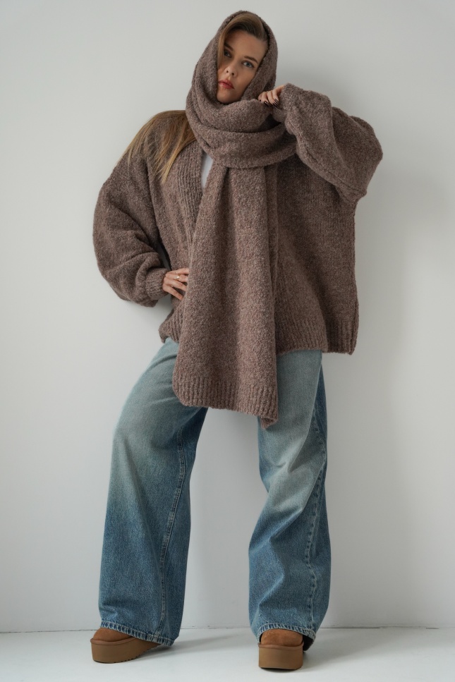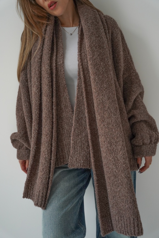Mięciutki kardigan z szalem 2w1 Noa kakao