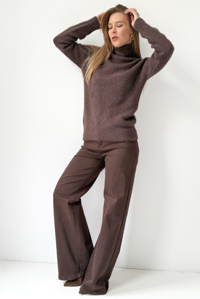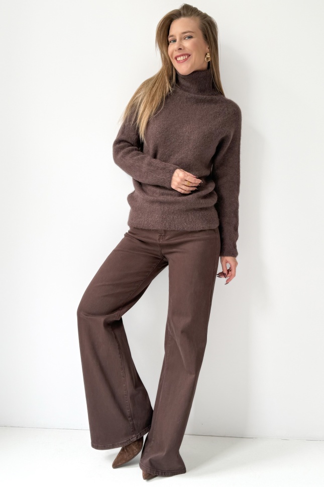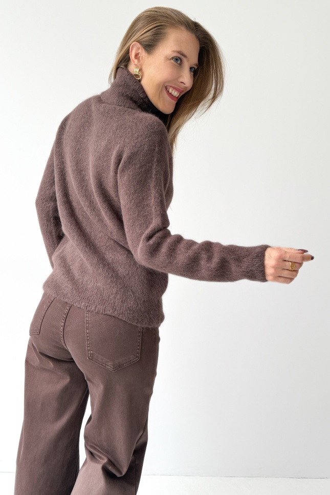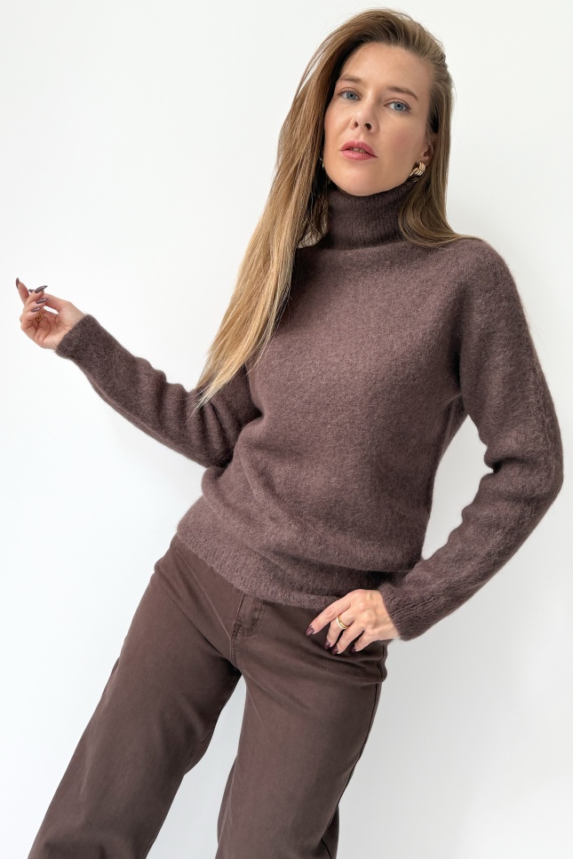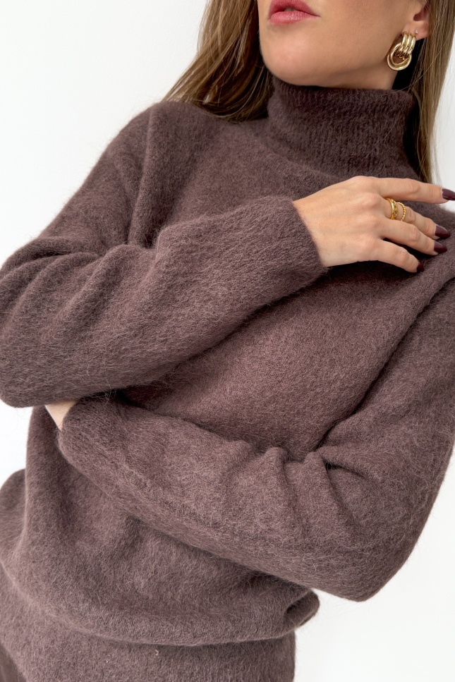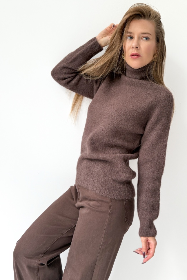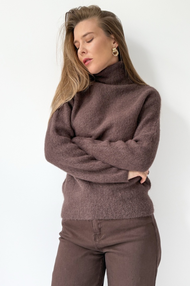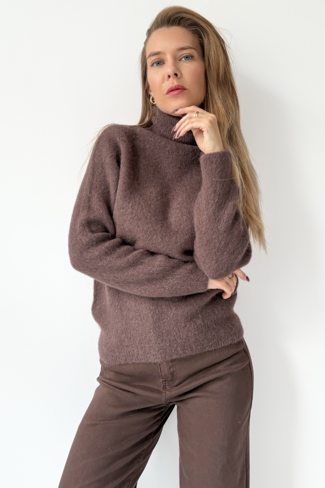 Mięciutki klasyczny golf baby alpaka i wełna dziewicza Bella czekolada