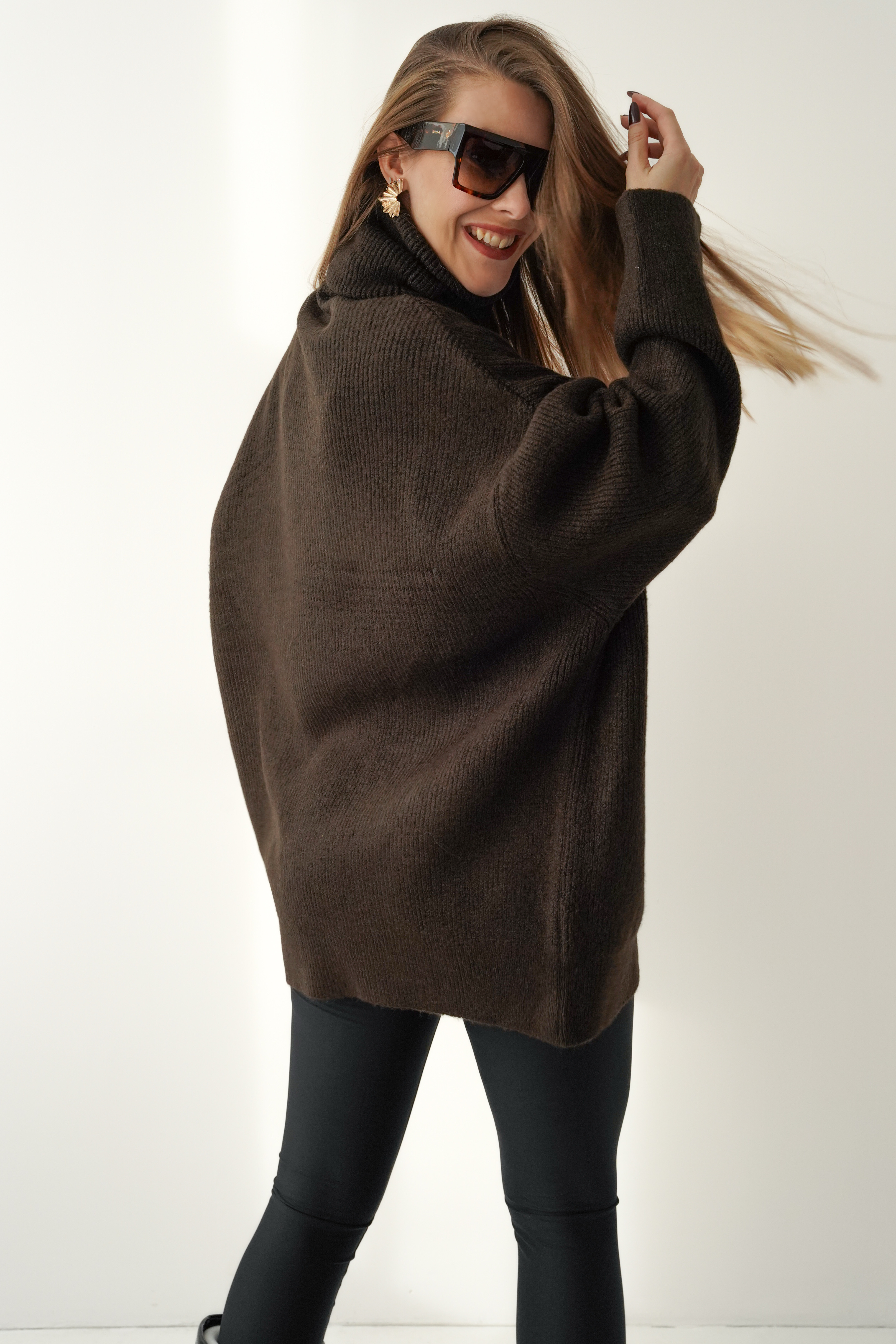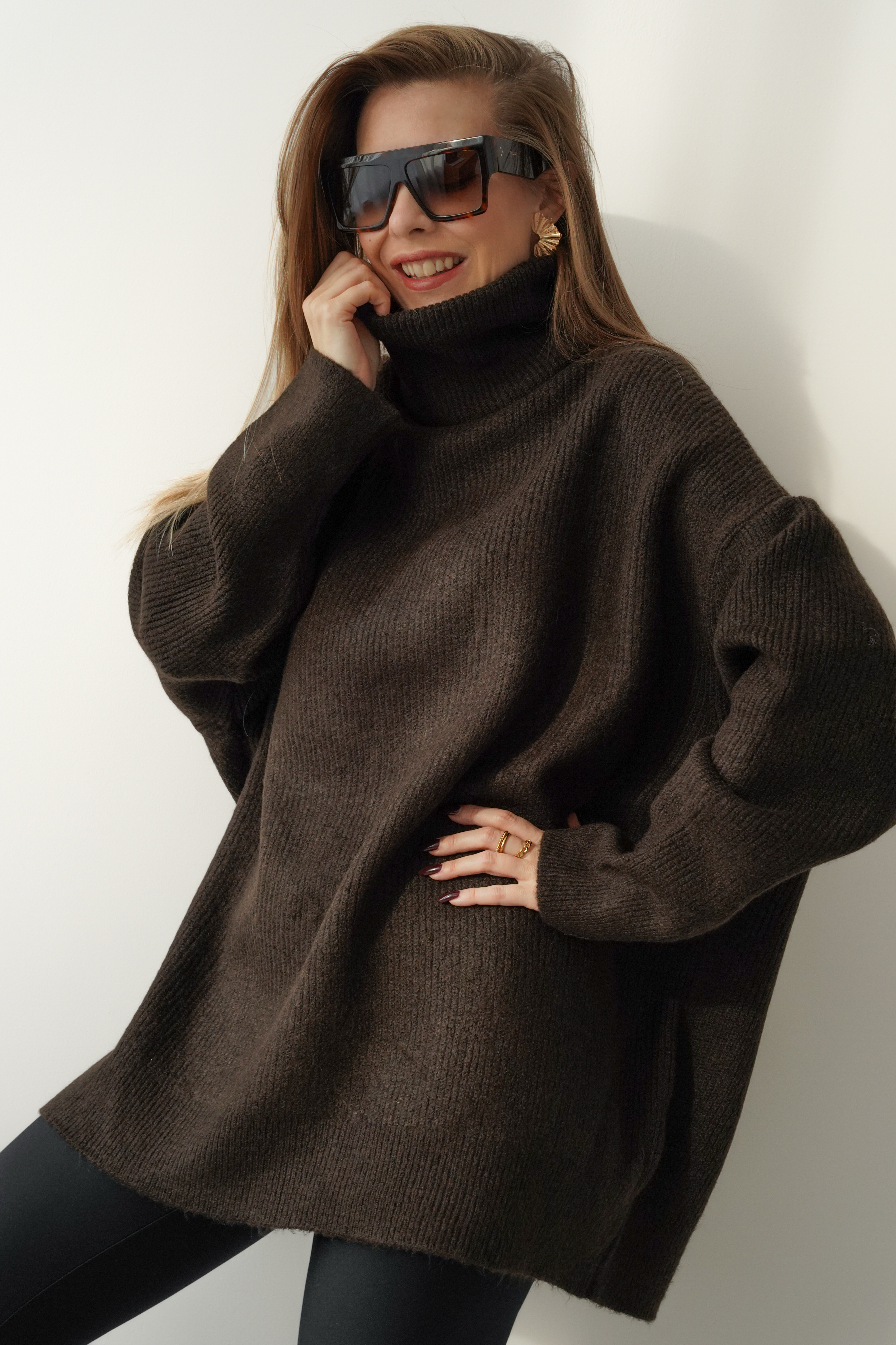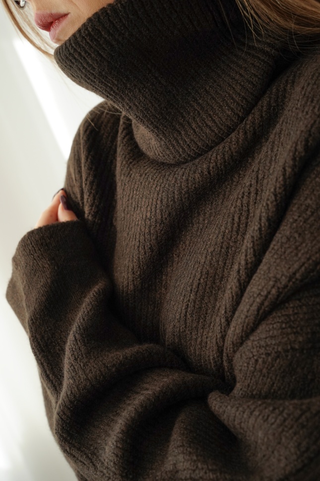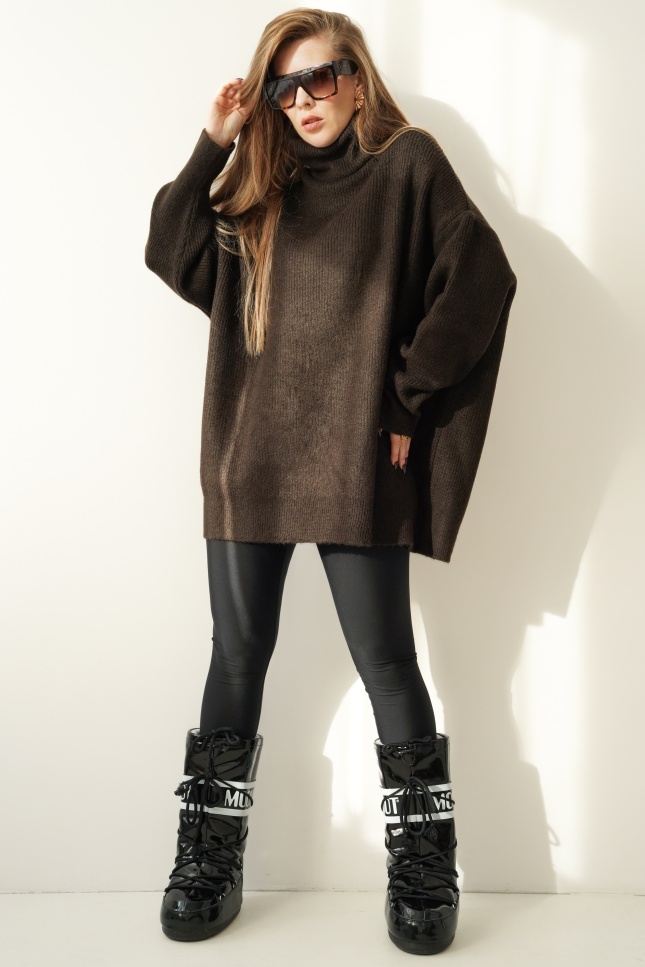 Mięciutki oversizowy golf baby alpaka Apres czekolada
