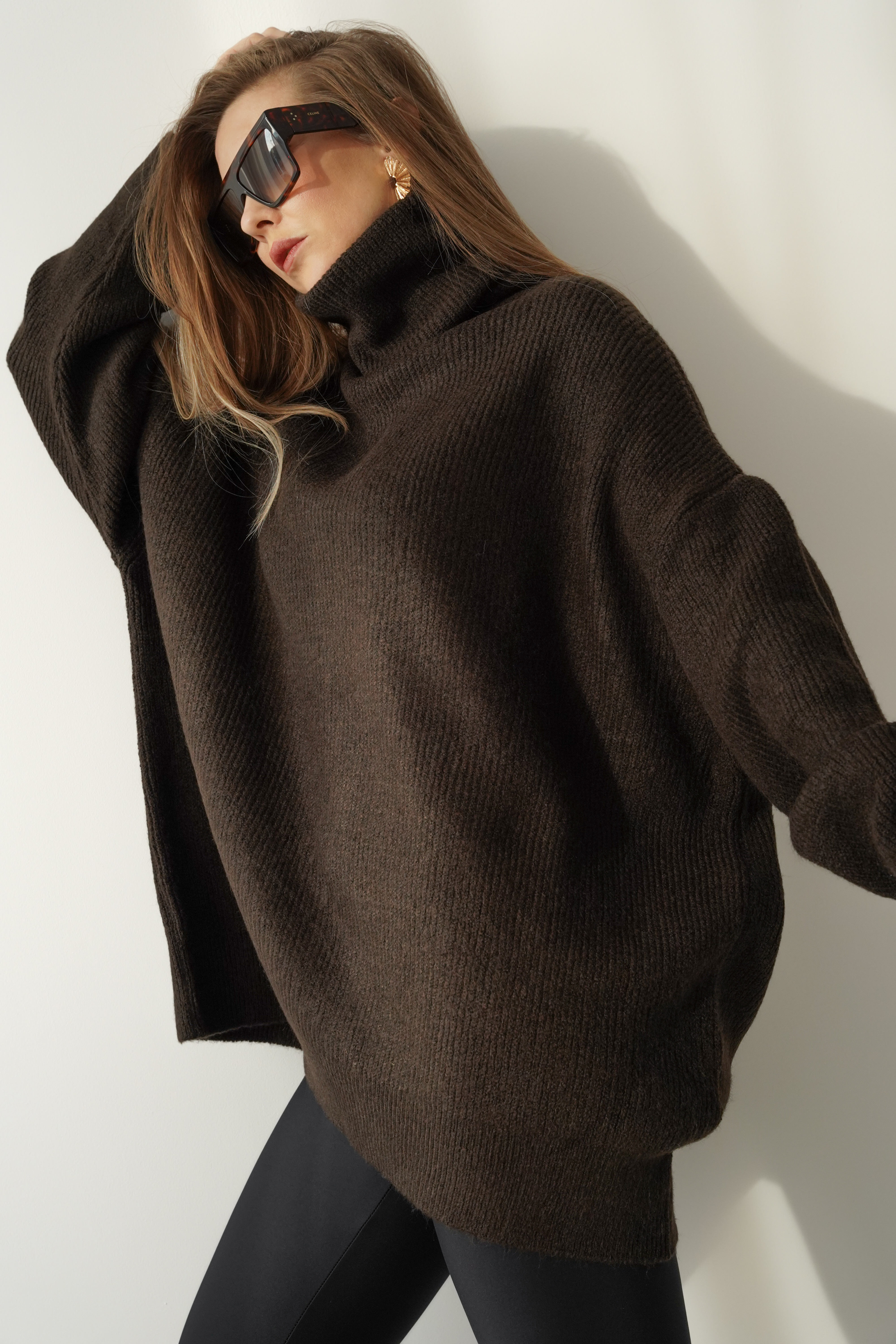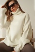 Miękki, oversizowy sweter o luźnym fasonie i wysokim golfie, wykonany z luksusowej przędzy z baby alpaki i wełny. Drobny prążek nadaje mu subtelnej elegancji, a klasyczny krój sprawia, że pasuje zarówno do jeansów, jak i legginsów. „Après” to ponadczasowy model, który otula ciepłem i wpisuje się w estetykę nowoczesnego minimalizmu.