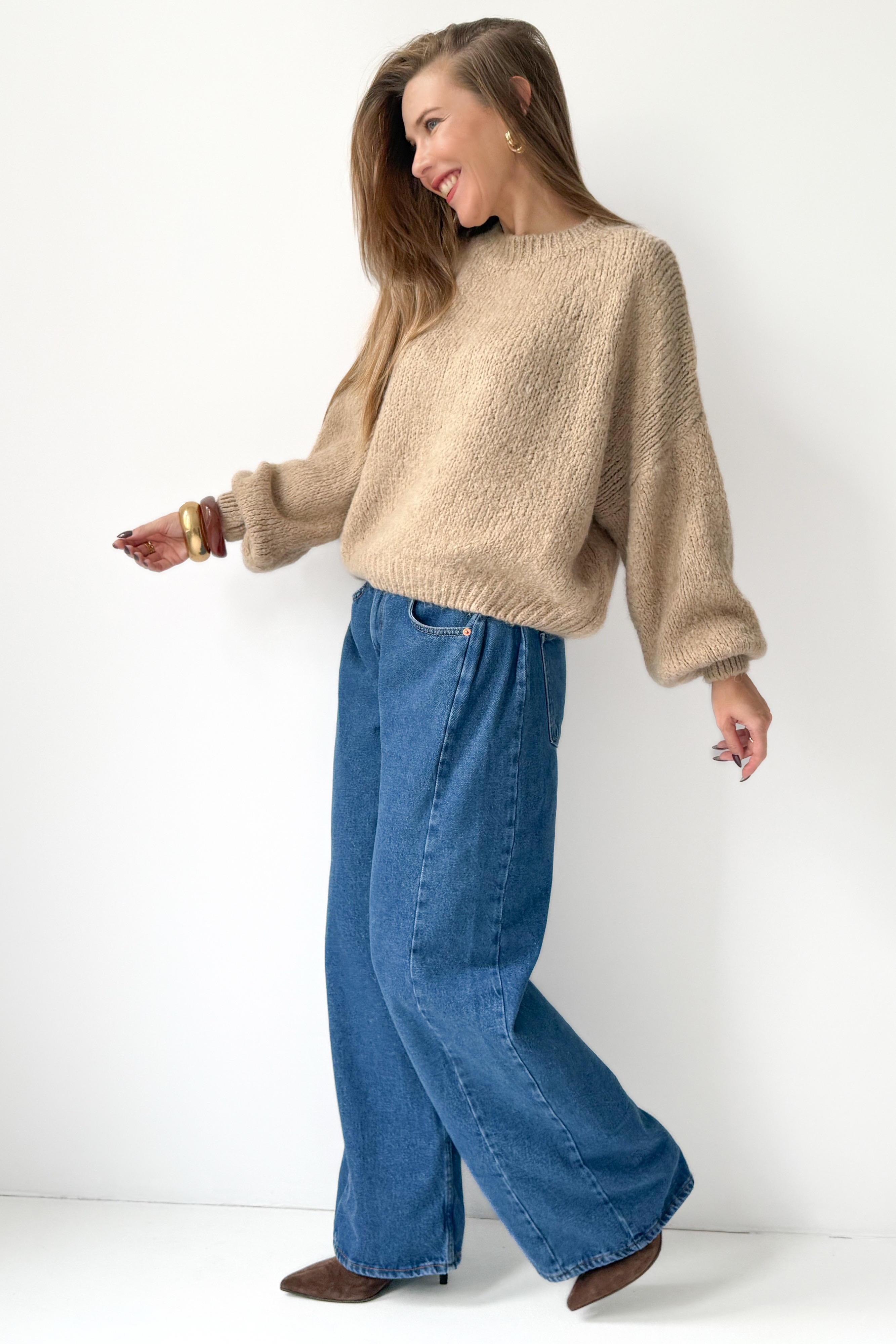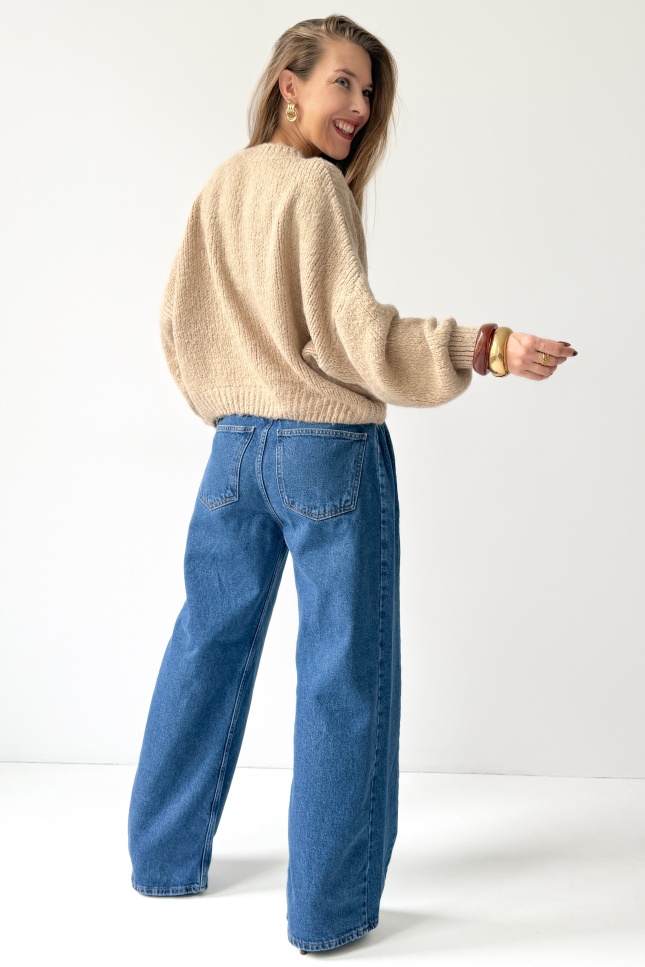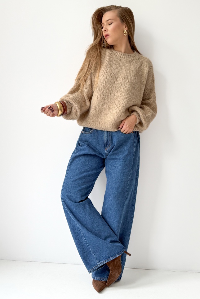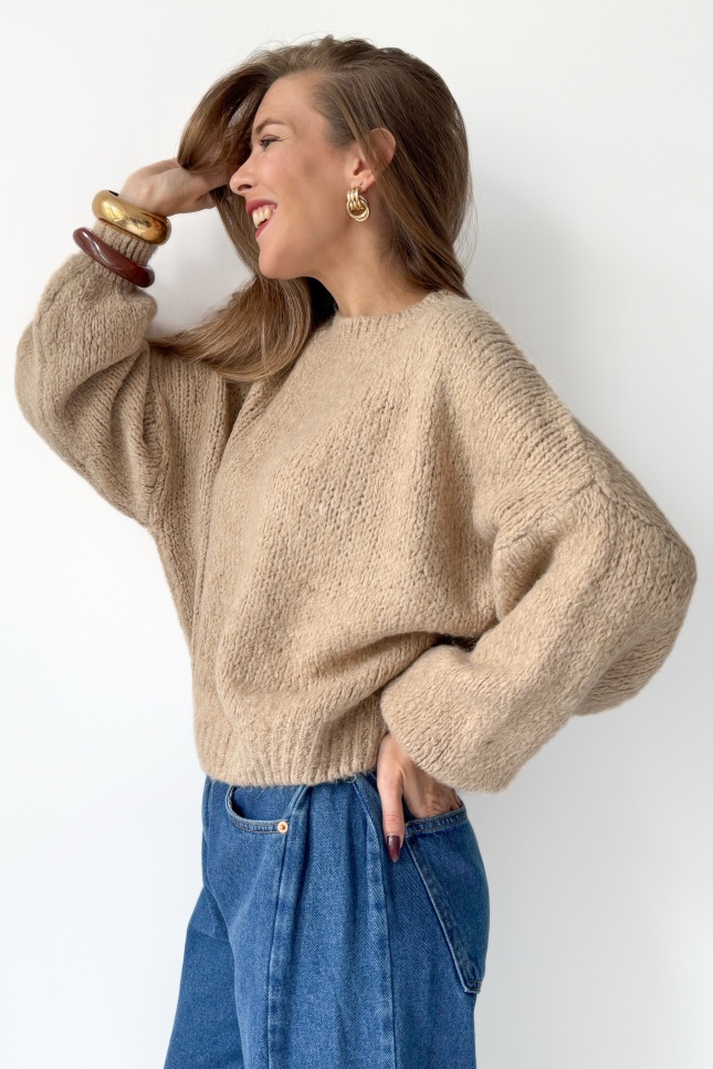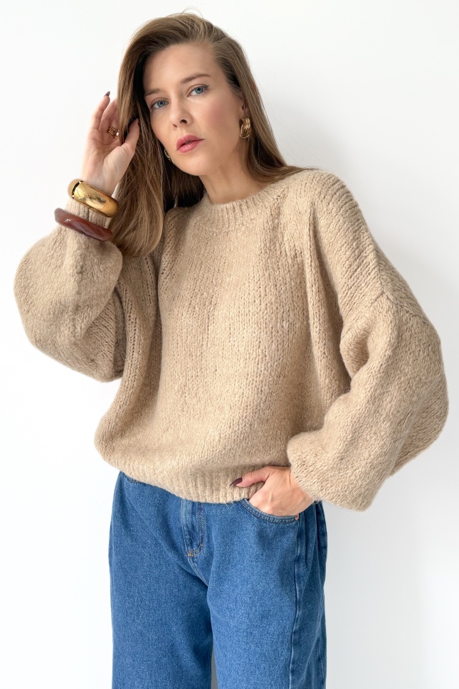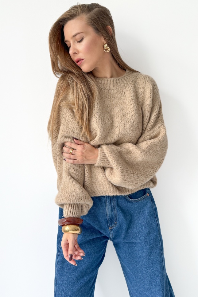 Mięciutki sweter z bufiastymi rękawami Fluffy beżowy
