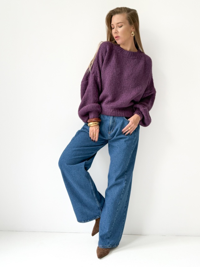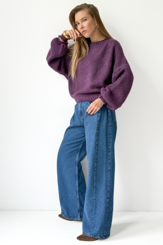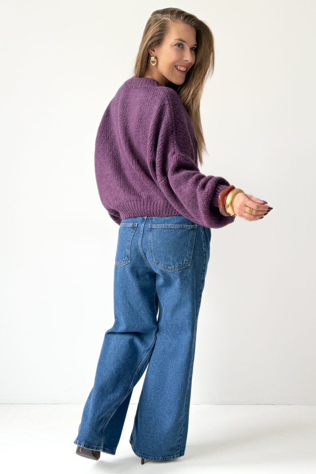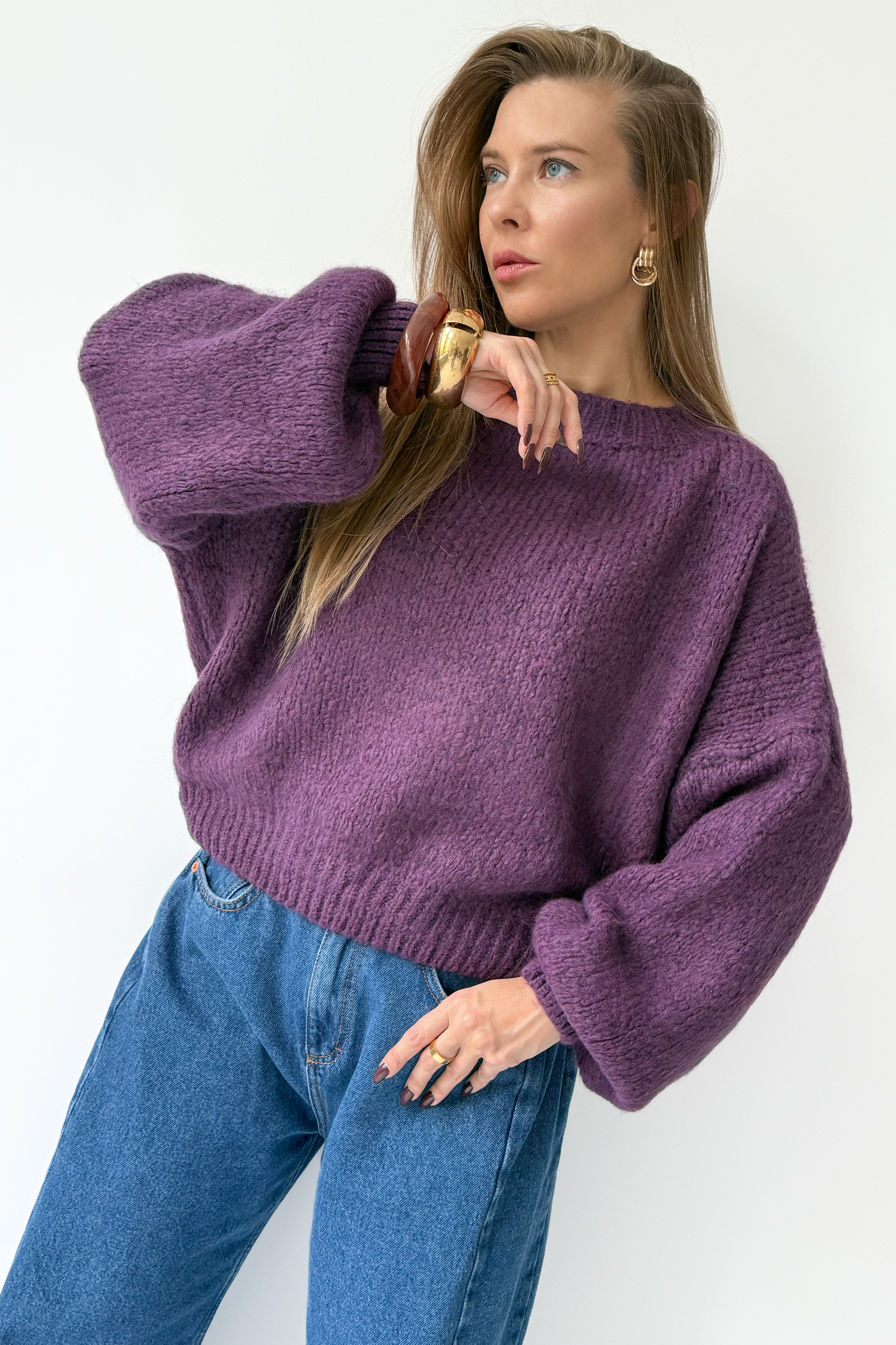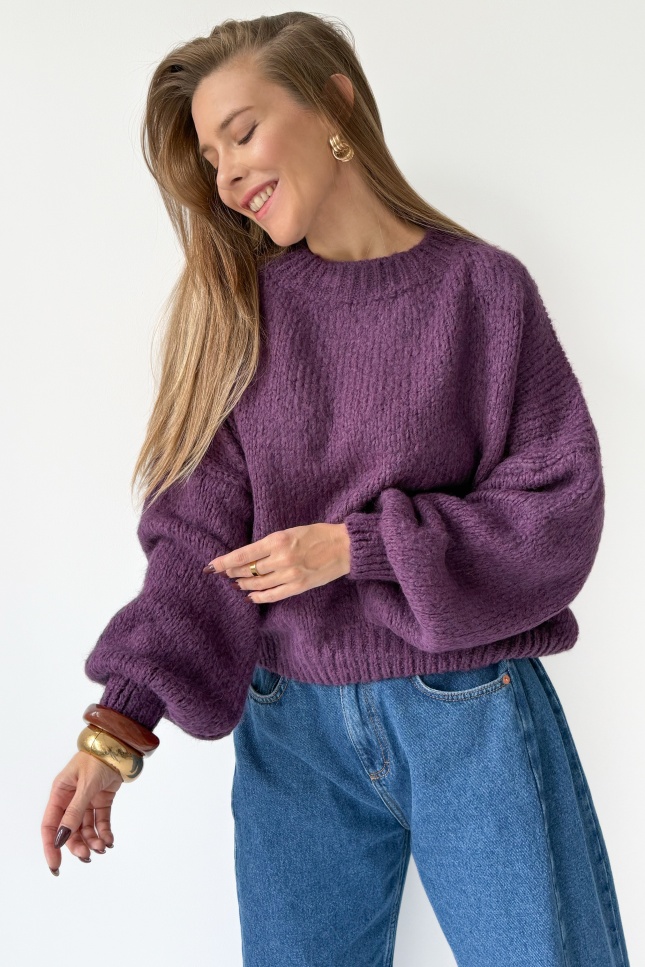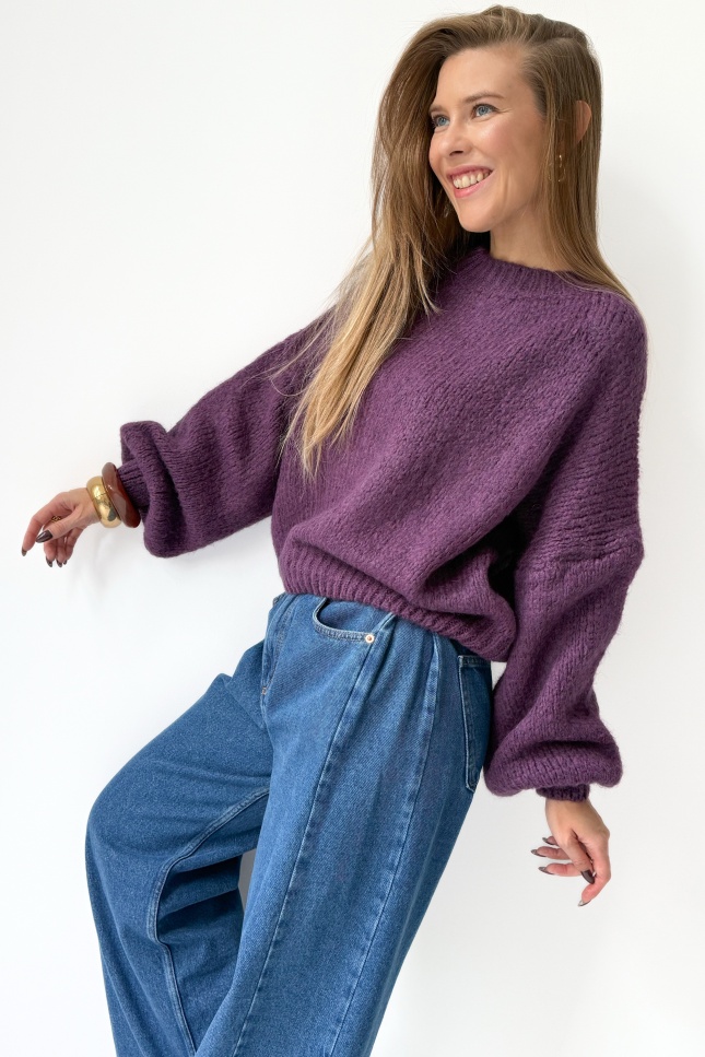 Mięciutki sweter z bufiastymi rękawami Fluffy śliwka