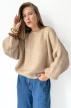 „Fluffy” to klasyczny sweter o kobiecym charakterze, który zachwyca puszystą fakturą i delikatnie bufiastymi rękawami. Wykonany z miękkiej, mięsistej przędzy z domieszką wełny i moheru – otula ciepłem, zapewniając wyjątkowy komfort noszenia. Subtelne ściągacze podkreślają fason, a jego ponadczasowy styl sprawia, że doskonale komponuje się z jeansami, spódnicą czy eleganckimi spodniami.