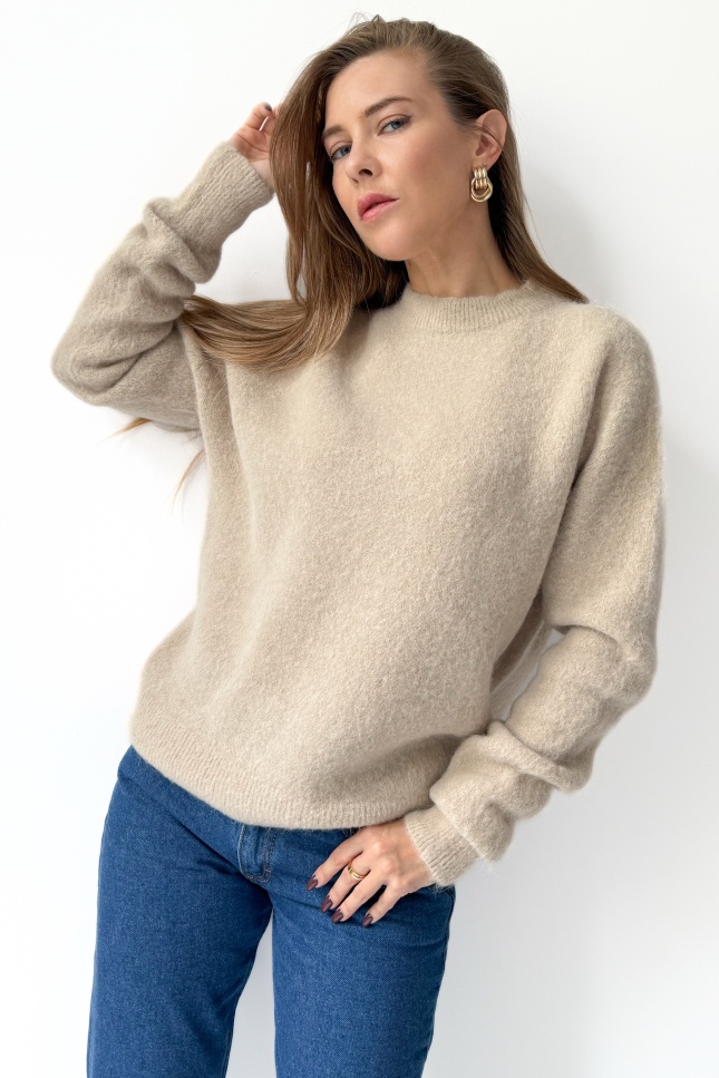 Mięciutki sweterek baby alpaka i wełna dziewicza Velvet beżowy
