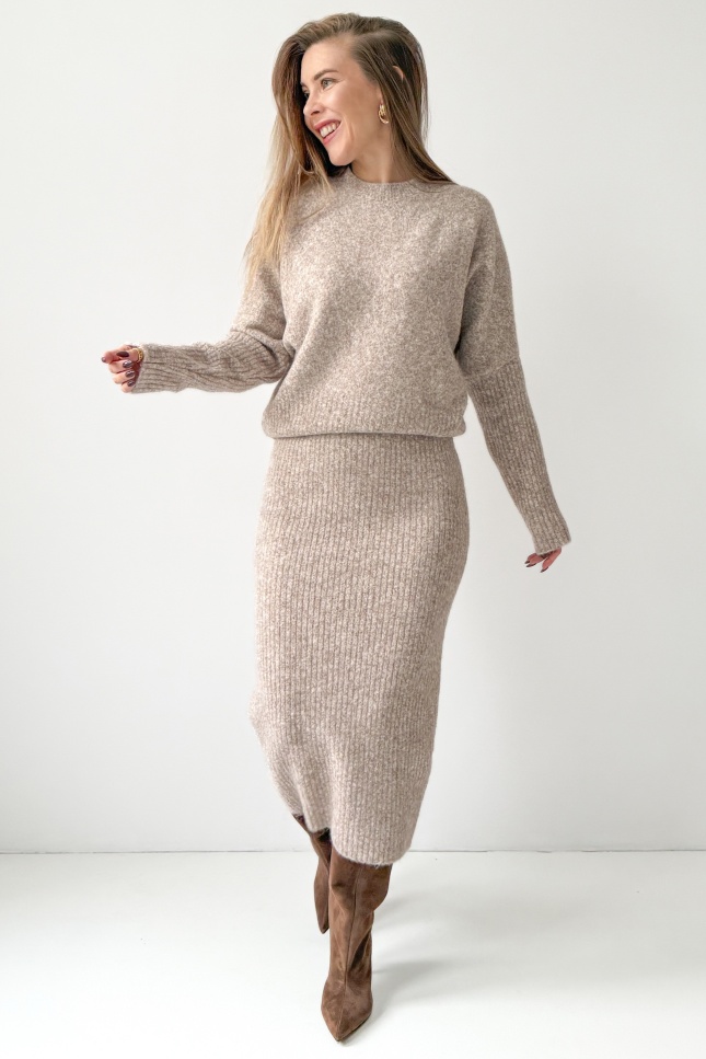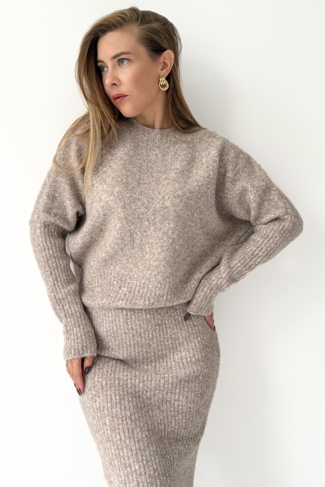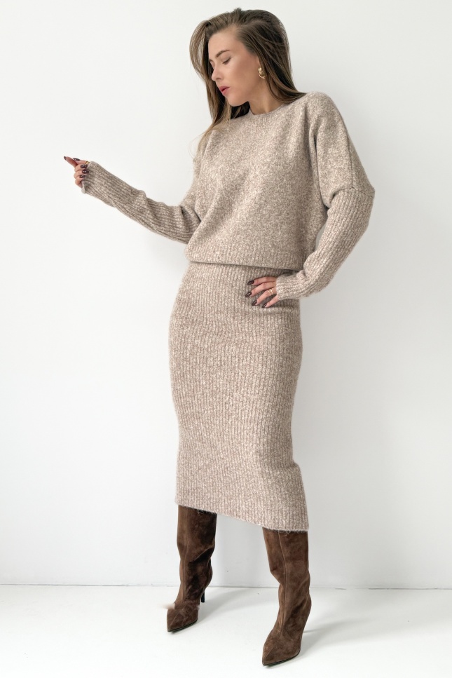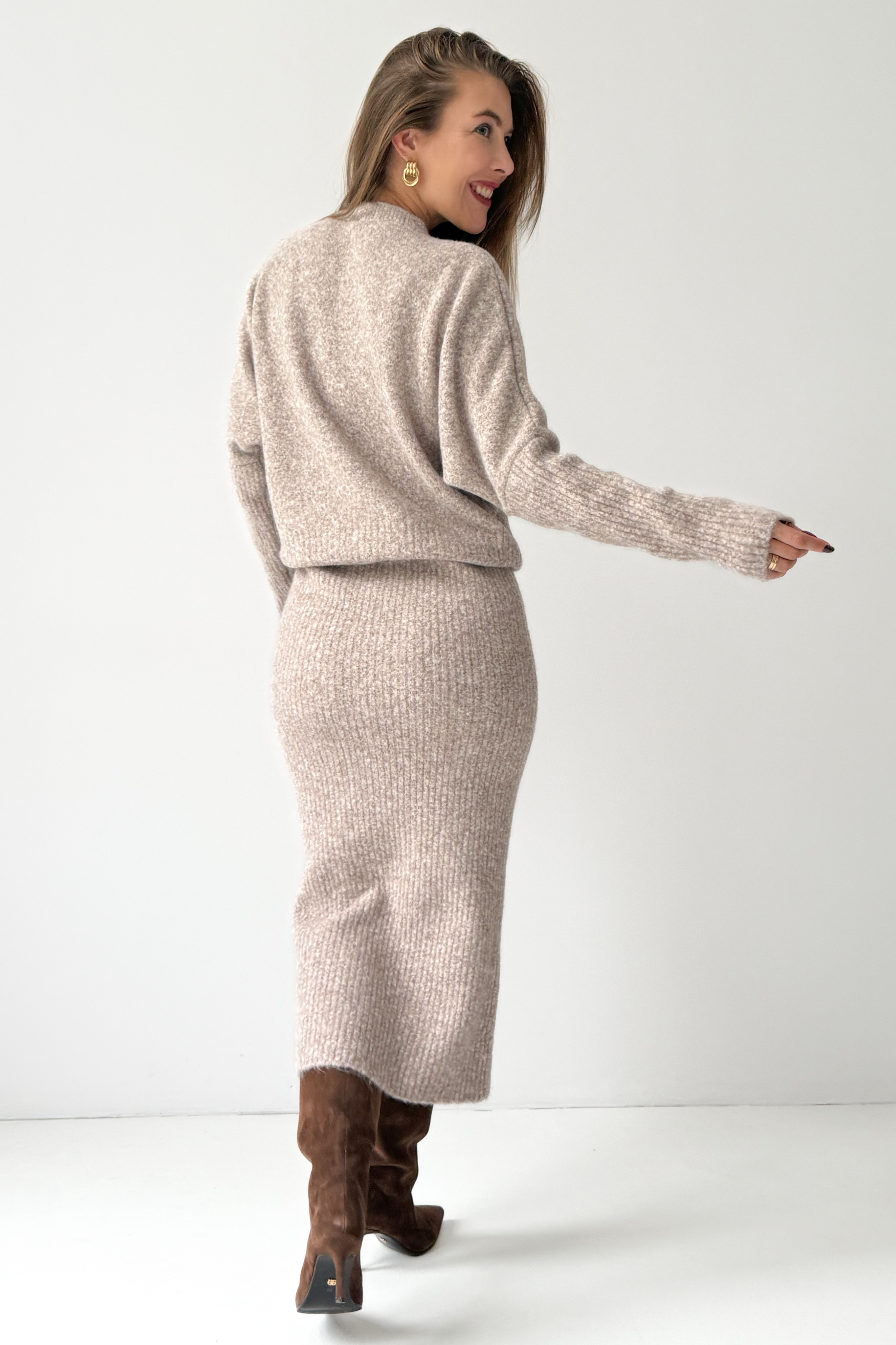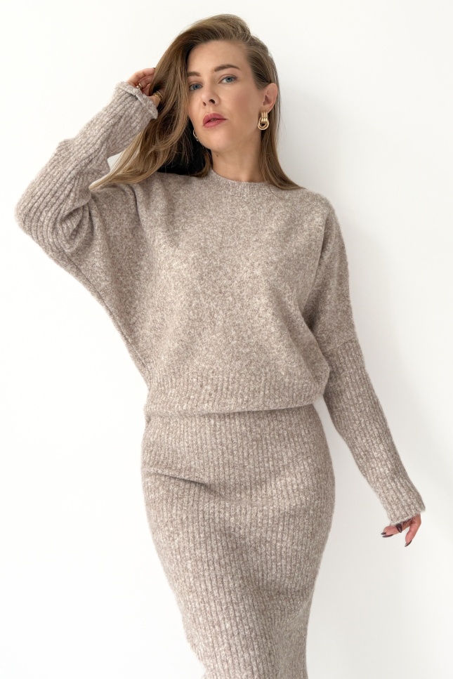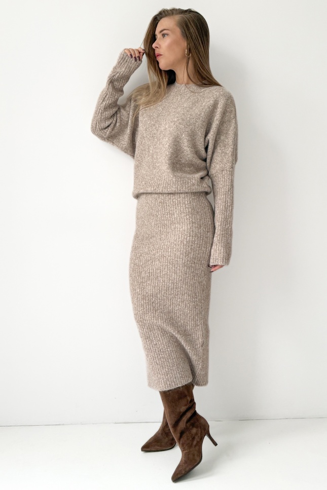 Minimalistyczna sukienka sweterkowa z baby alpaką Velisse cappuccino