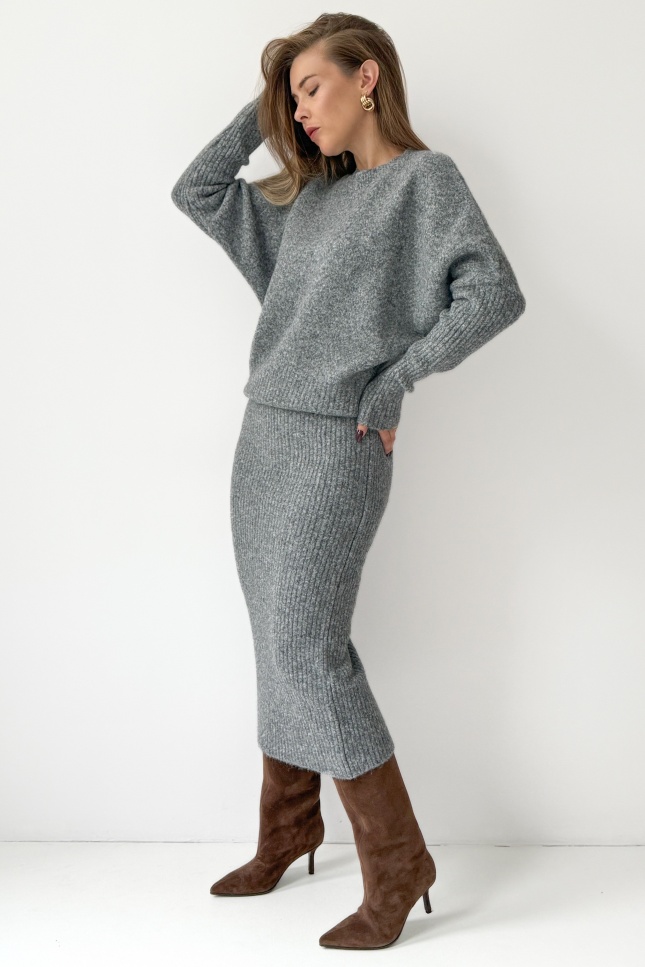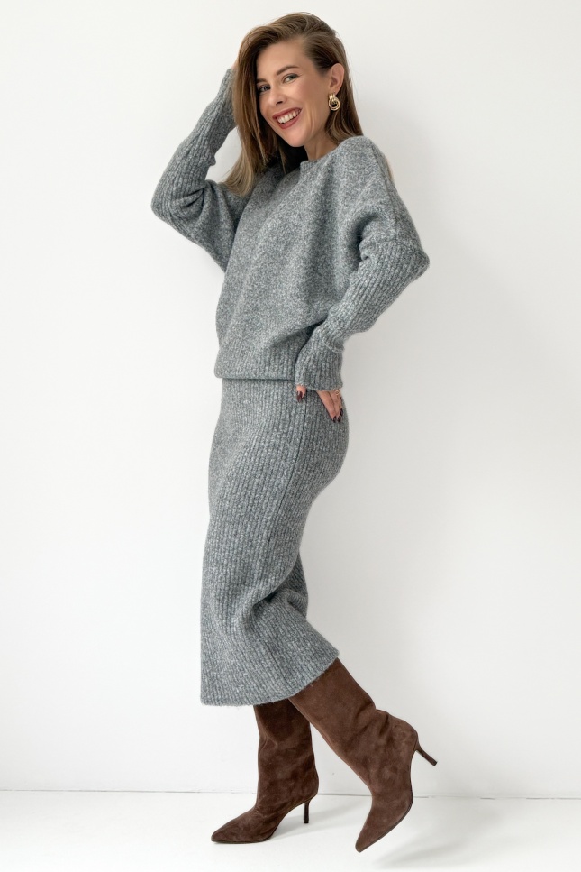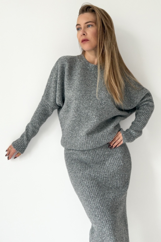 Minimalistyczna sukienka sweterkowa z baby alpaką Velisse szara