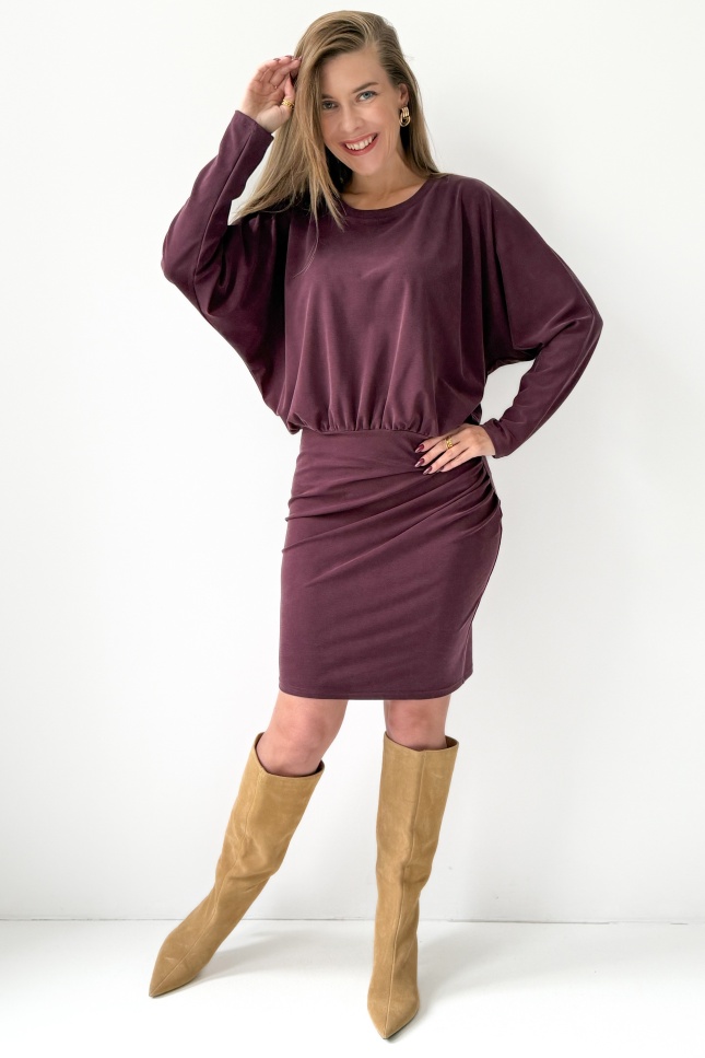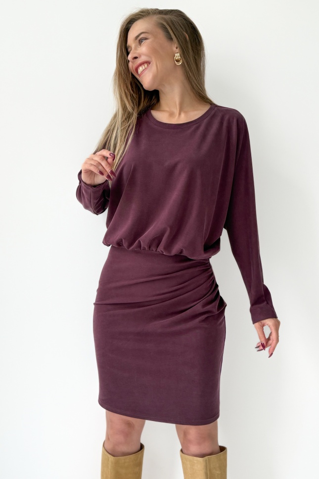 Minimalistyczna sukienka z luźną górą Essenza burgund