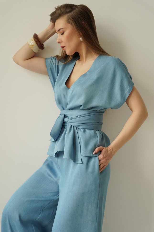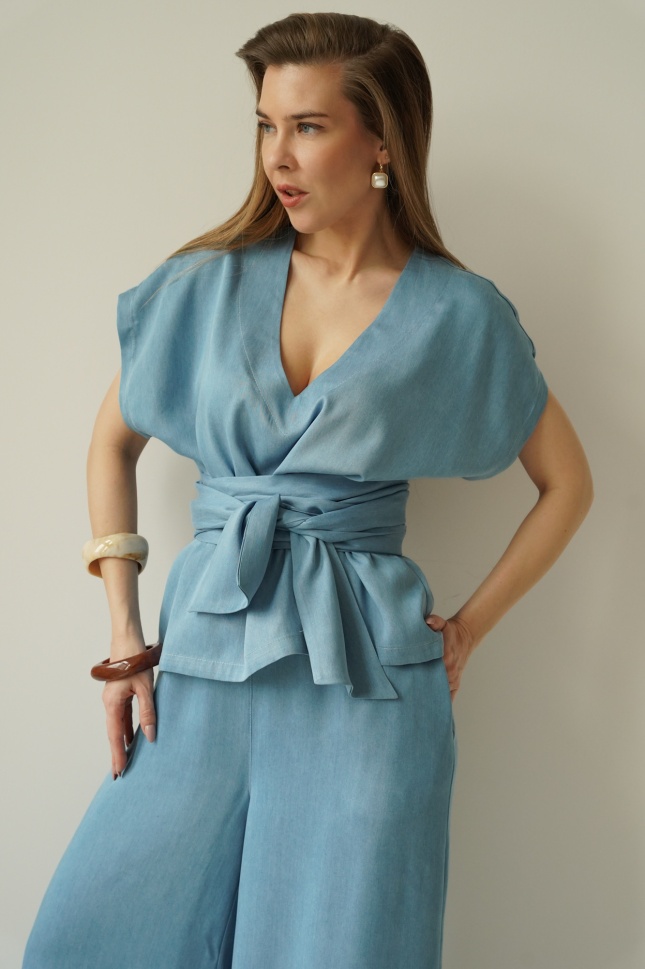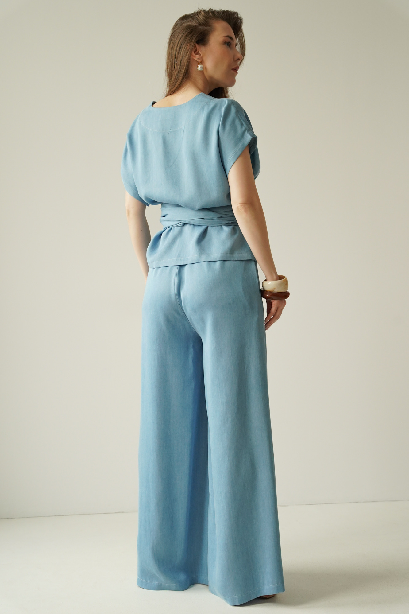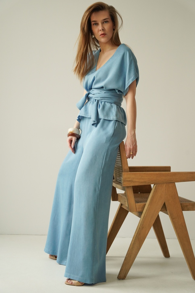 Minimalistyczny komplet z 100% jeansowego tencelu Sonia light denim blue