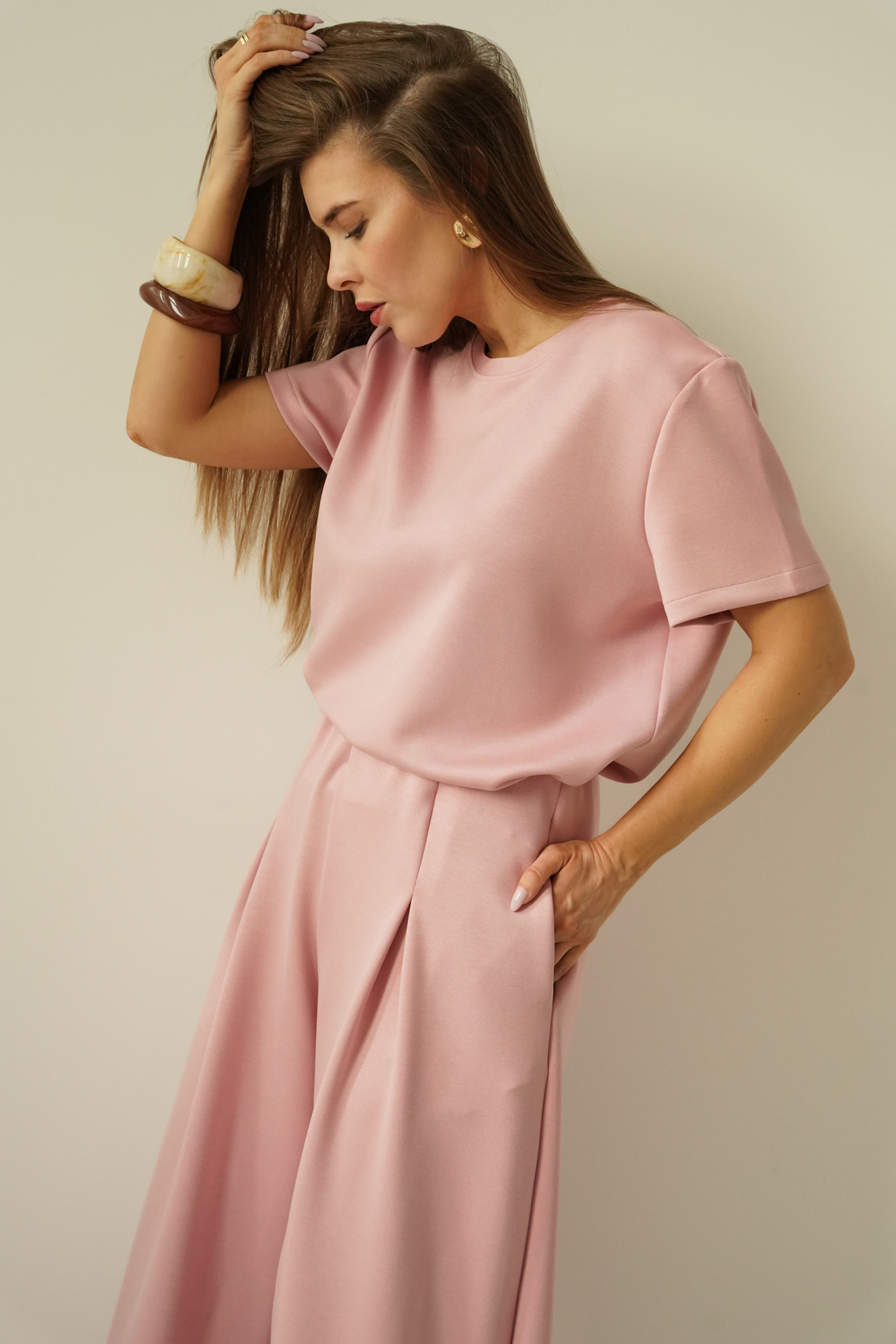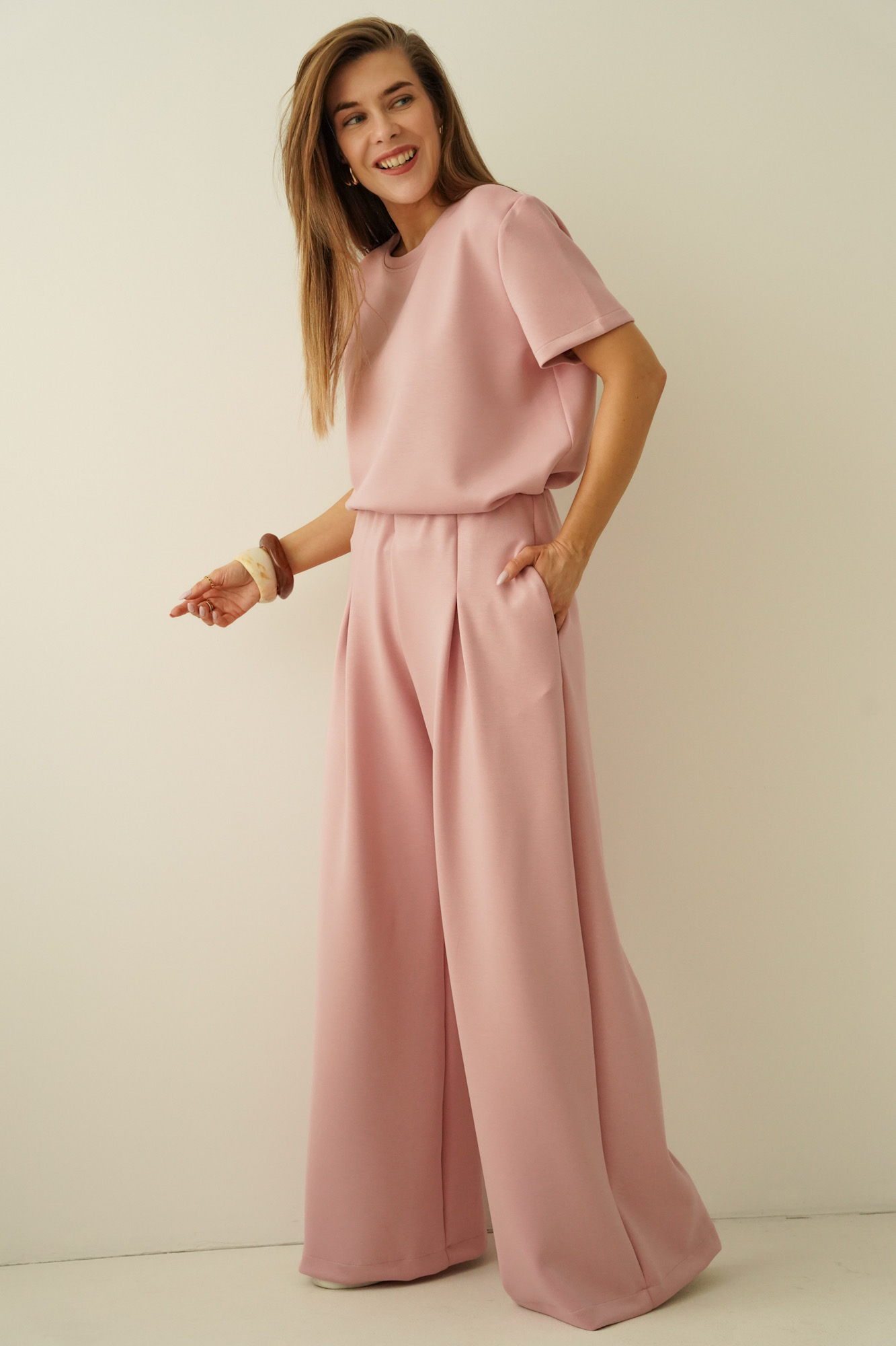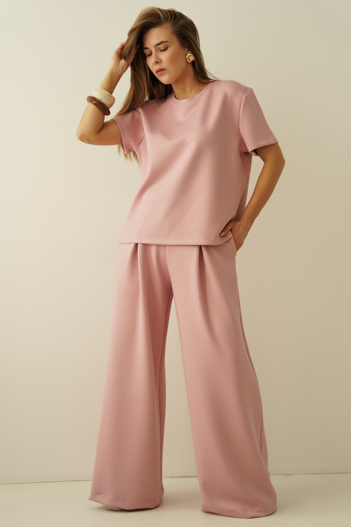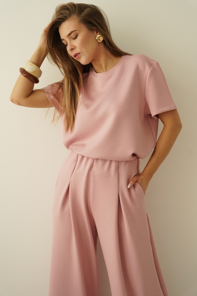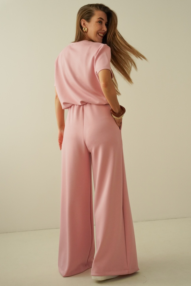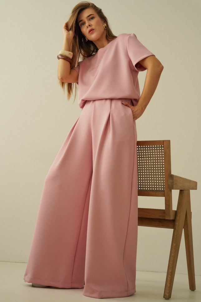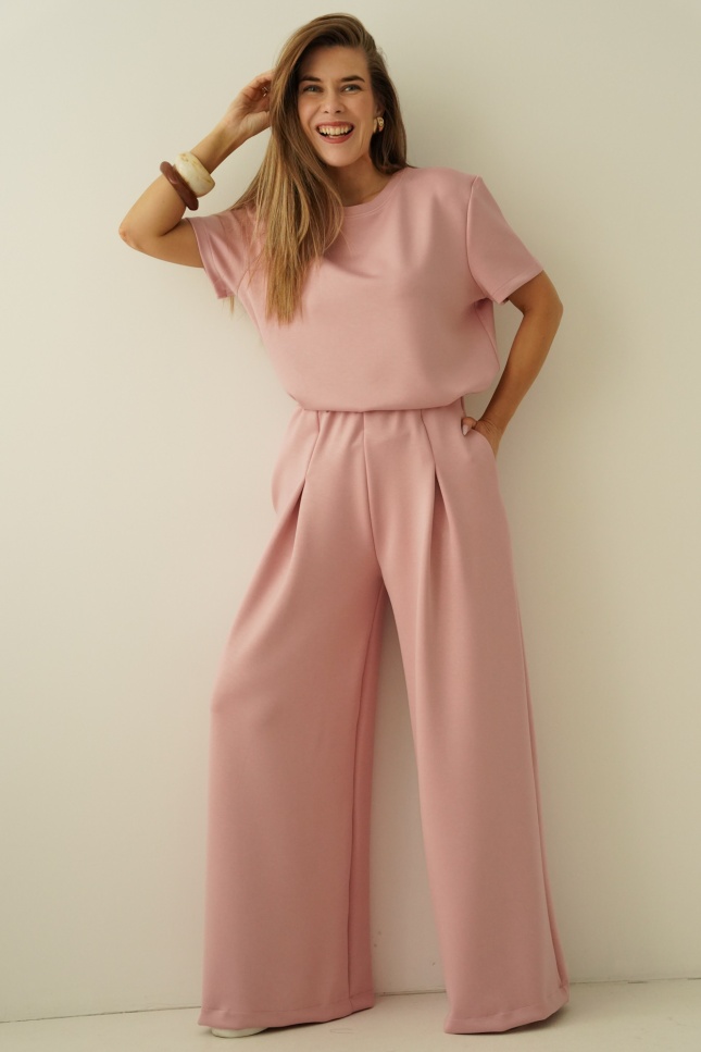 Minimalistyczny komplet z szerokimi spodniami Nuvia antic rose