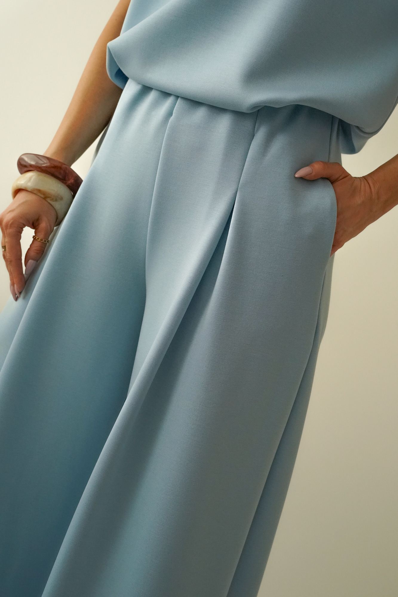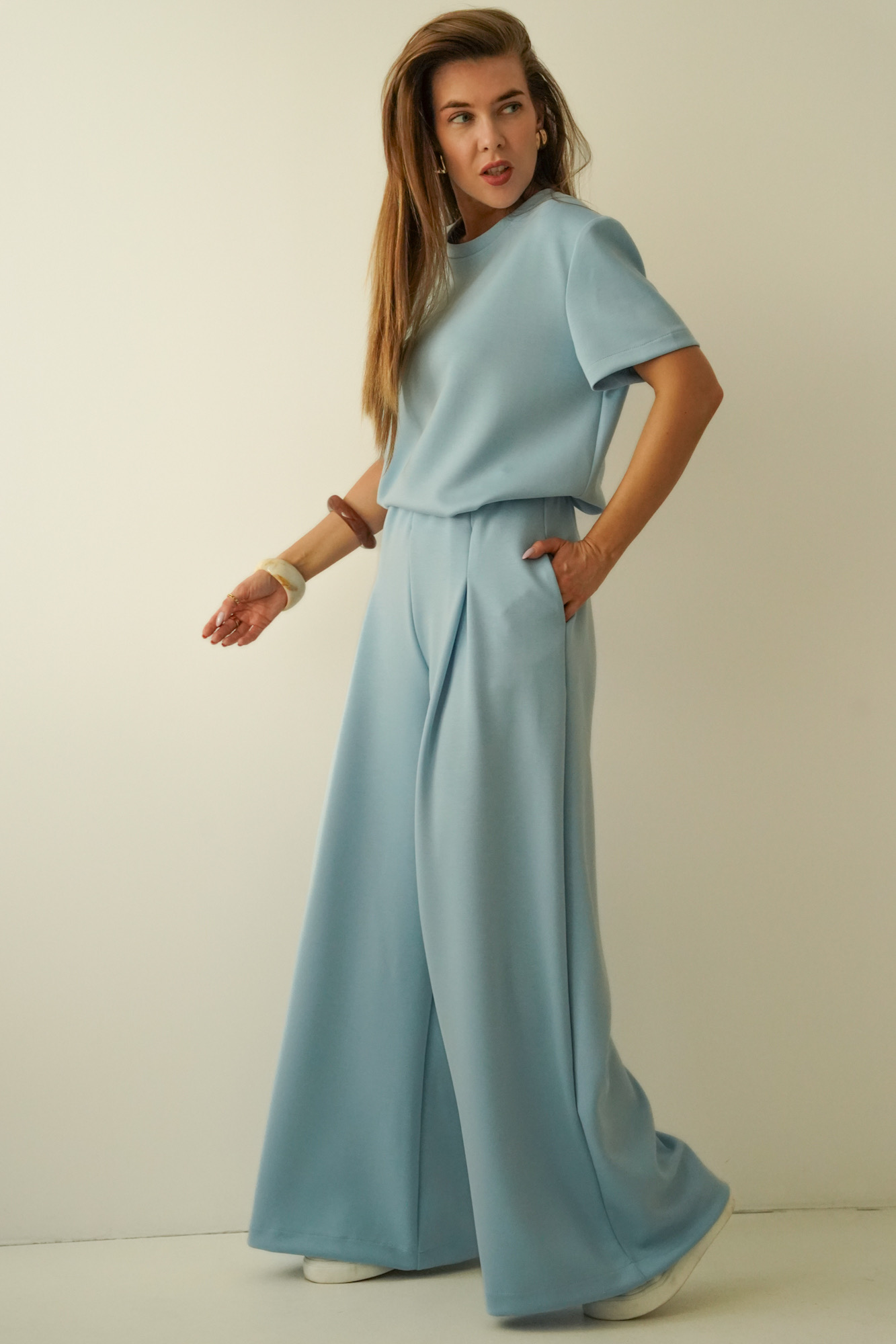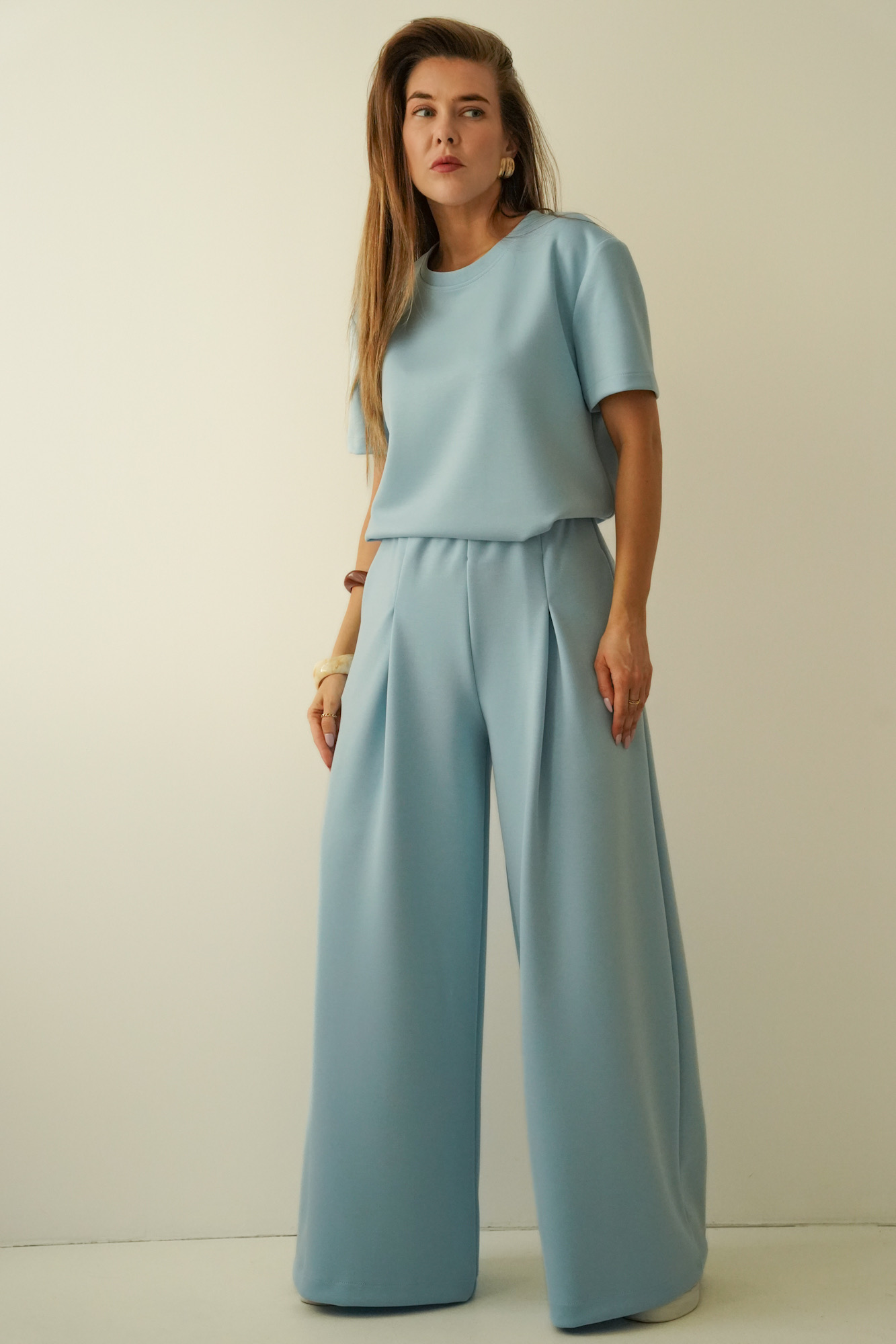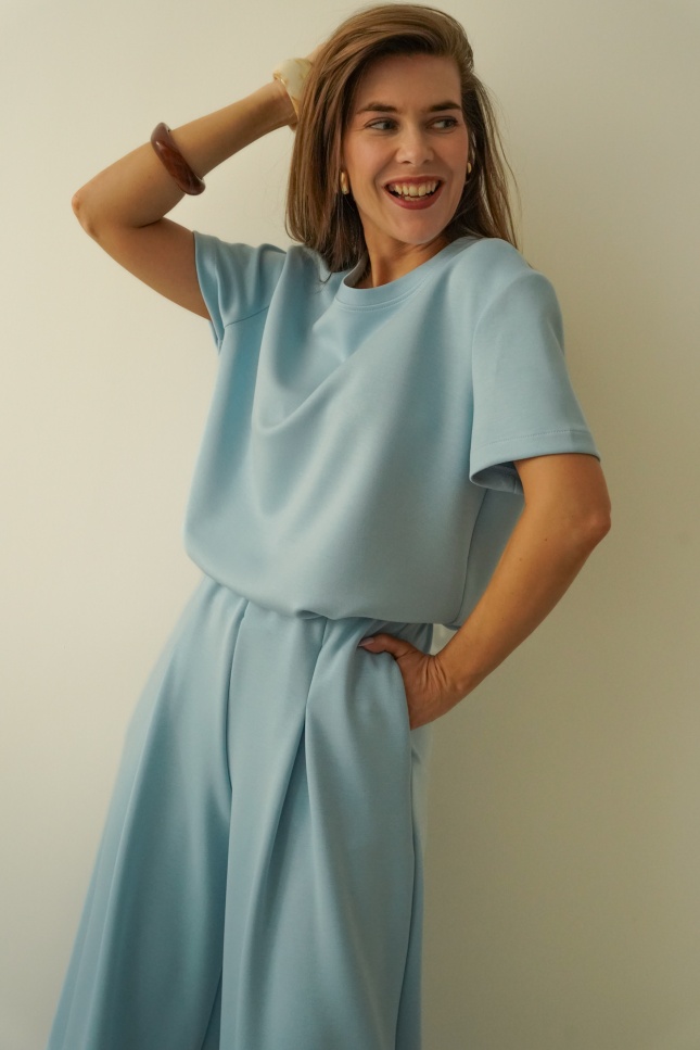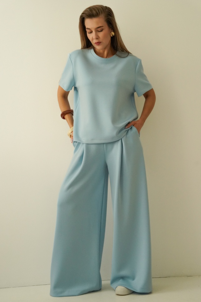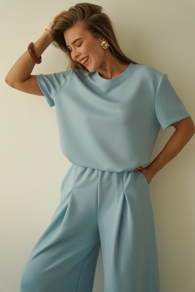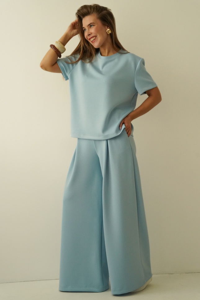 Minimalistyczny komplet z szerokimi spodniami Nuvia icy blue
