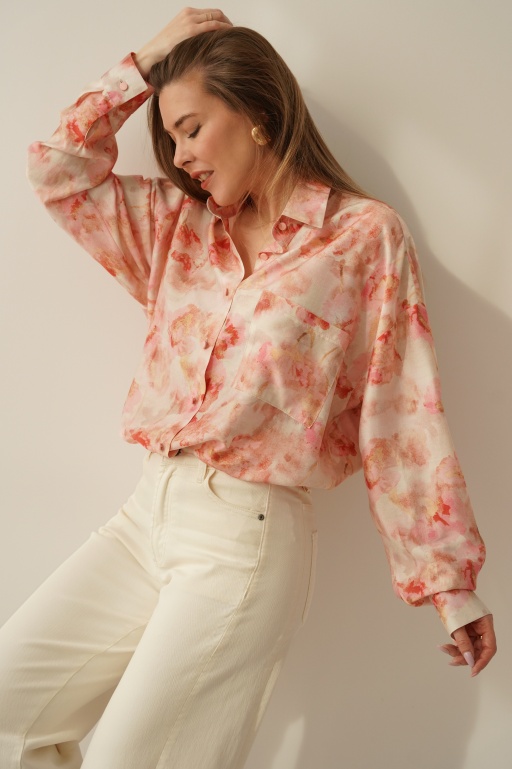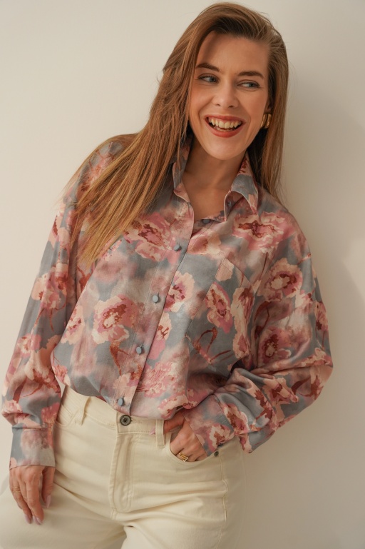 Elegancka koszula w kwiatowy wzór z dodatkiem jedwabiu Florais pastel garden