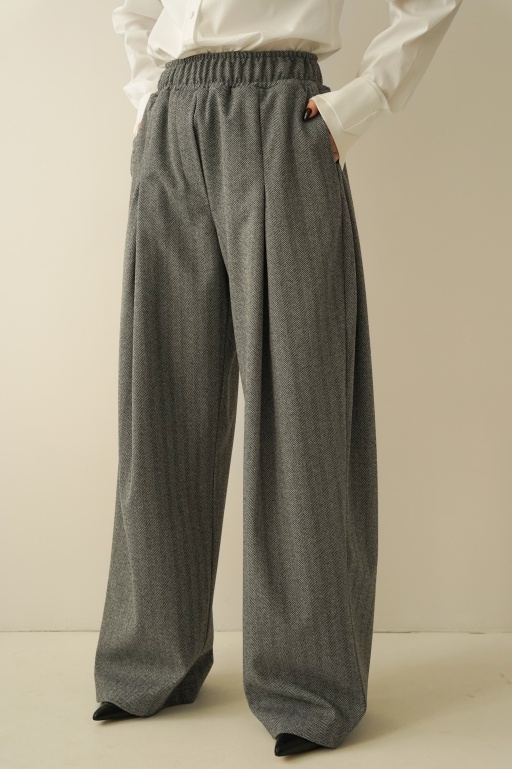 Eleganckie luźne spodnie z zakładkami Heritage jodełka cappuccino
