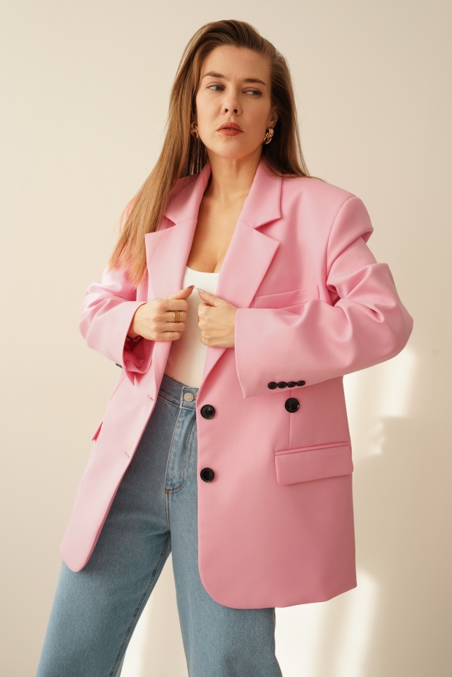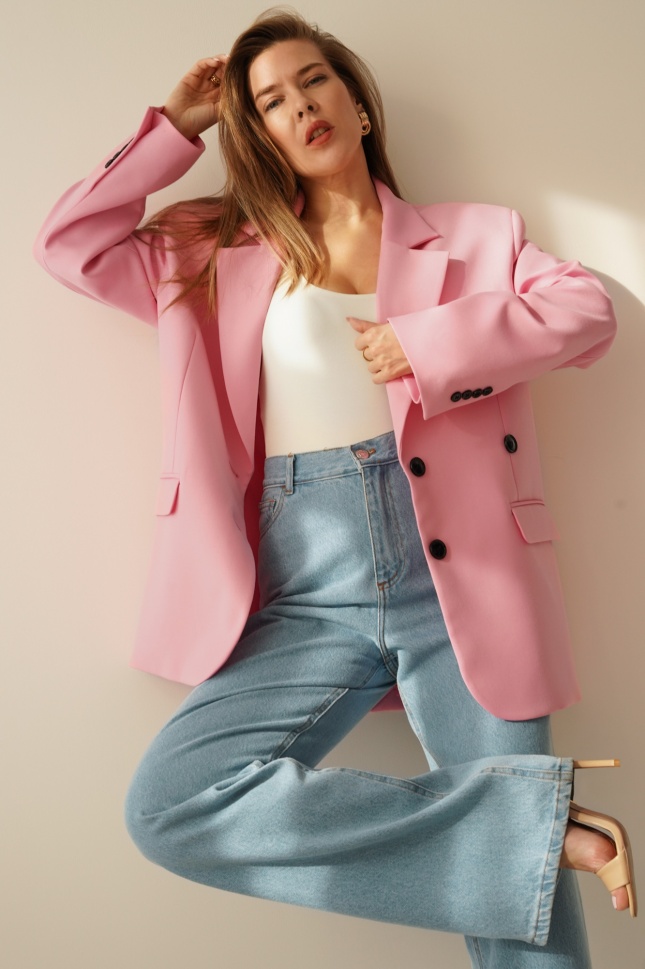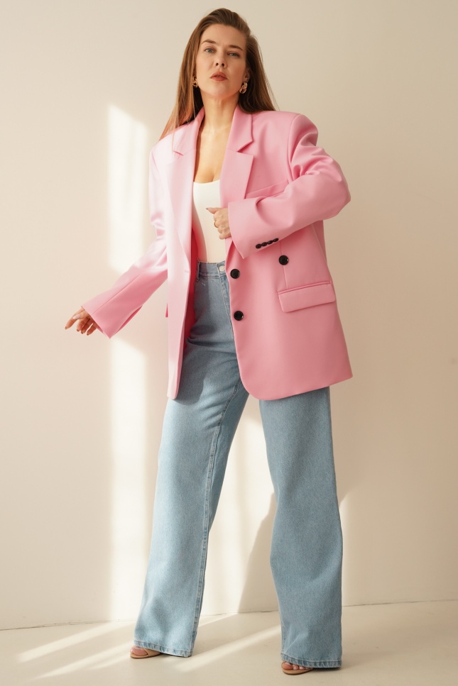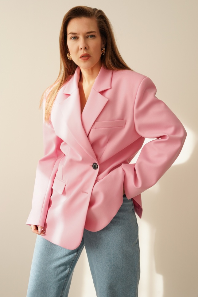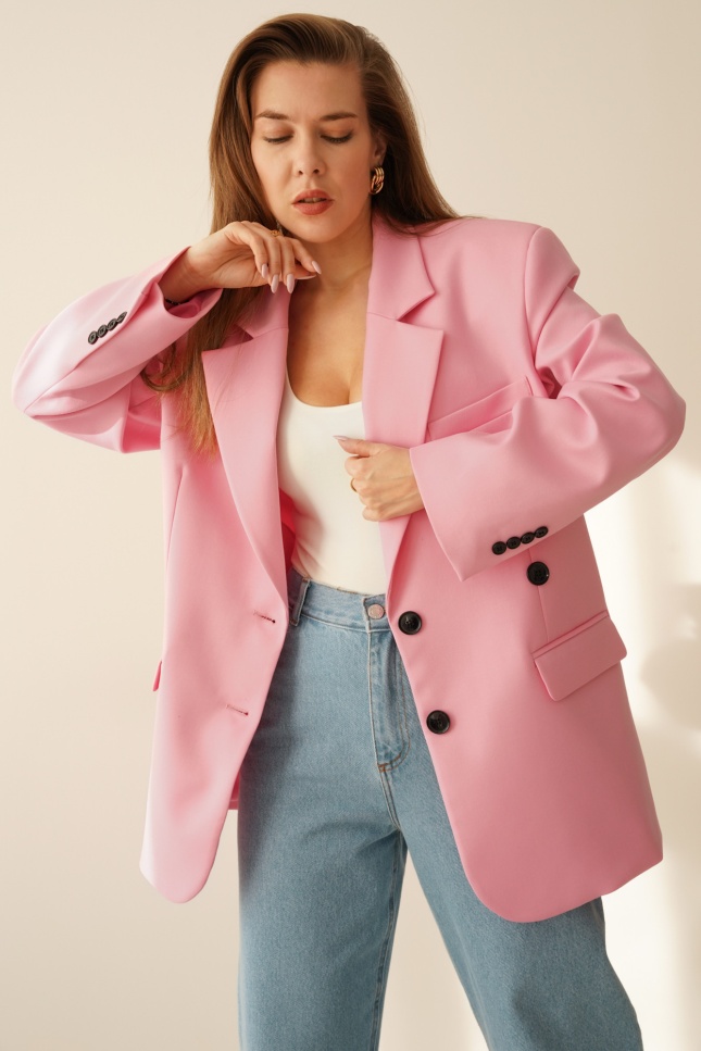 Oversizowa marynarka z taliowaniem 2w1 Modern pastelowy róż
