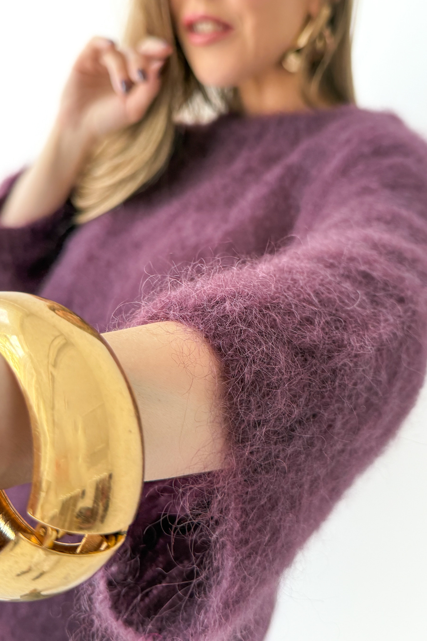 Puszysty miękki sweter kid moher Cloud touch śliwka
