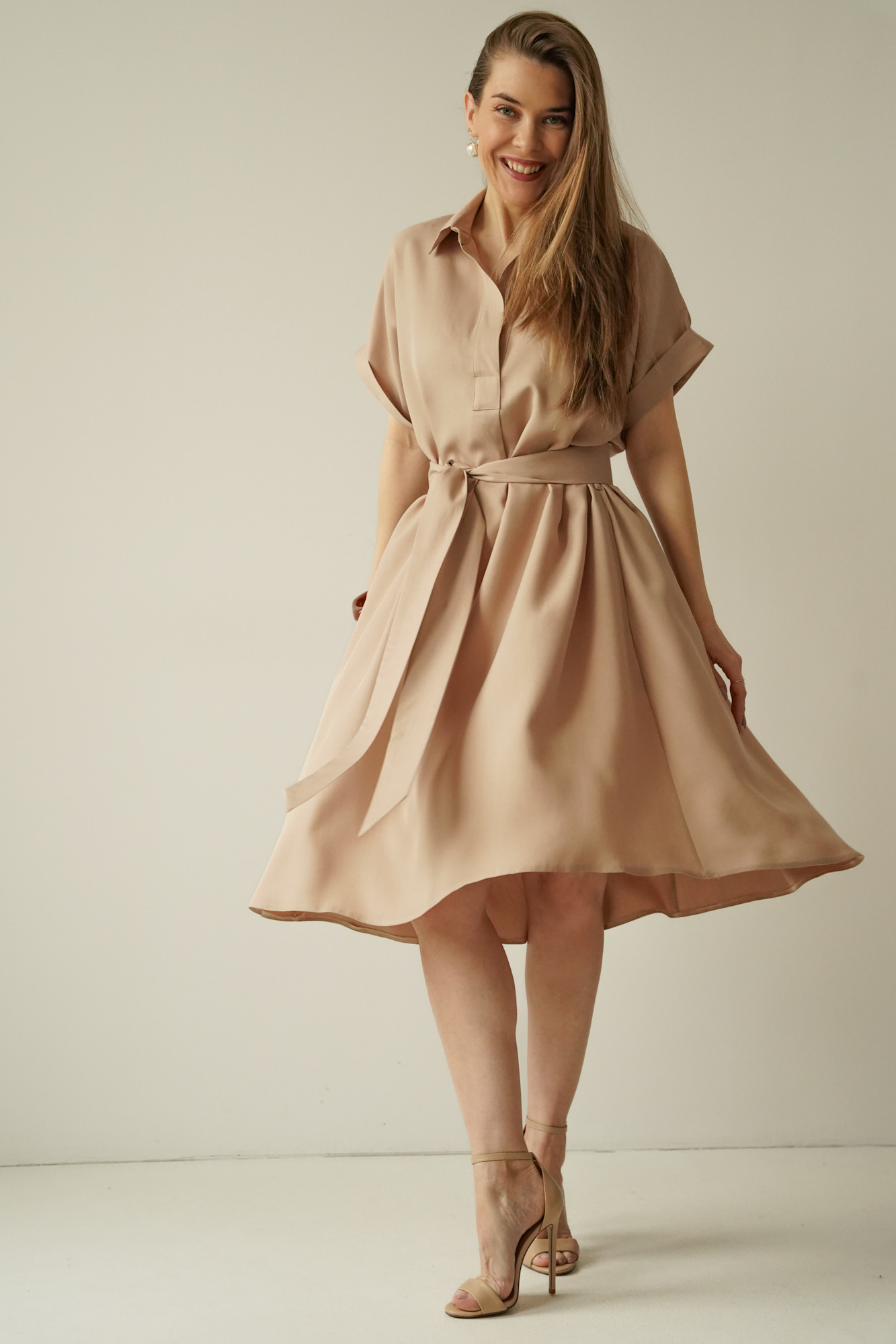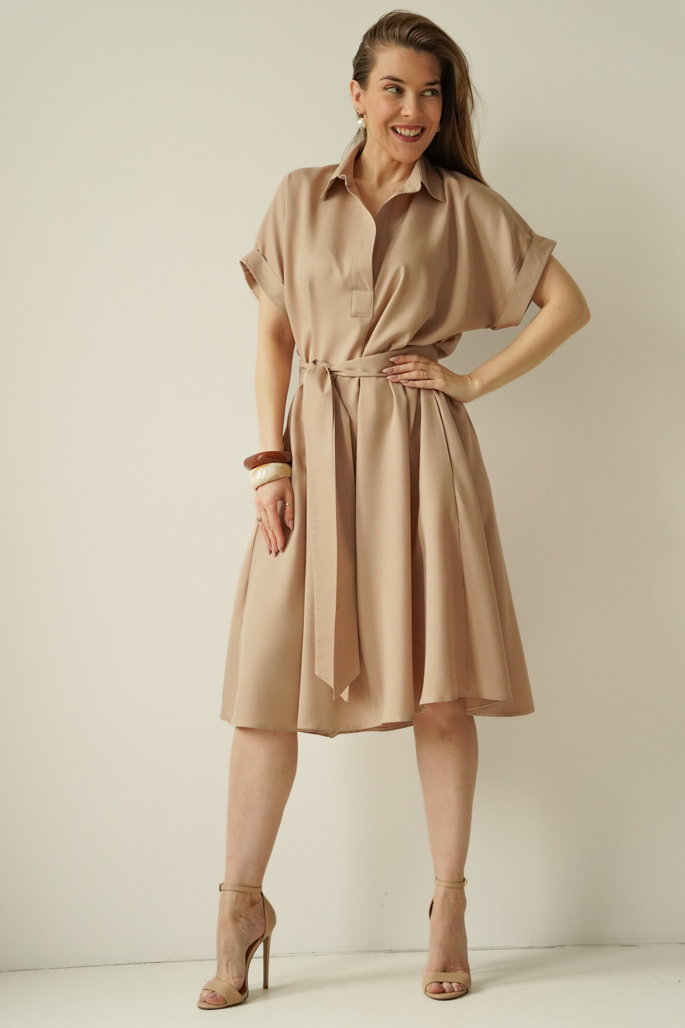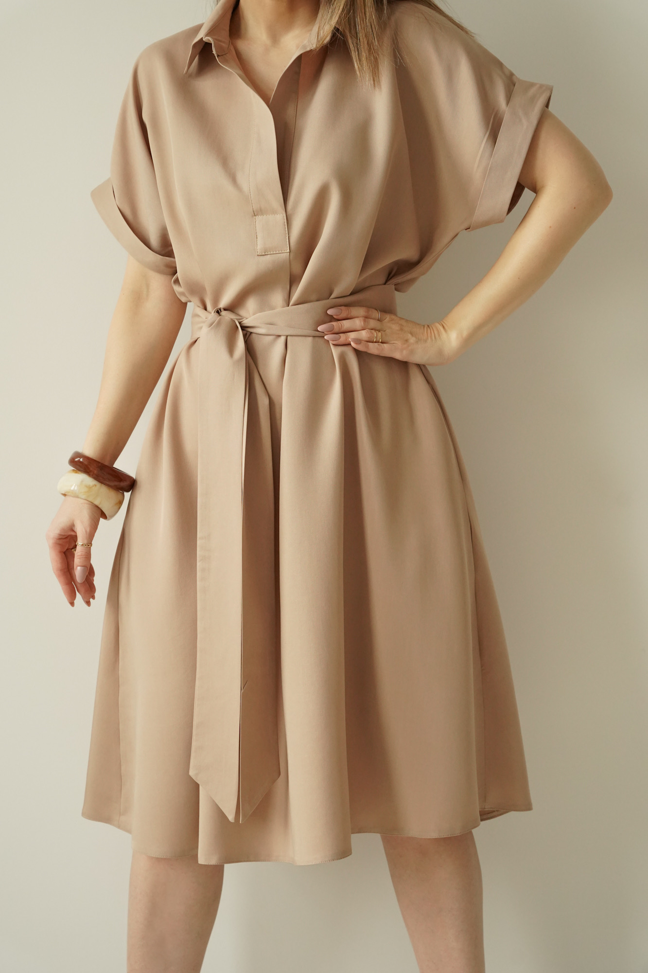 Sukienka szmizjerka z kołnierzykiem polo Elyn latte