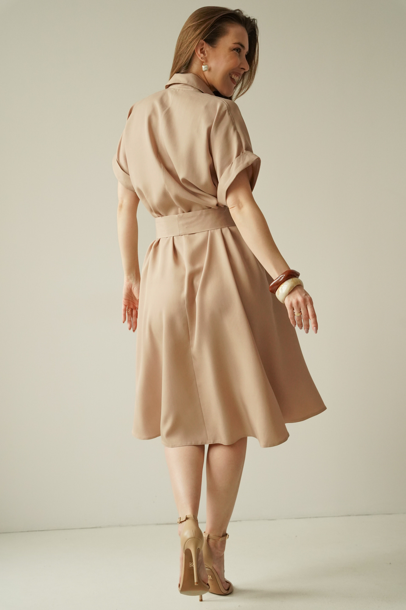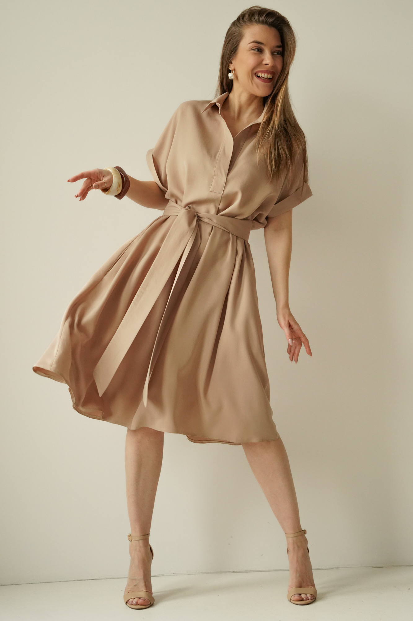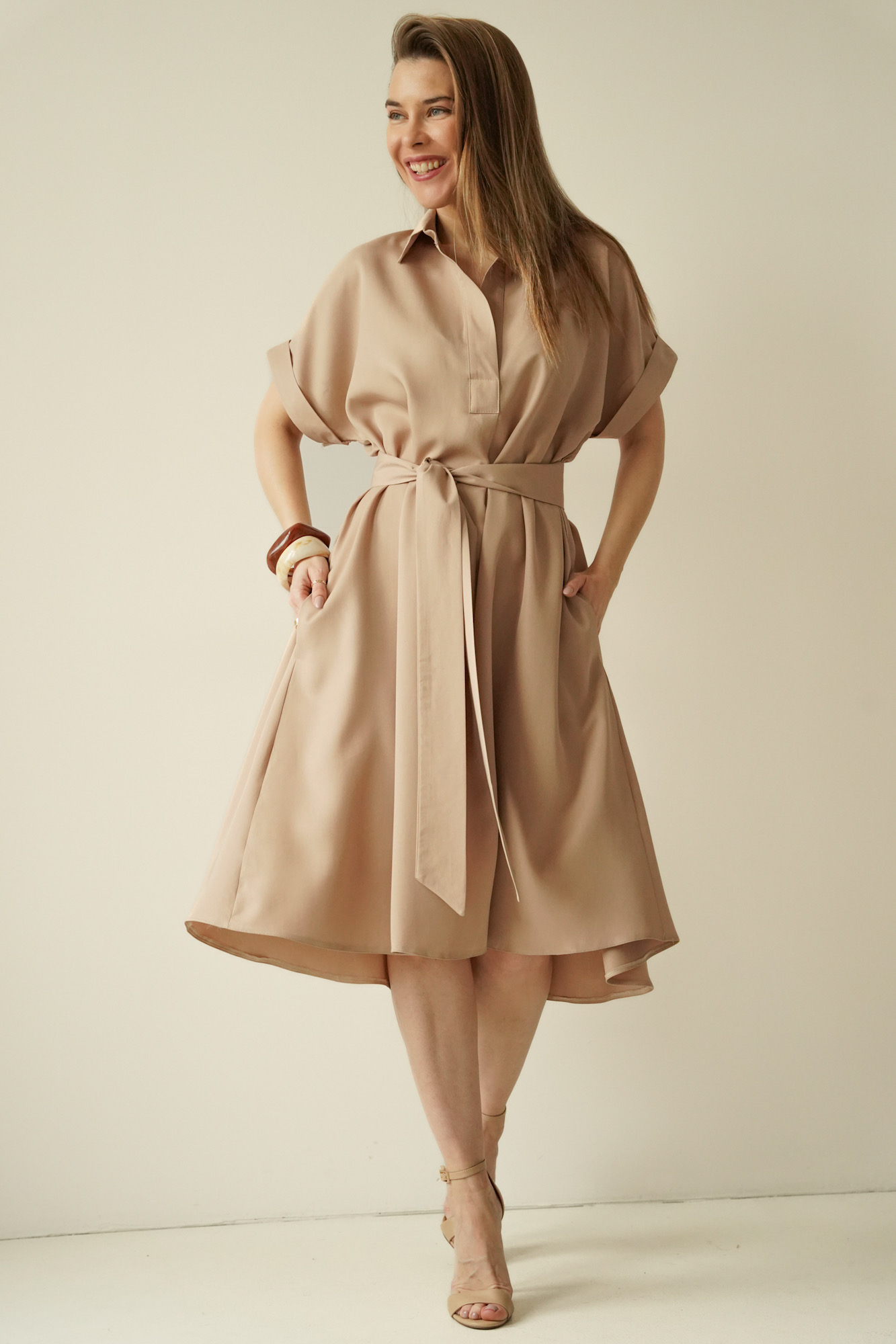 Sukienka szmizjerka z kołnierzykiem polo Elyn latte