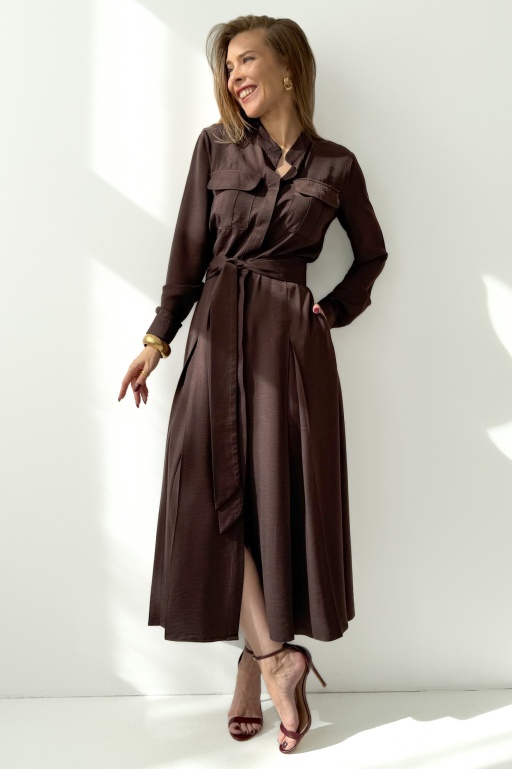Casualowa sukienka z kontrafałdami Nouvelle ciemna czekolada