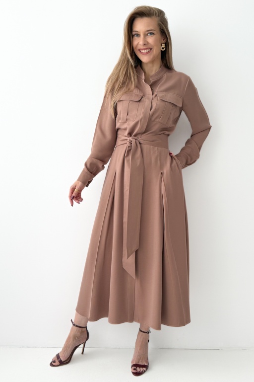 Luźna sukienka smart casual z kołnierzykiem Elana taupe