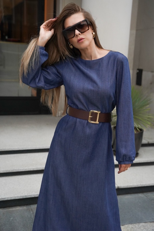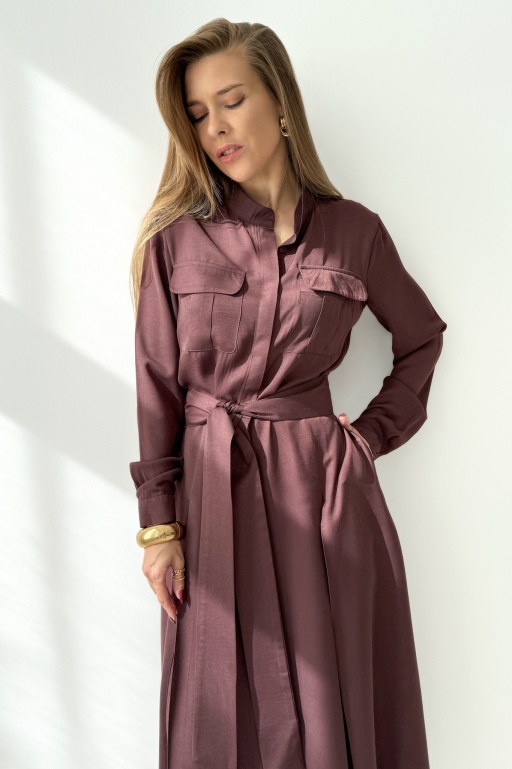Minimalistyczna sukienka z luźną górą Essenza chłodny brąz