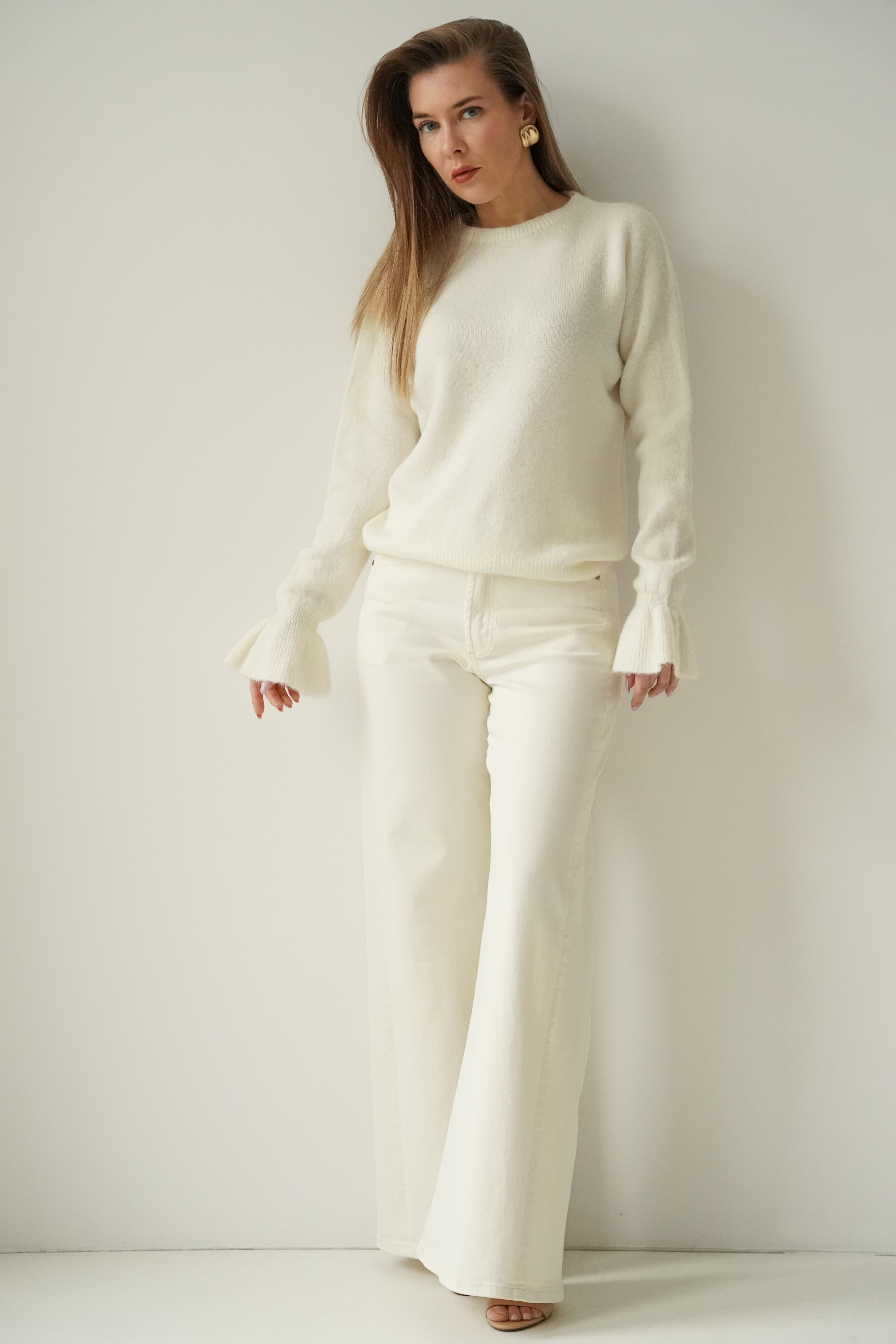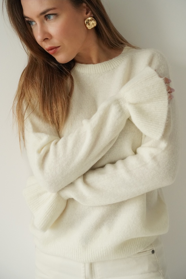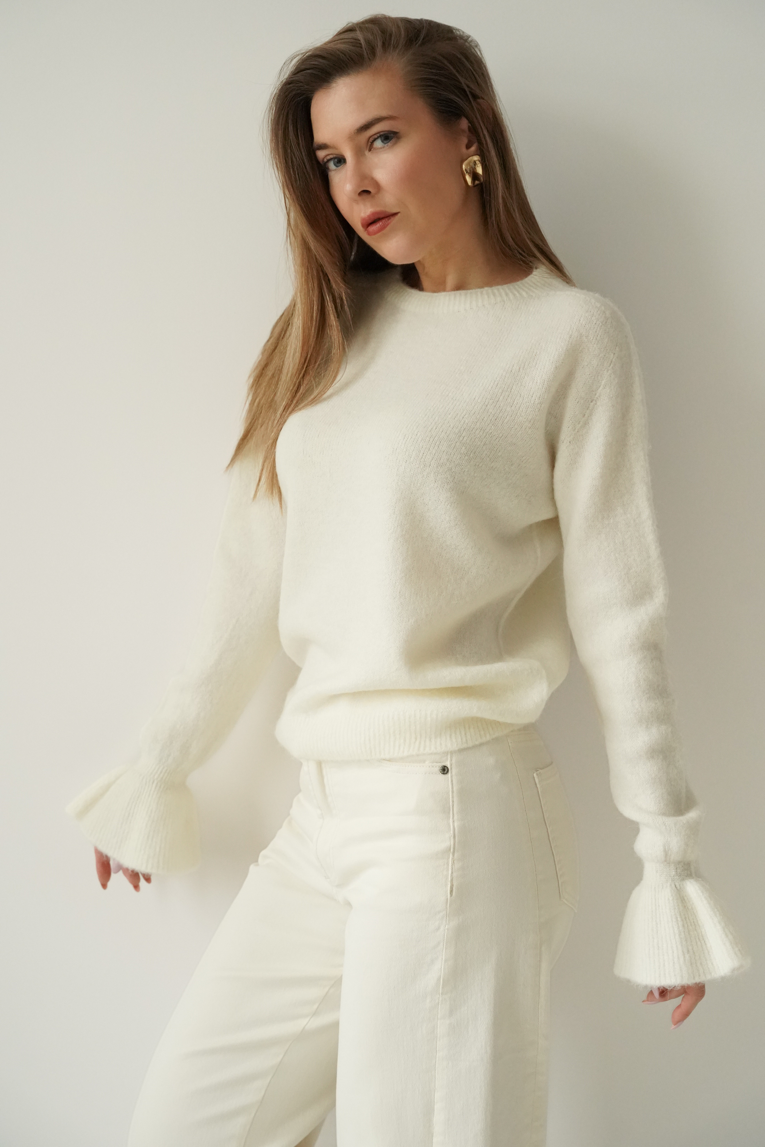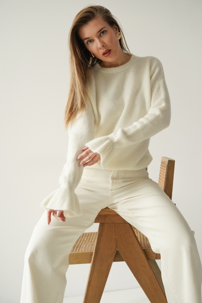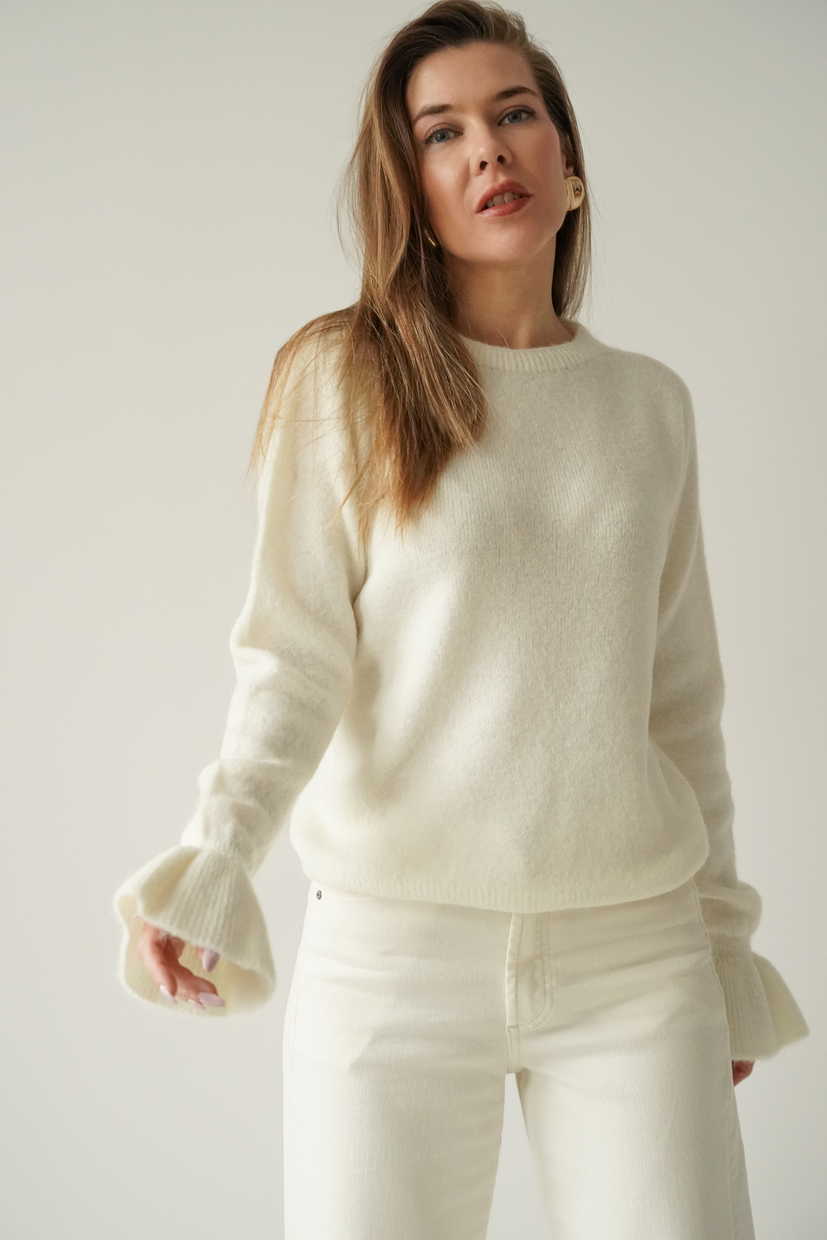 Sweter z falbankami baby alpaka i wełna dziewicza Elia cream