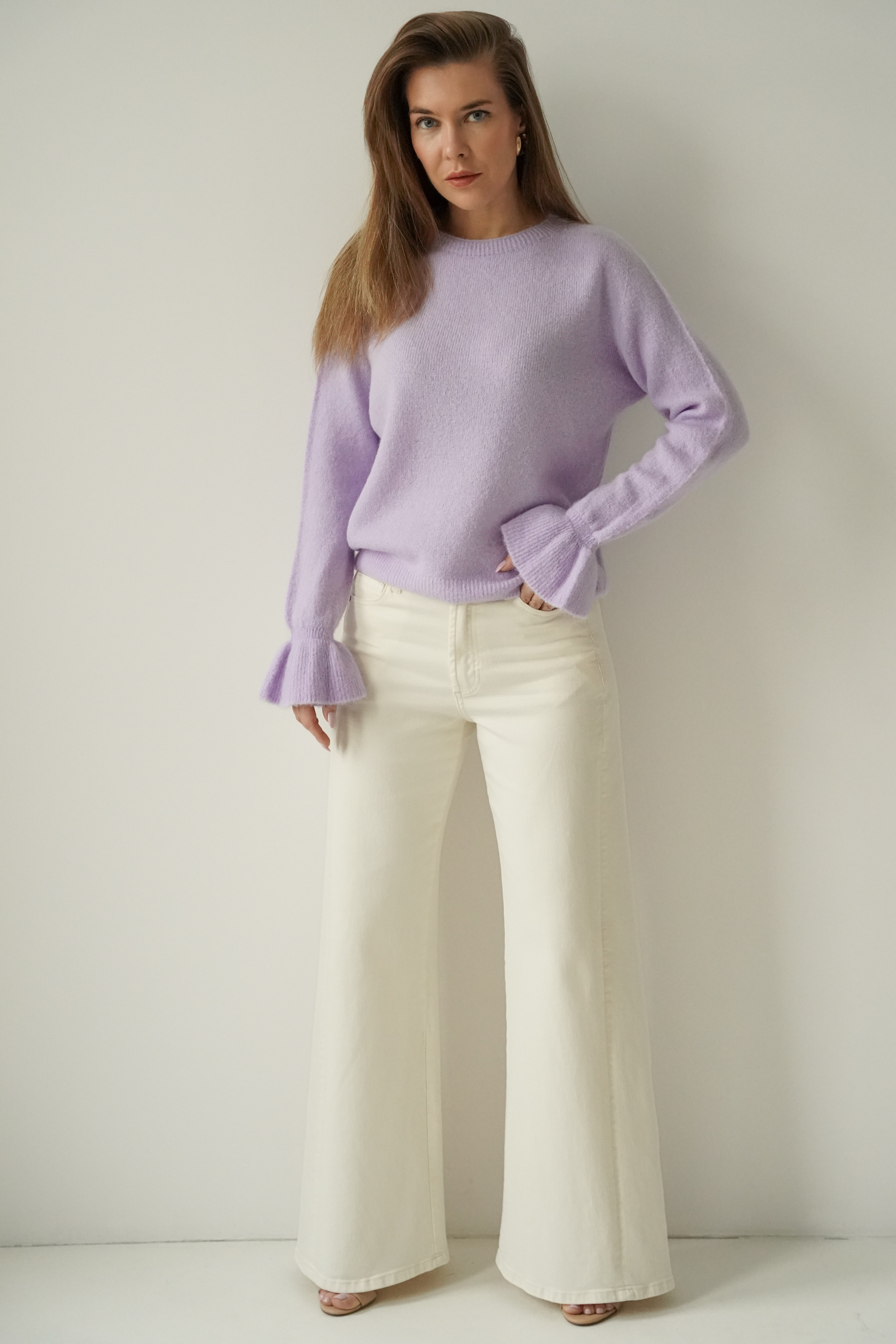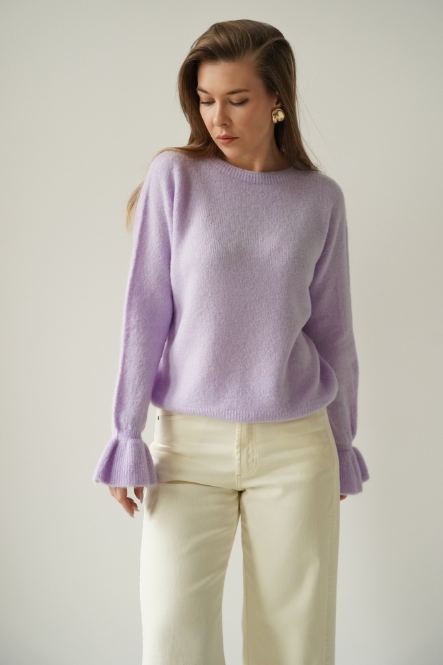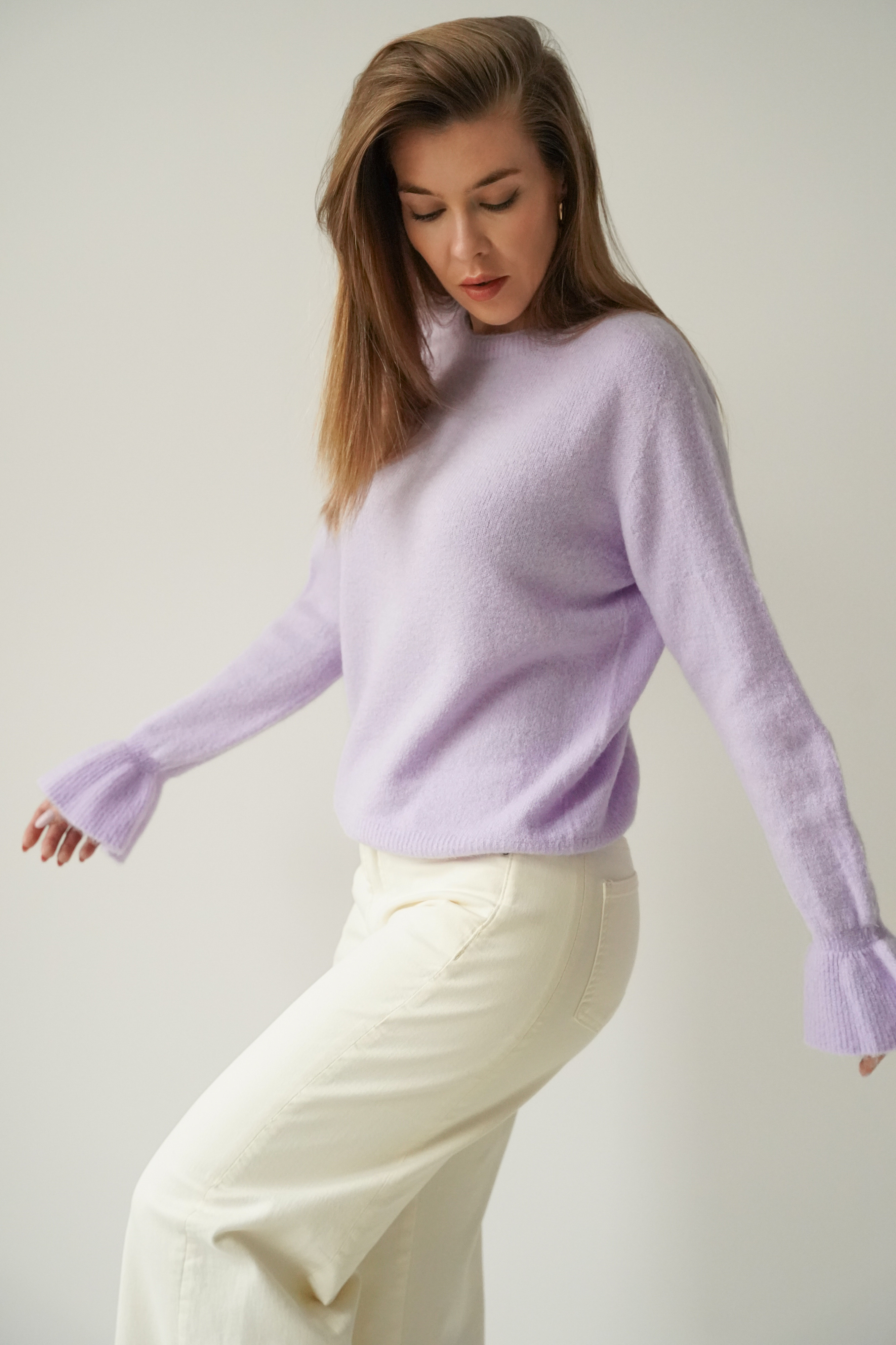Sweter z falbankami baby alpaka i wełna dziewicza Elia lila