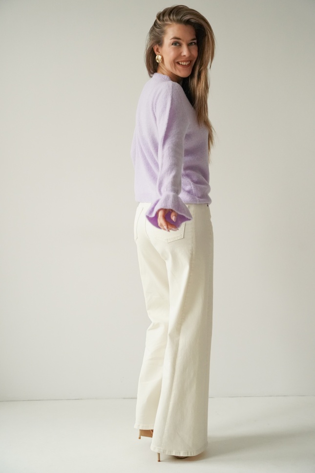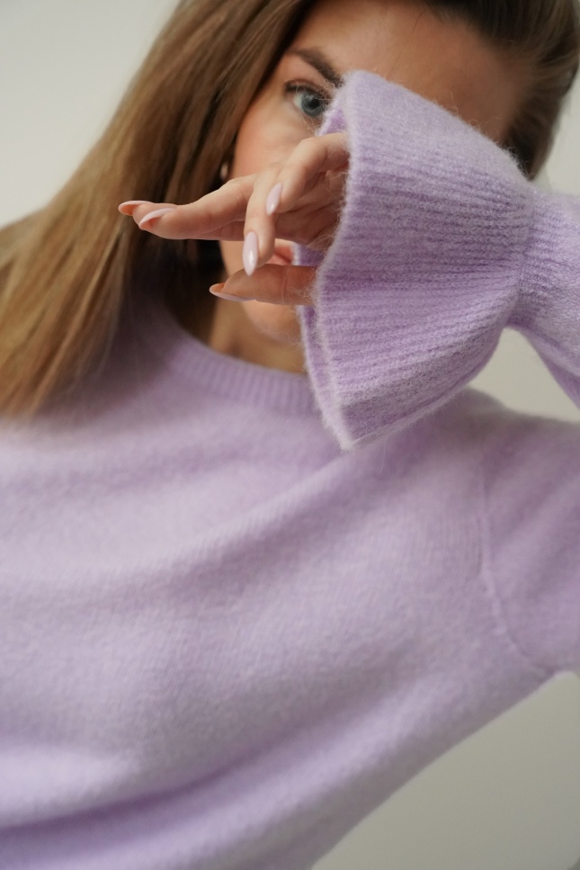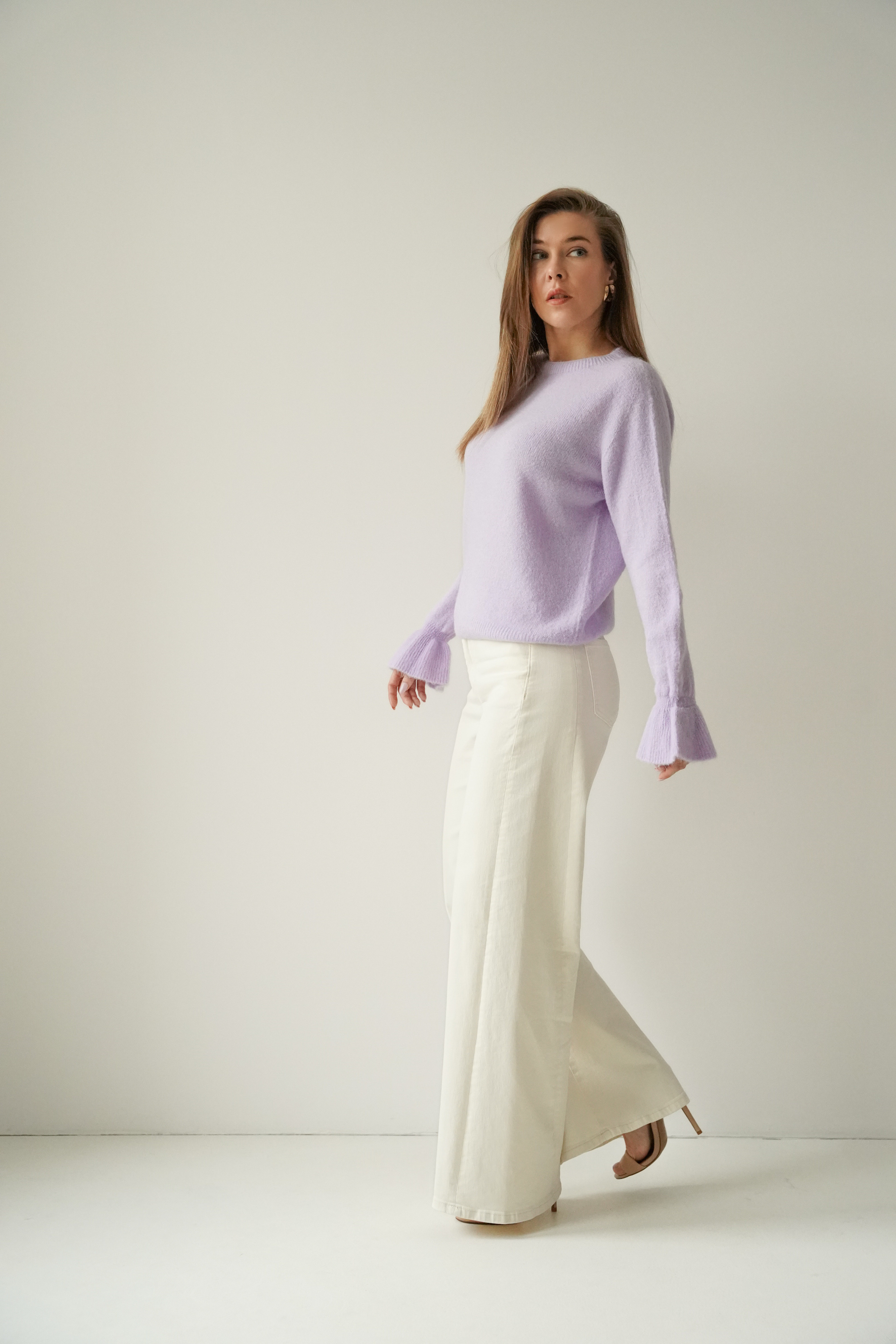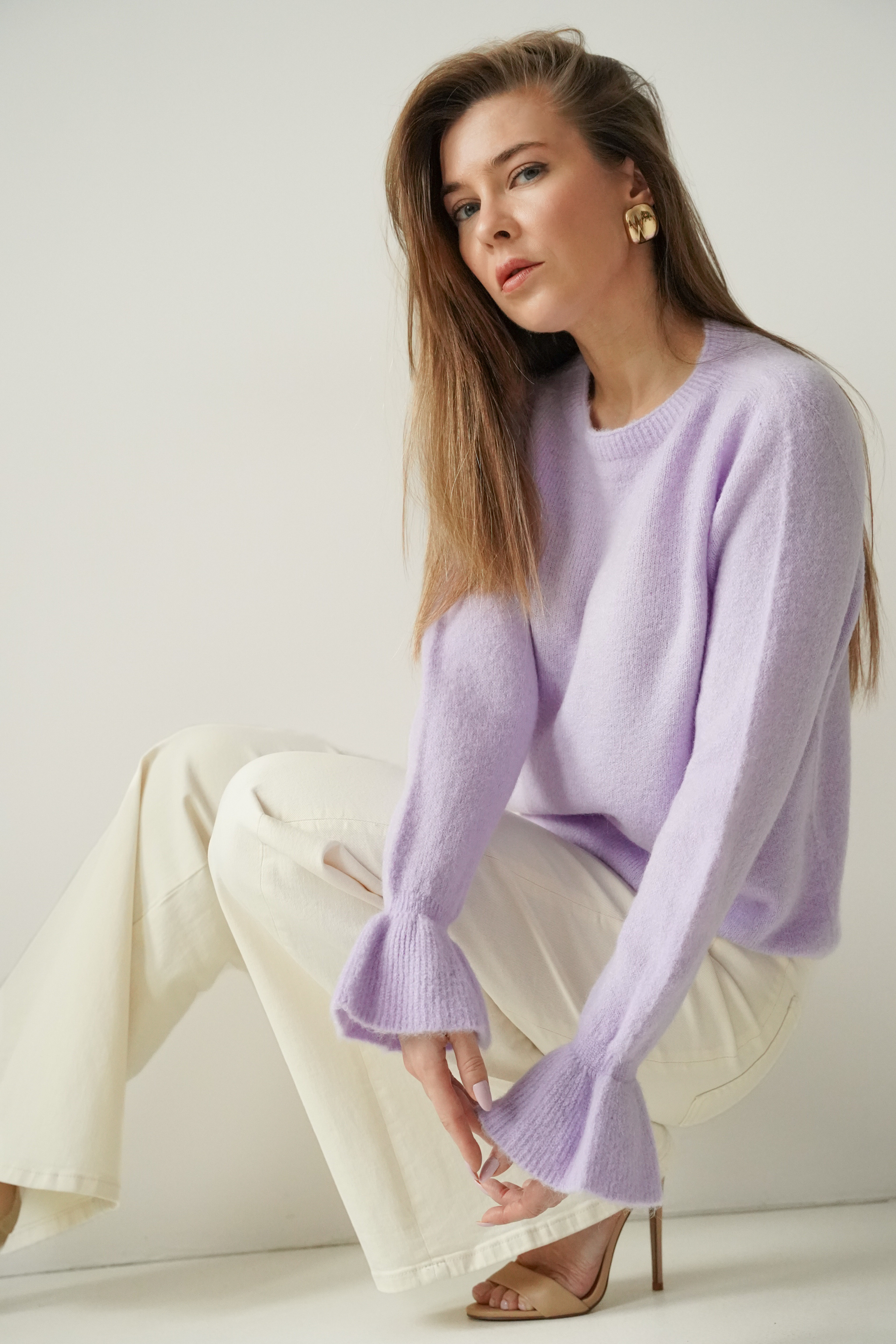 Sweter z falbankami baby alpaka i wełna dziewicza Elia lila