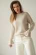 Miękki sweter z falbankami przy rękawach, wykonany z luksusowej mieszanki baby alpaki (48%) i wełny dziewiczej (28%). Lekki, ciepły i wyjątkowo przyjemny dla skóry. Kobiecy fason, który sprawdzi się zarówno w codziennych, jak i bardziej eleganckich stylizacjach.