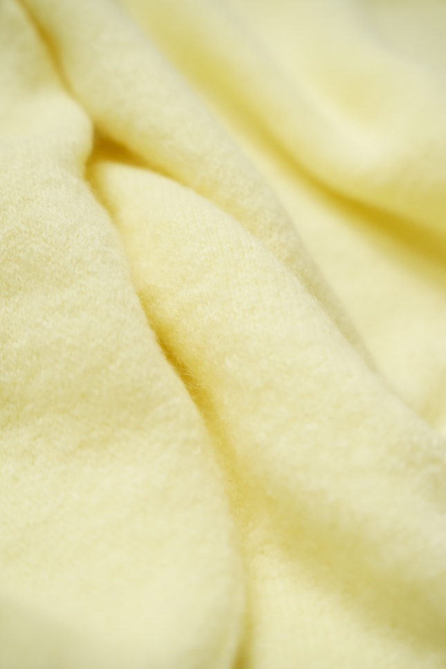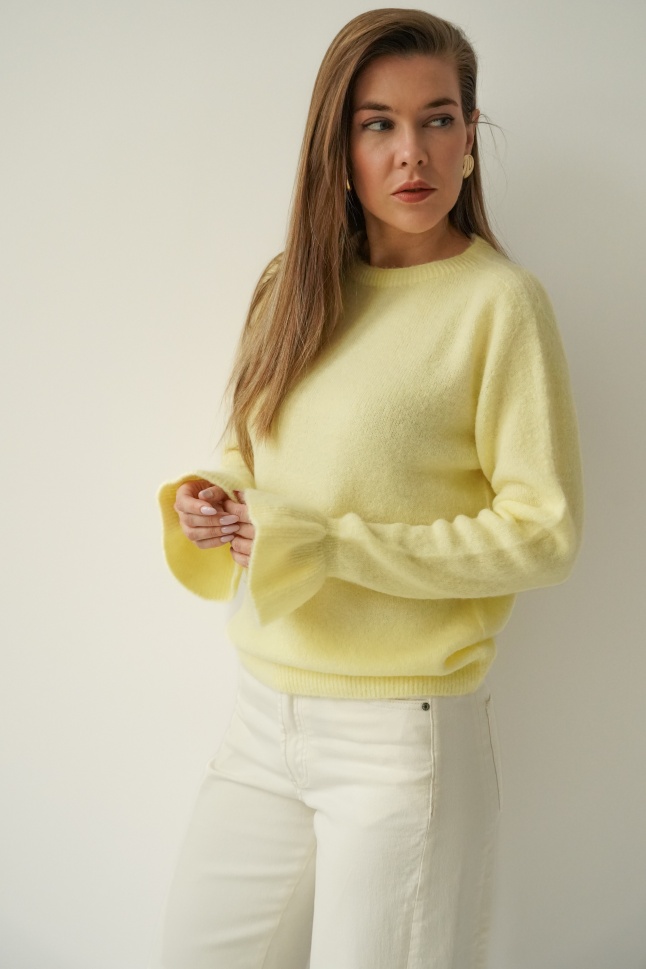 Sweter z falbankami baby alpaka i wełna dziewicza Elia pastelowy żółty