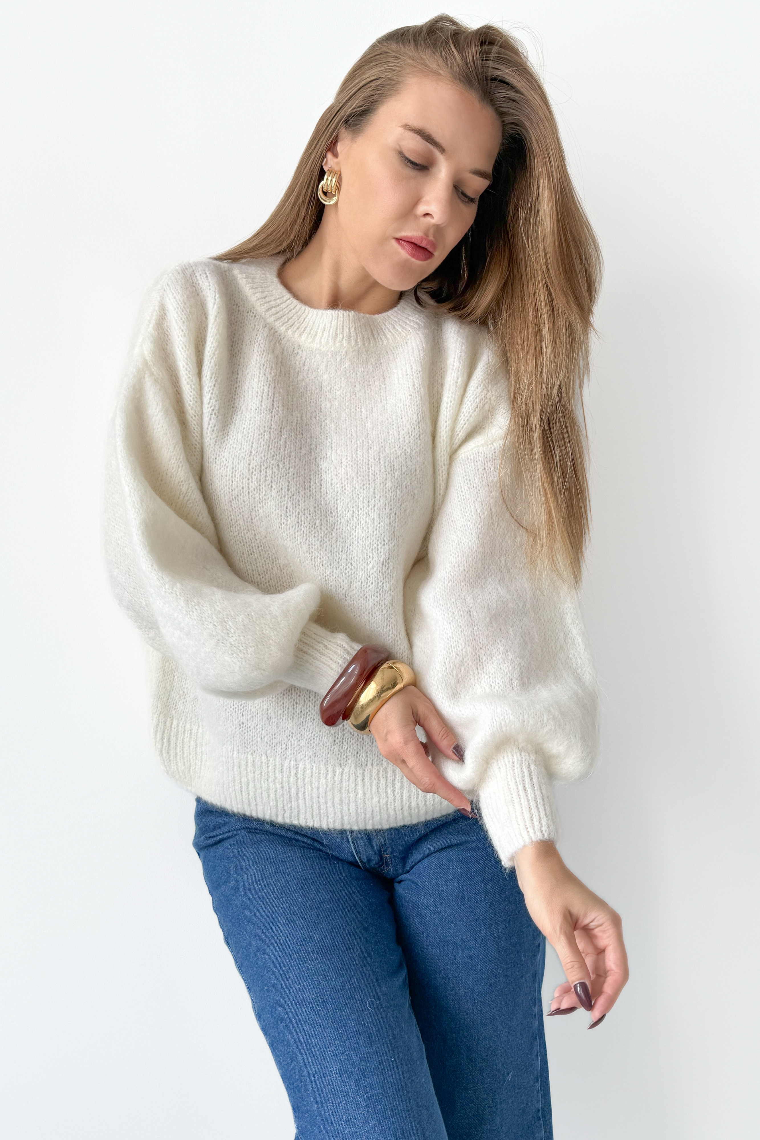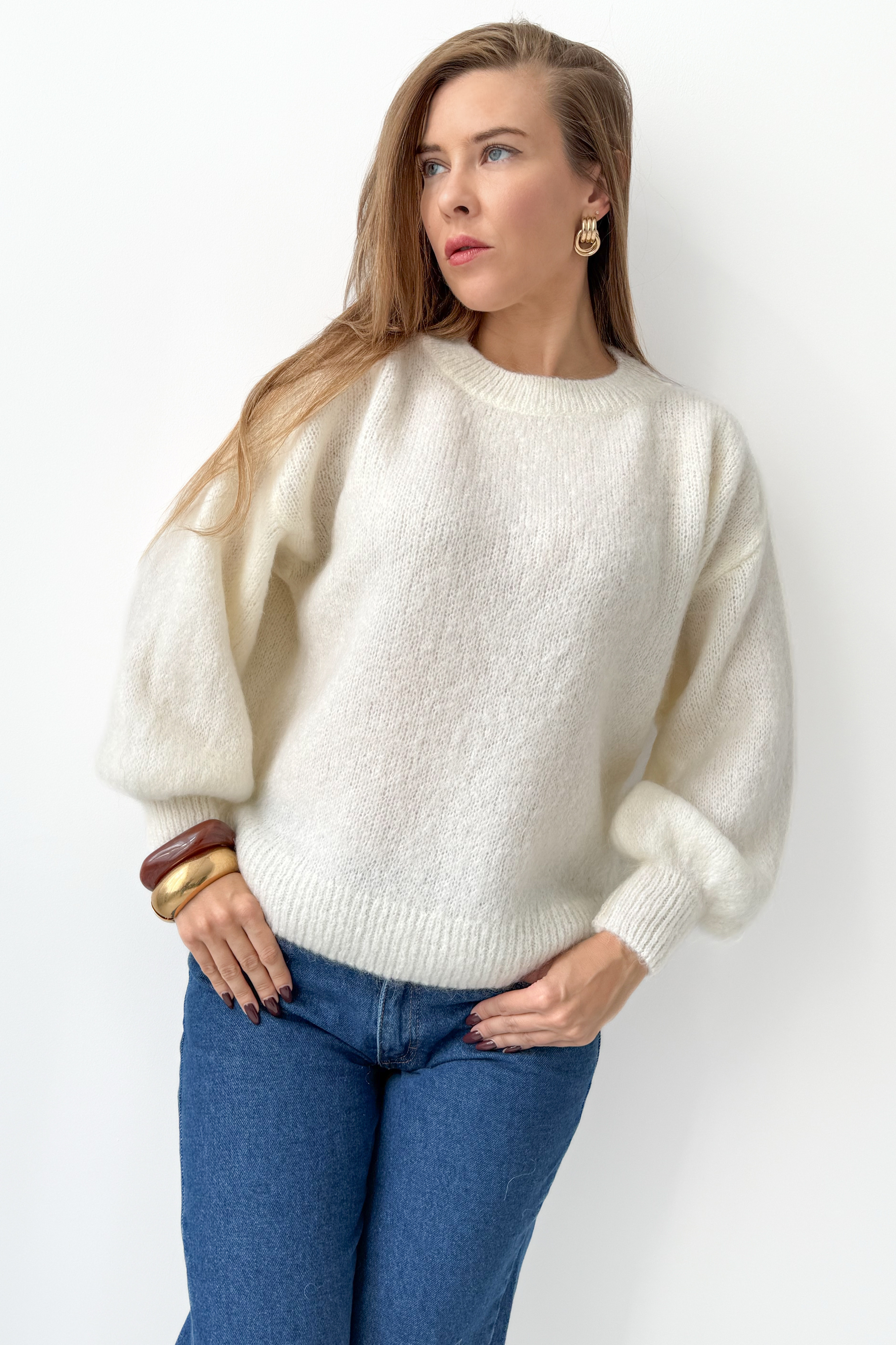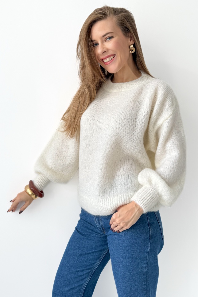 Sweterek kid moher z bufiastymi rękawami Eva cream