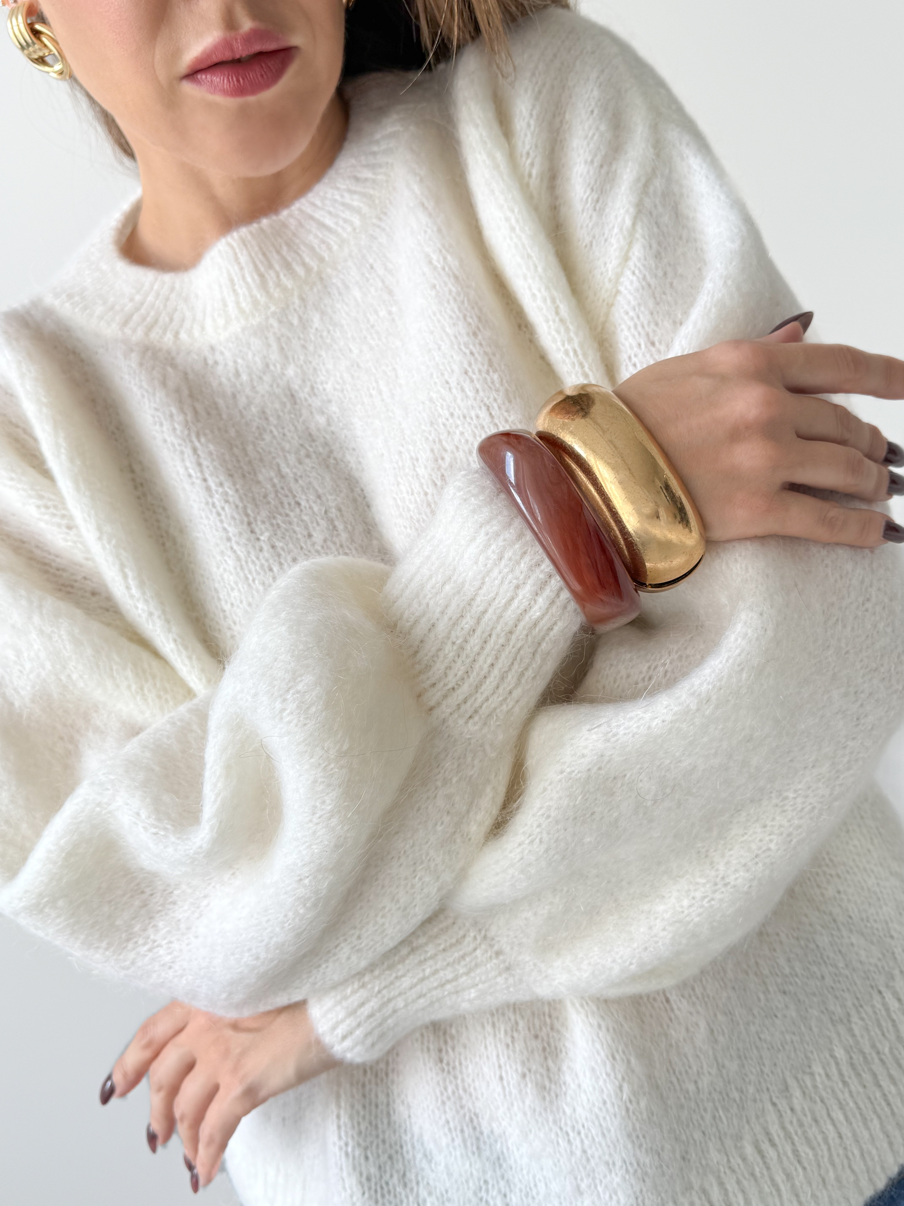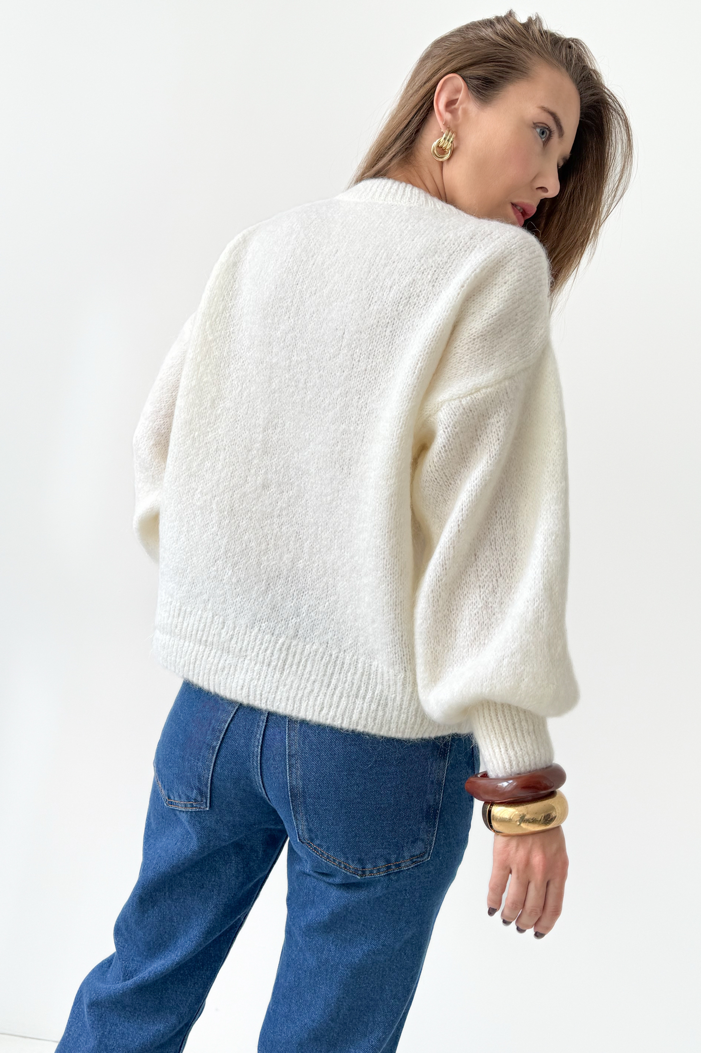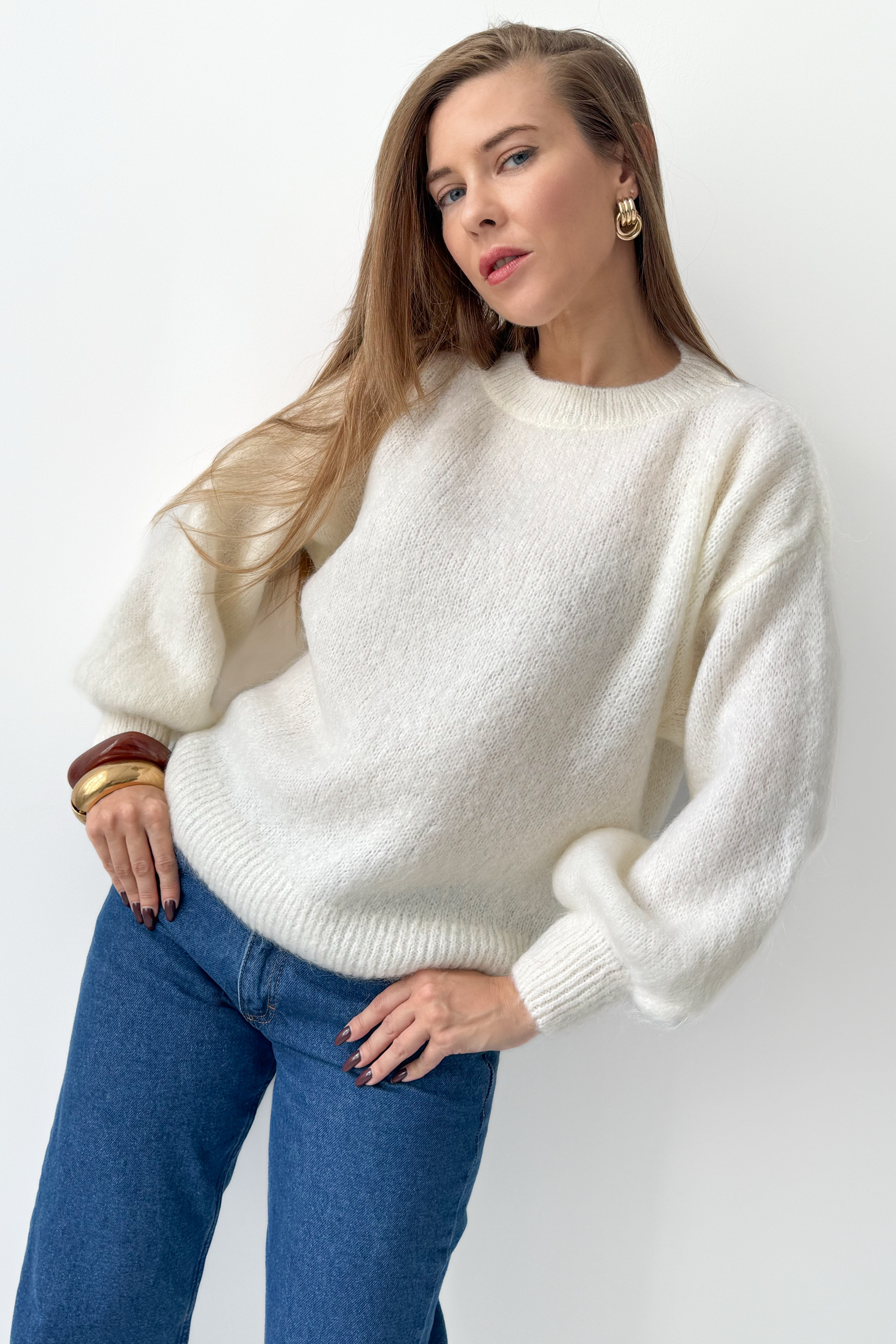 Sweterek kid moher z bufiastymi rękawami Eva cream