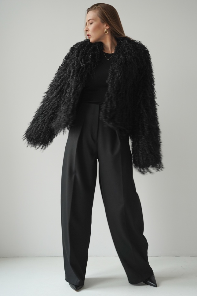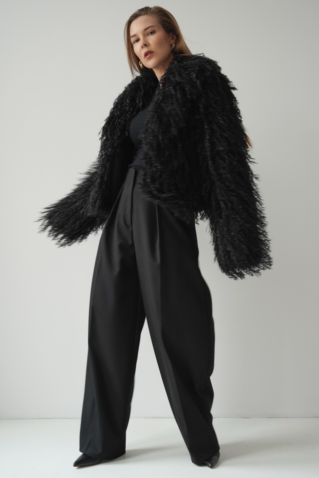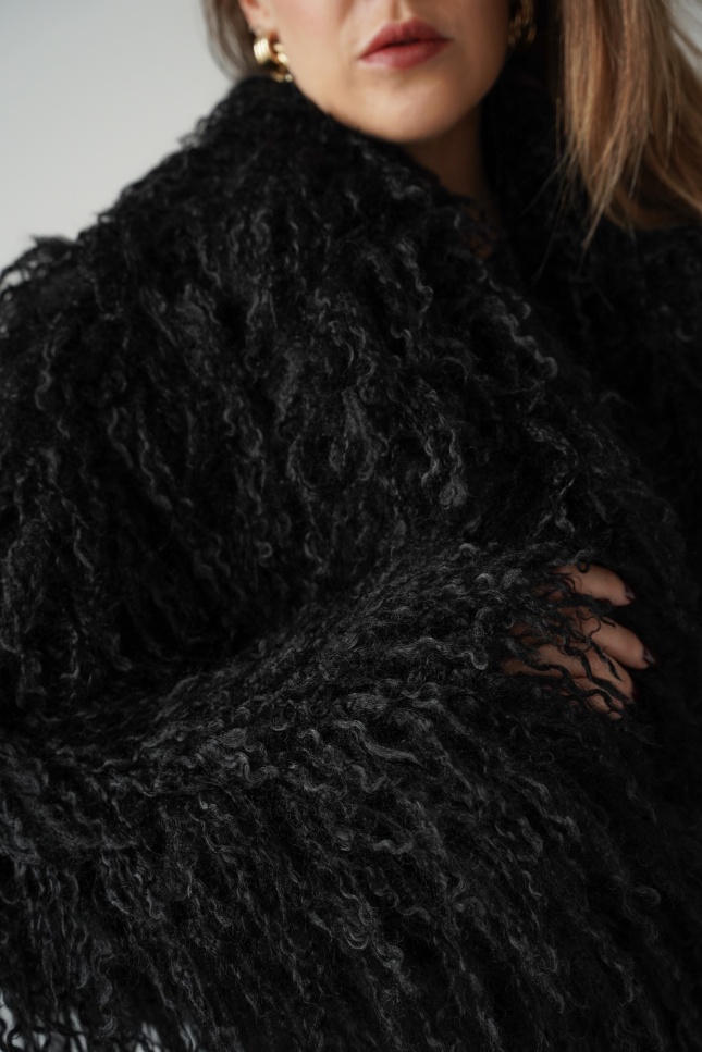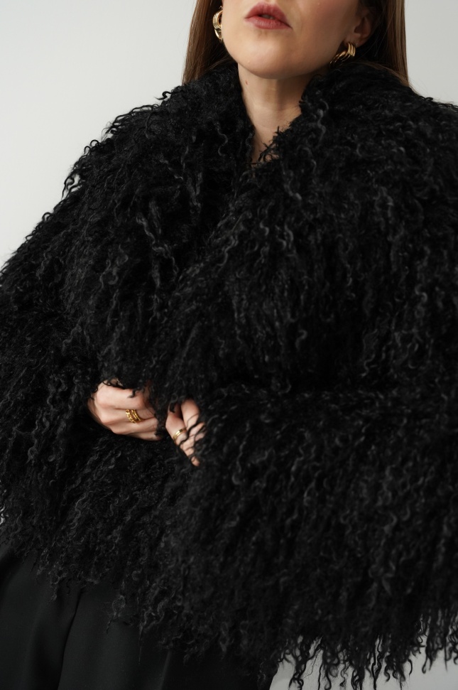Krótsze futerko ze sztucznego włosia lamy, które zachwyca fakturą i nietuzinkowym charakterem. Lekko oversizowy krój nadaje mu nowoczesnego luzu, a podszewka z 100% wiskozy zapewnia komfort noszenia. „Luna” to propozycja dla kobiet, które lubią wyróżniać się stylem – oryginalna, efektowna i niezwykle kobieca. Idealna zarówno do miejskich, jak i wieczornych stylizacji.