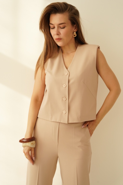Elegancki komplet z pudełkową kamizelką Issa cream