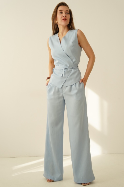 Elegancki komplet z wiązaną kamizelką i spodniami palazzo Coco icy blue